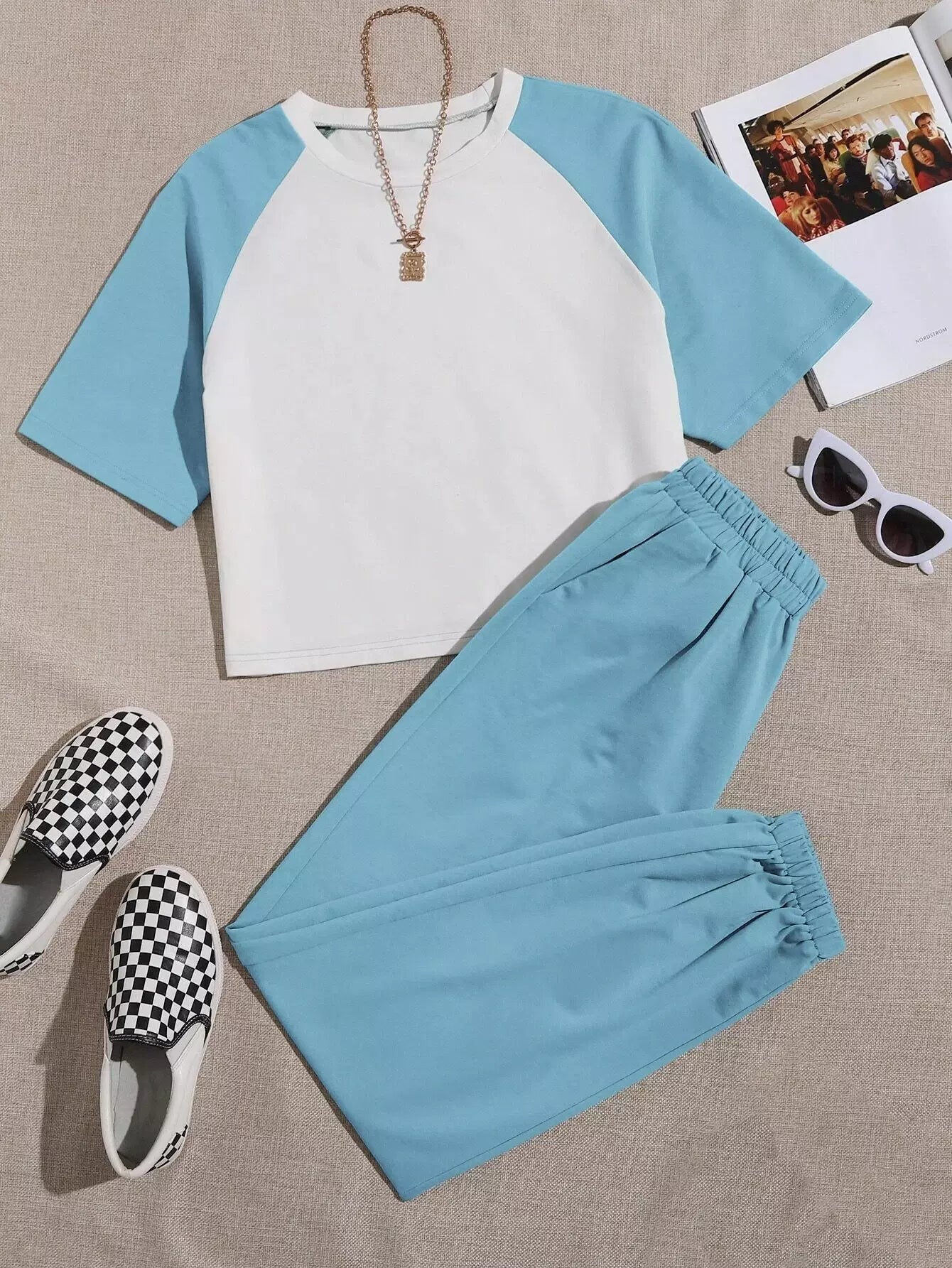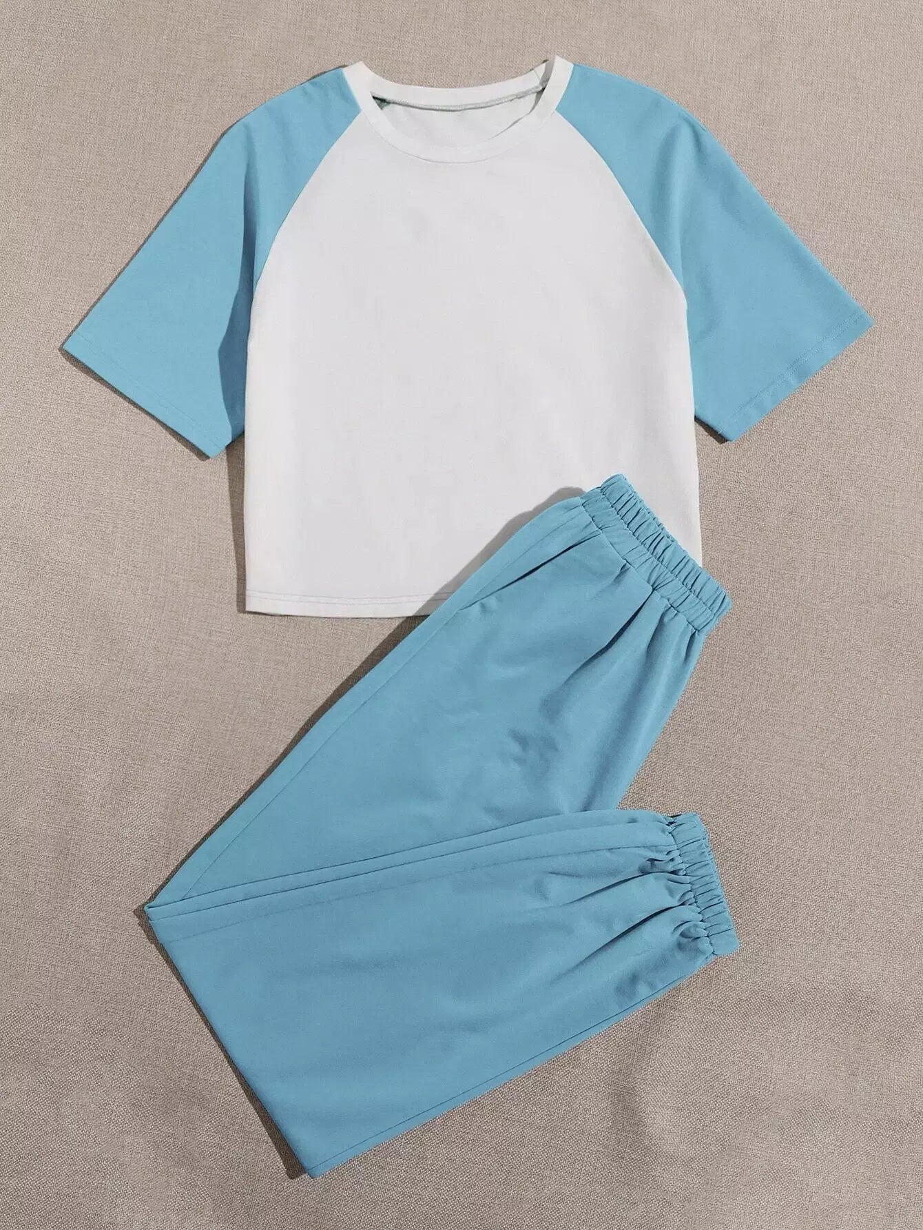 تي شيرت بيسبول بلون مغاير وبنطال رياضي