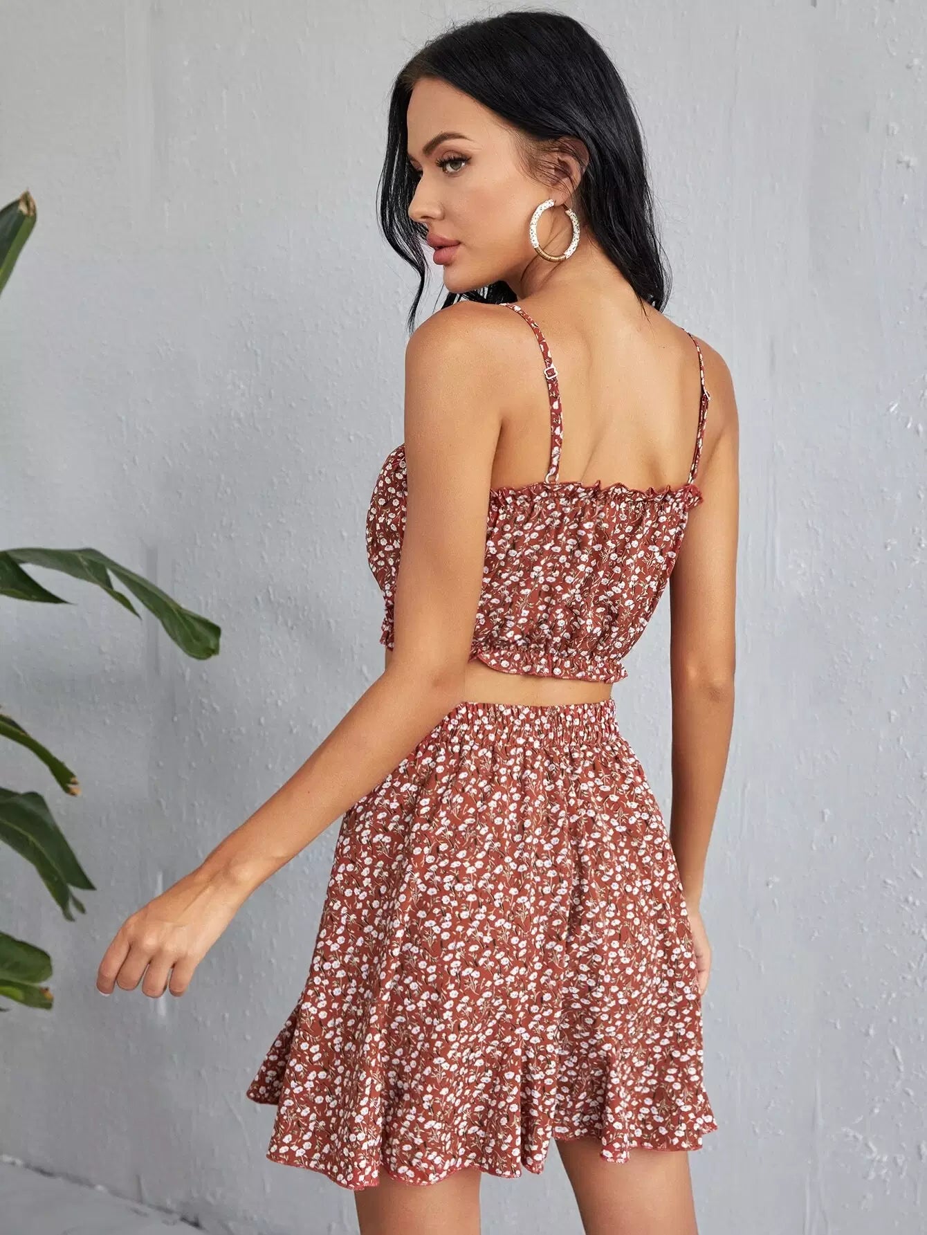 النساء - بلوزة كامي قصيرة مزهّرة مع تنورة من Ditsy