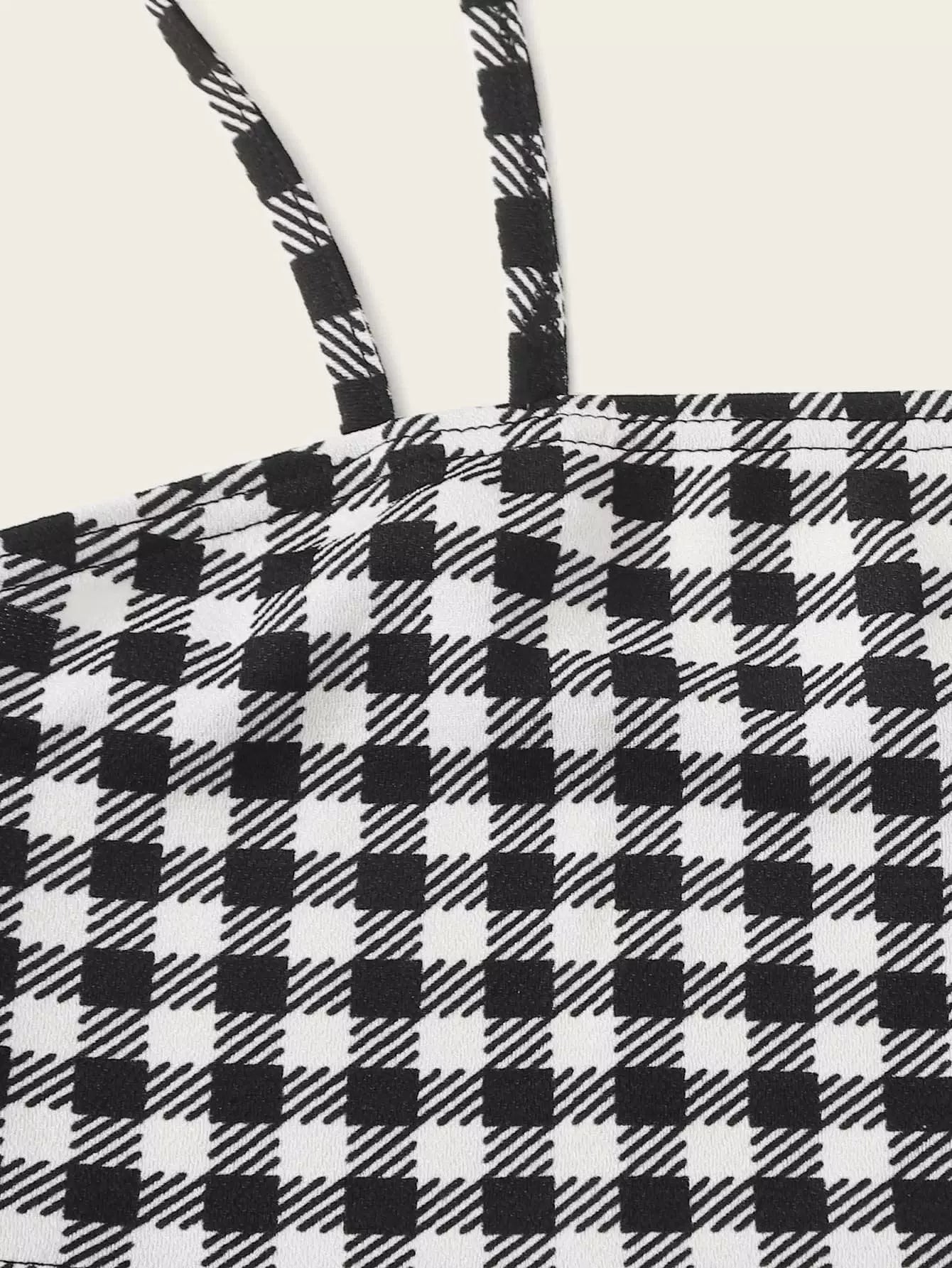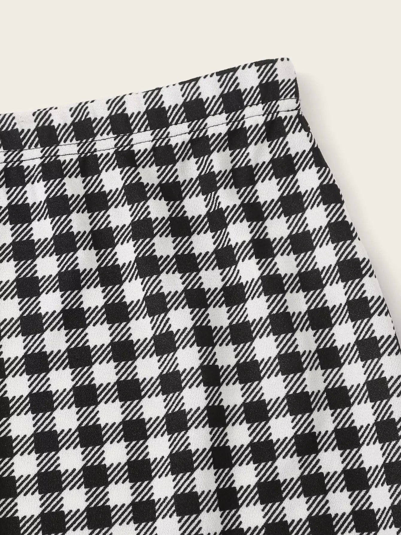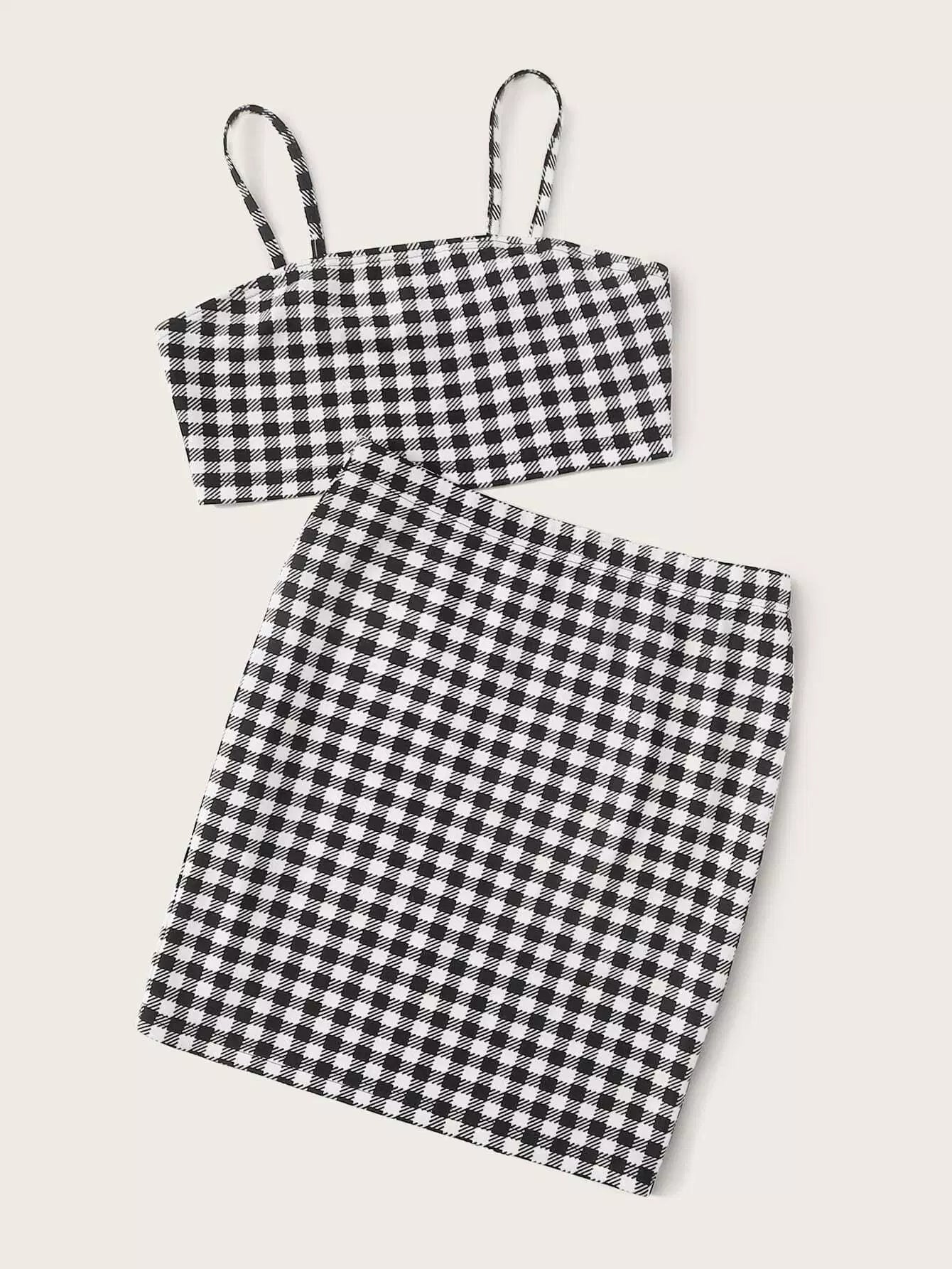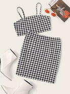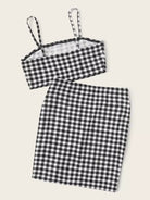 طقم تنورة وقميص كامي بنقشة مربعات
