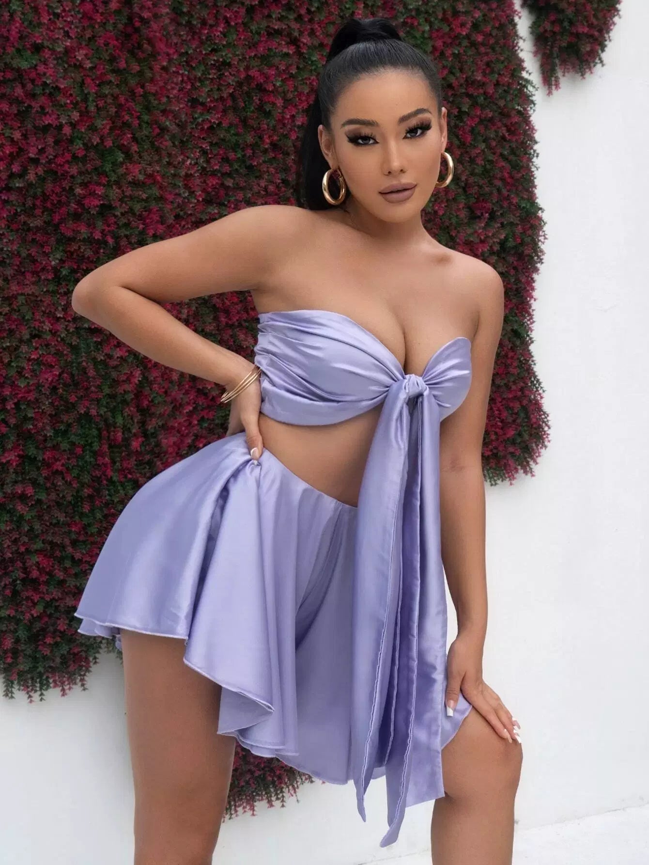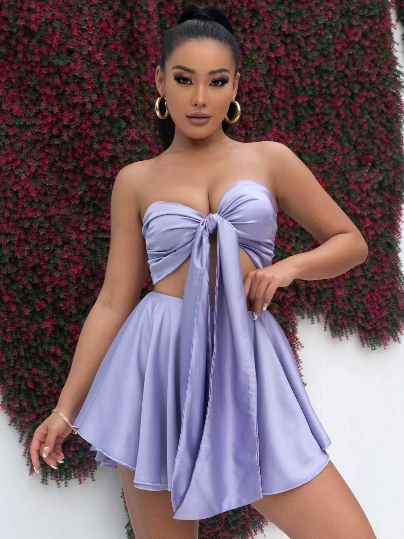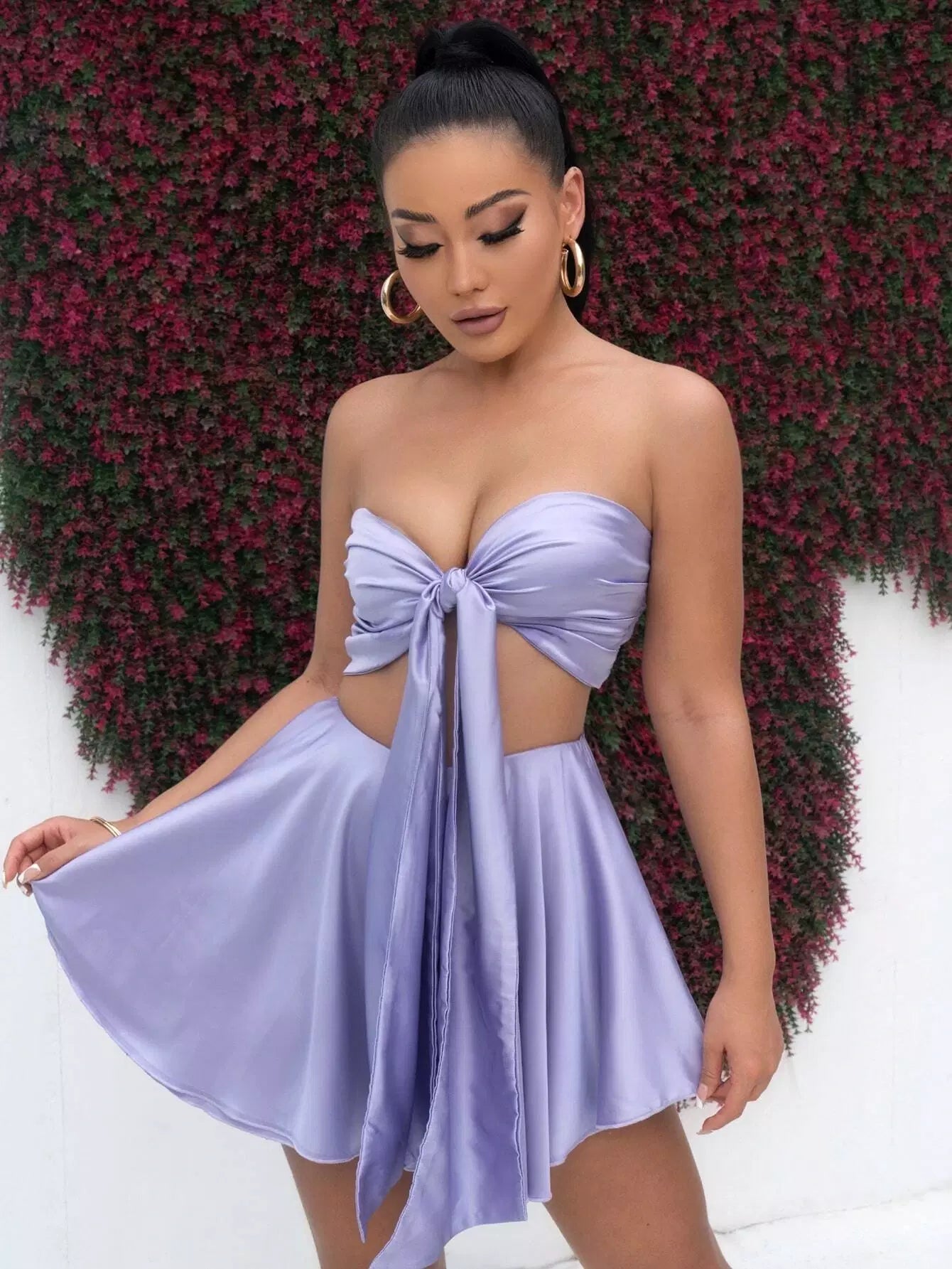 بلوزة وتنورة أنبوبي بعقدة أمامية أمامية