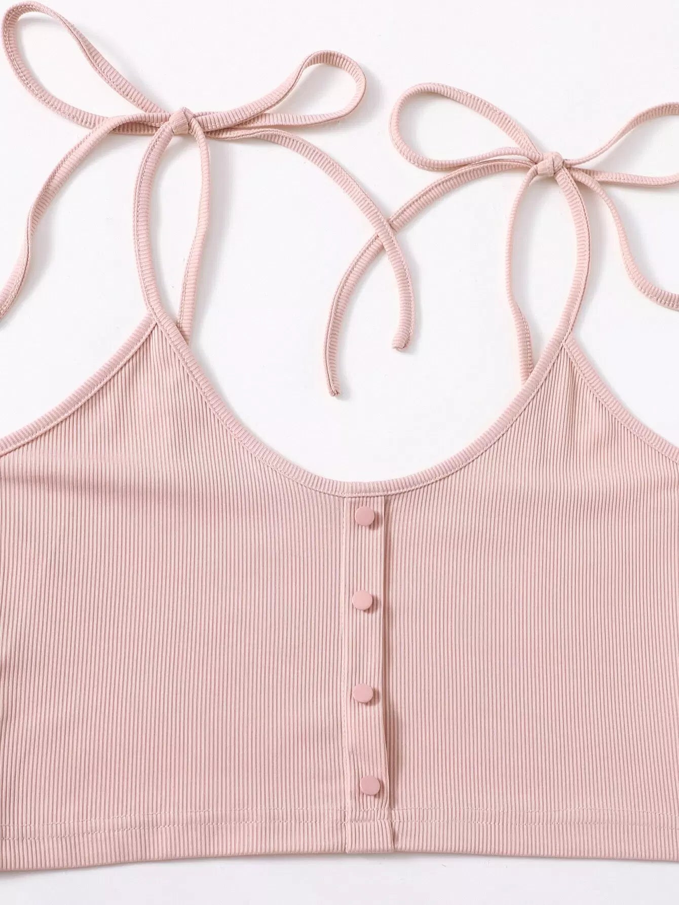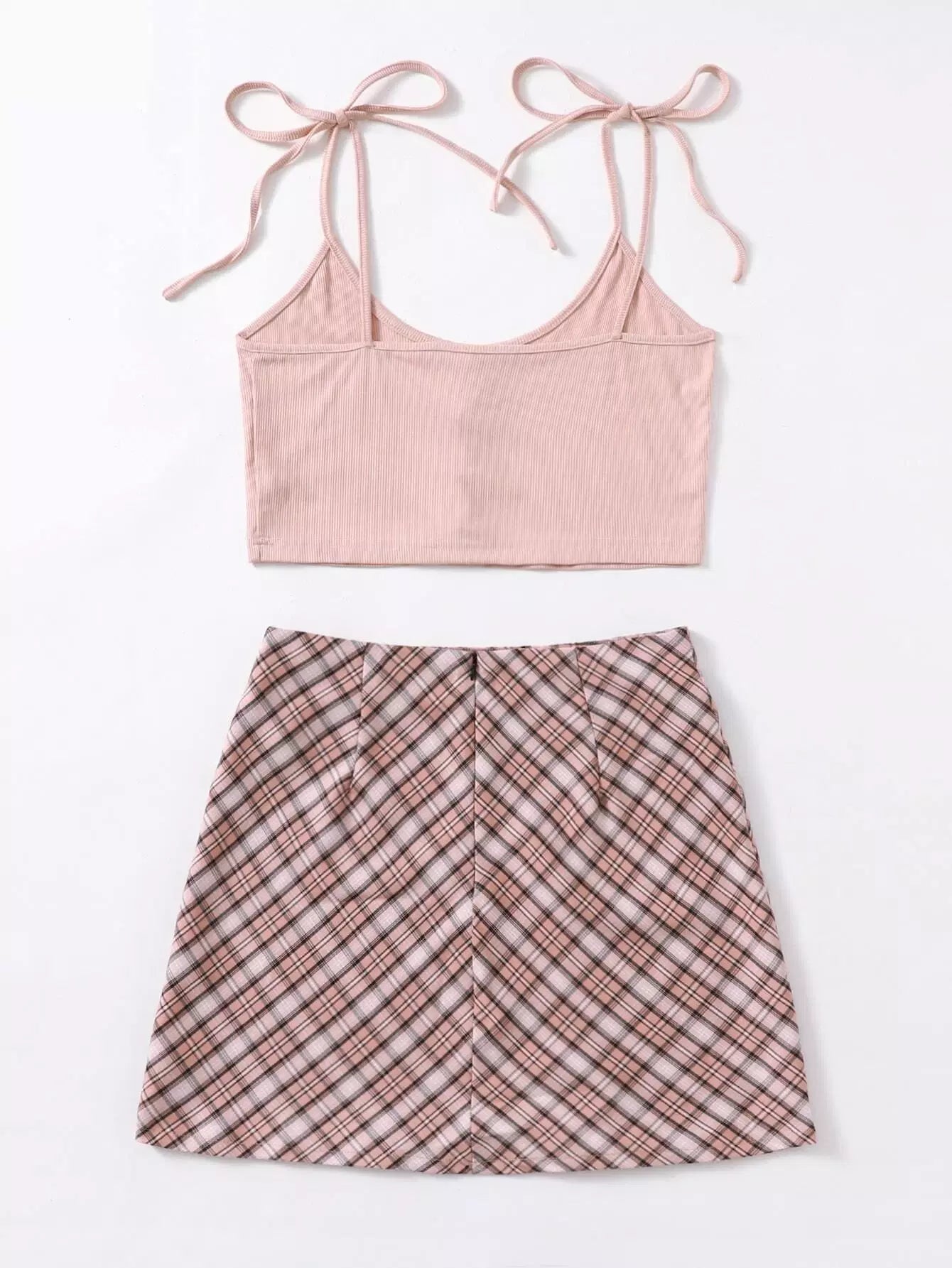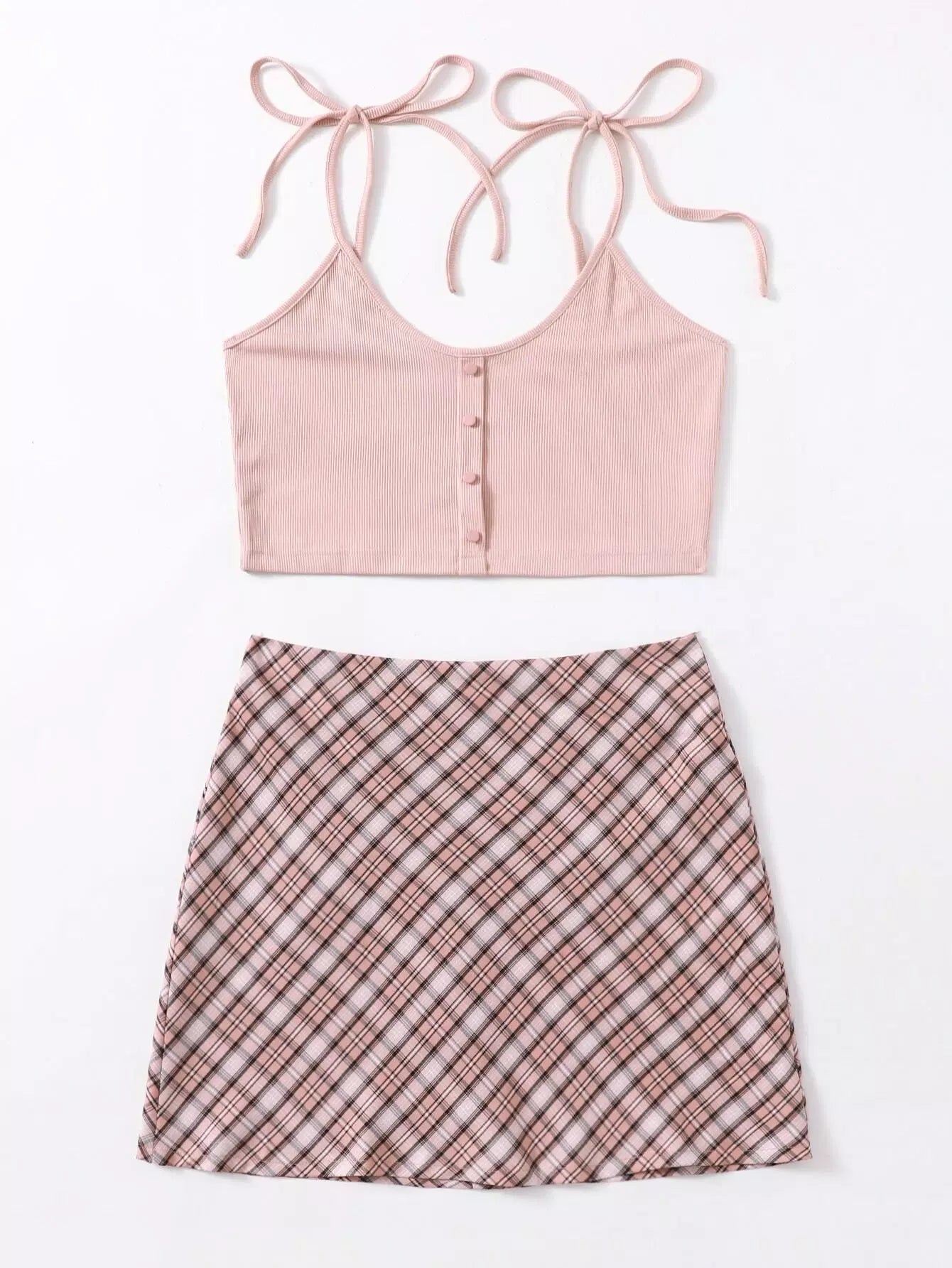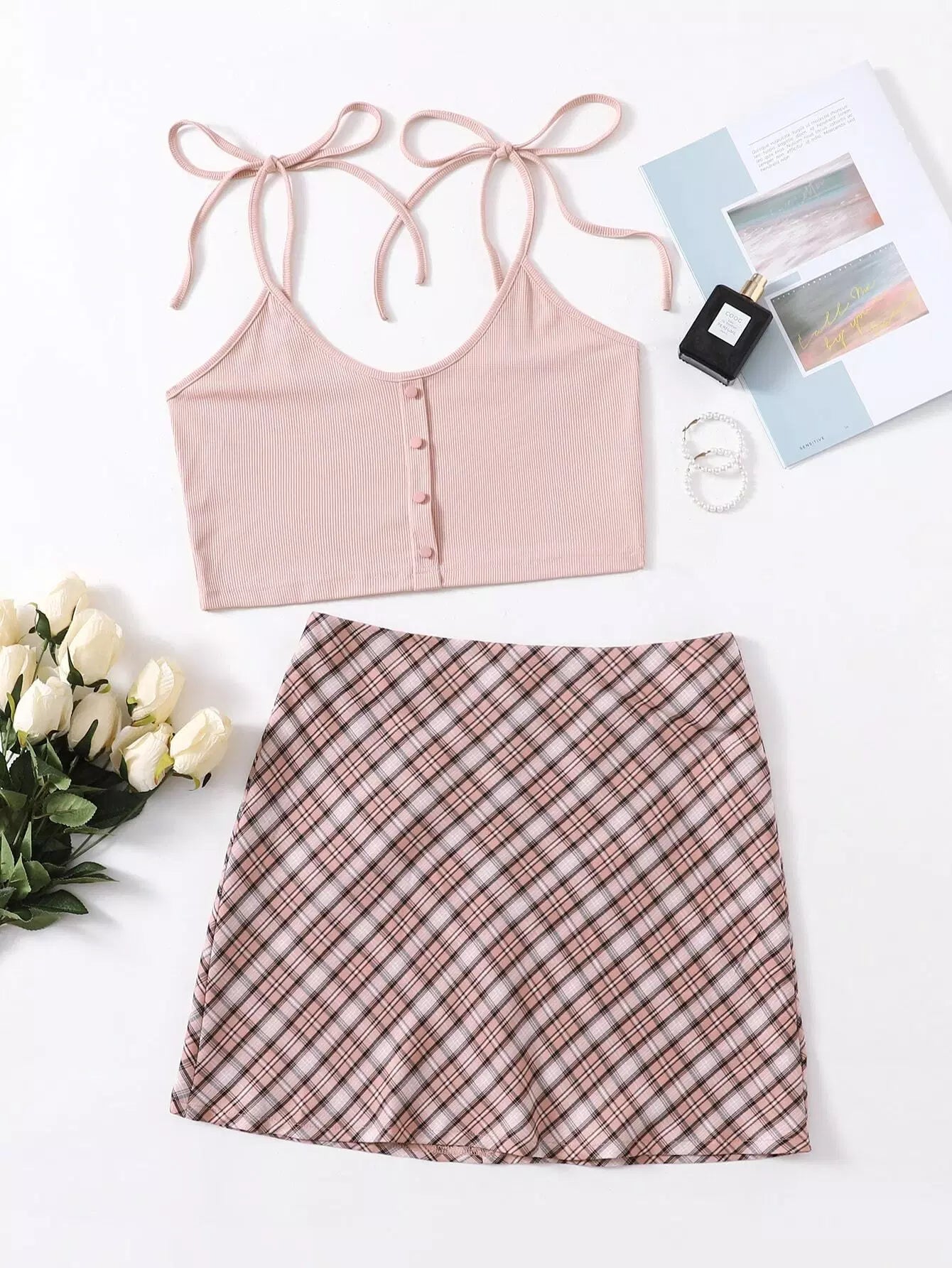 طقم بلوزة كامي بحمالات عقدة وتنورة منقوشة