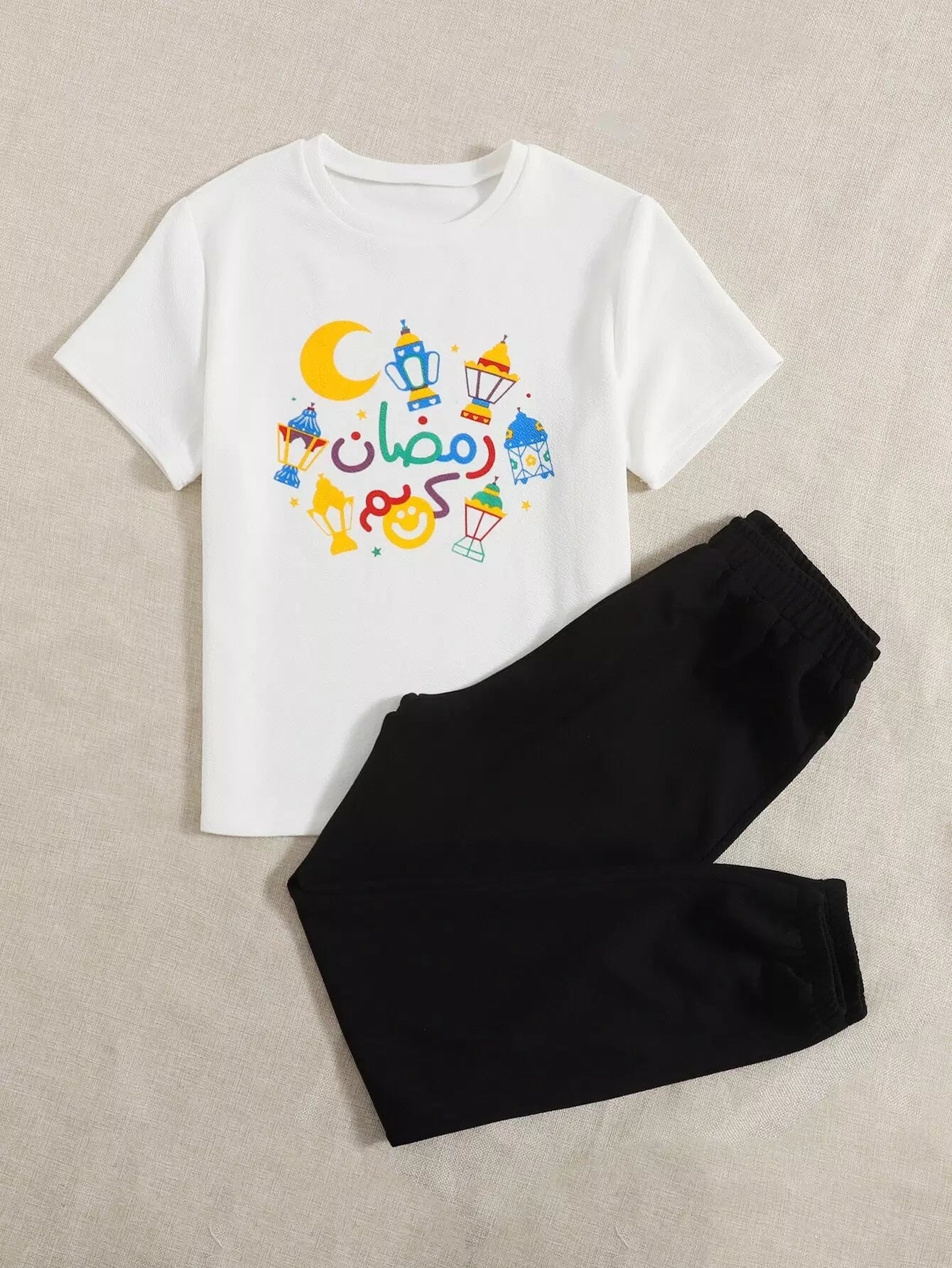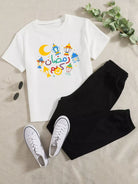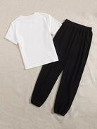 تي شيرت وبنطال رياضي مطبوع عليه حروف ورسومات