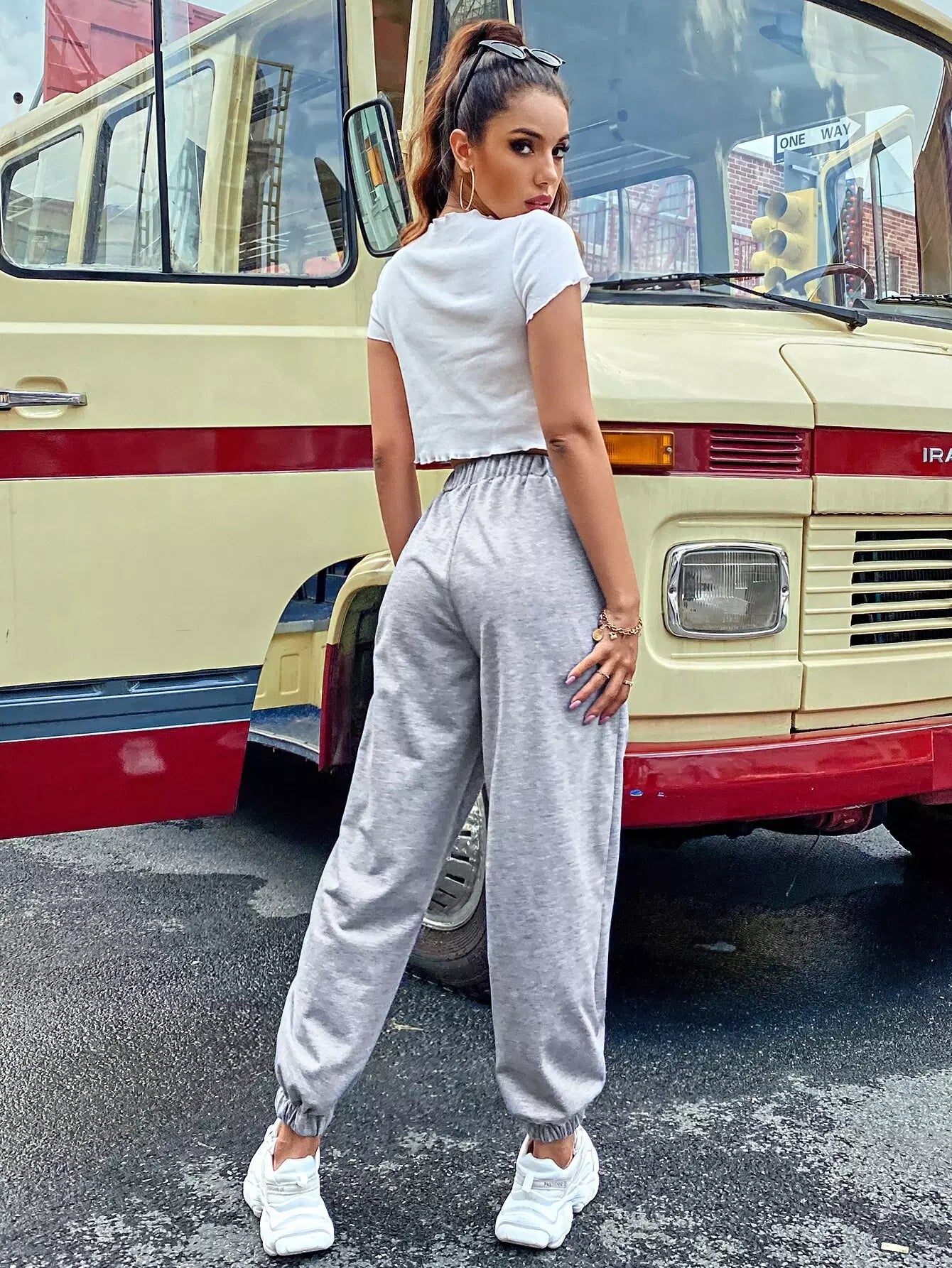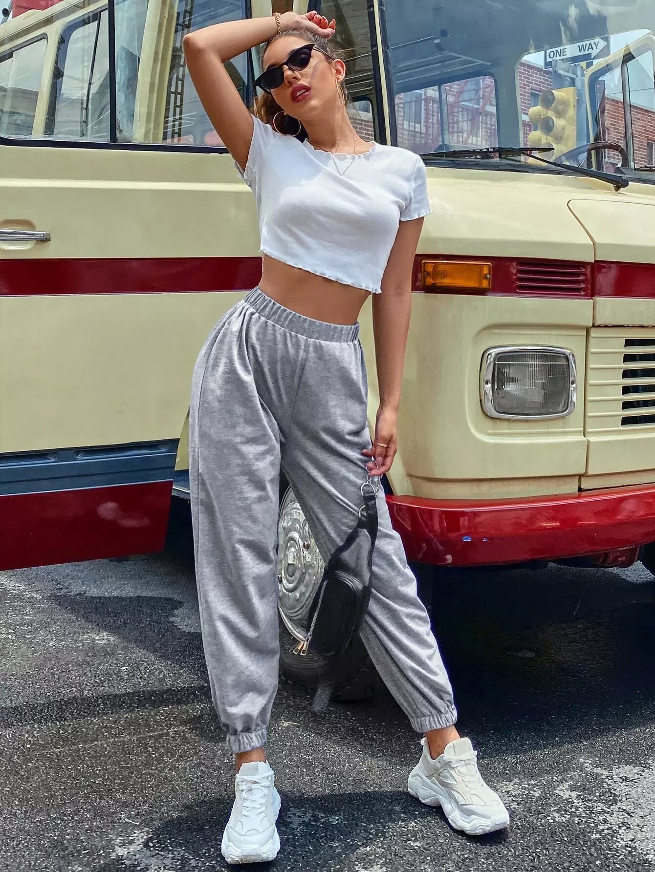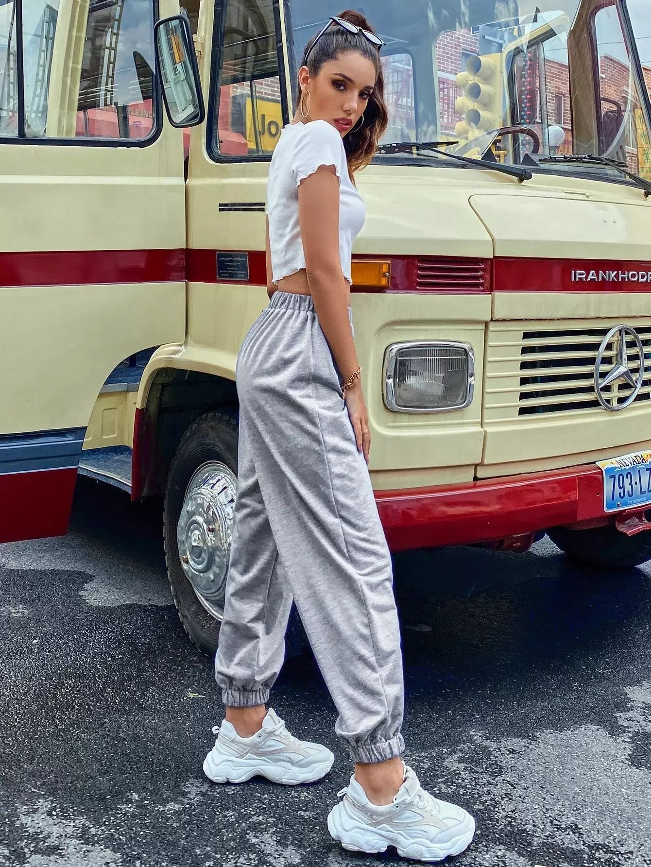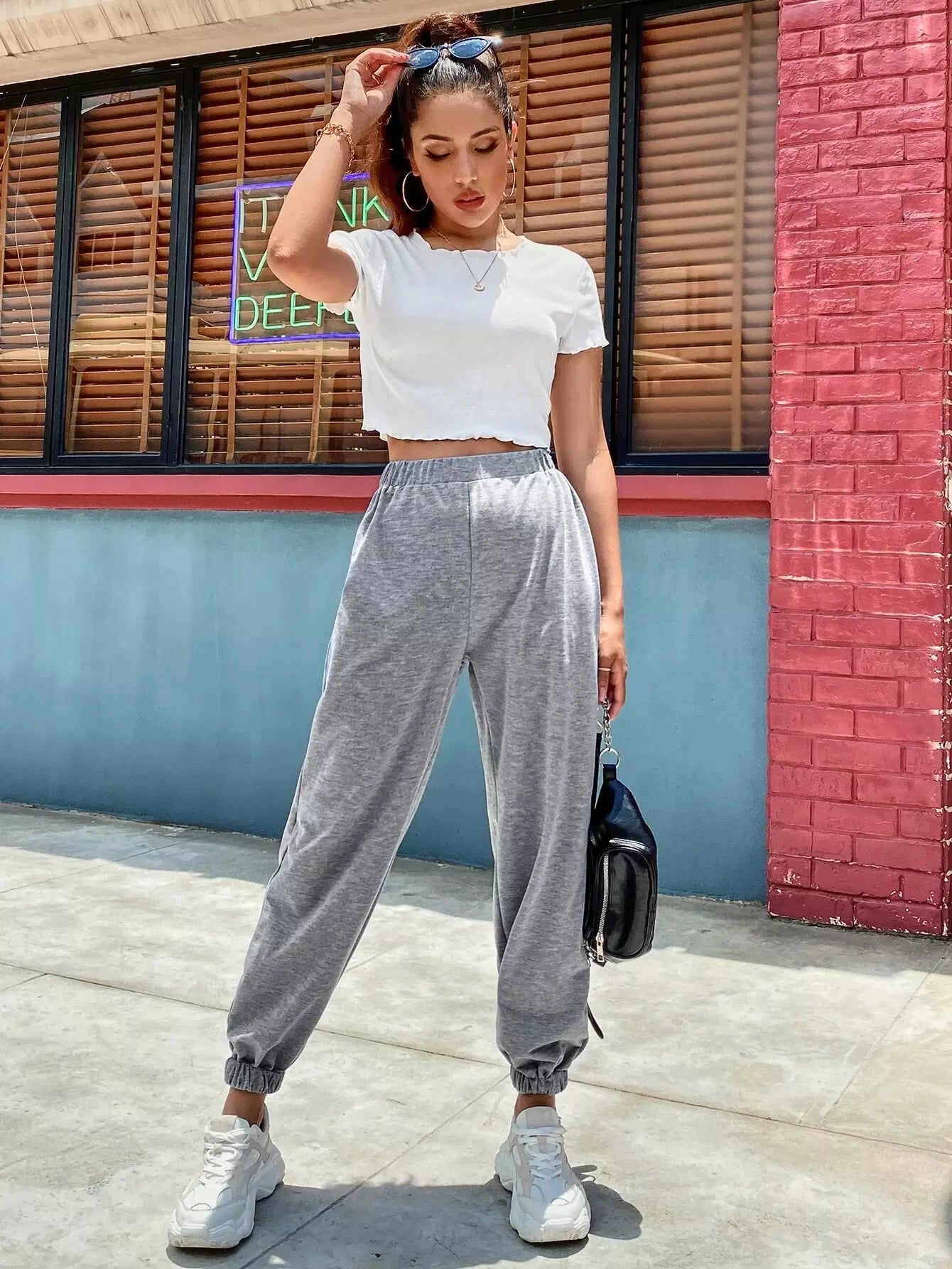 تي شيرت بحافة الخس وبنطال رياضي قصير وبنطال رياضي