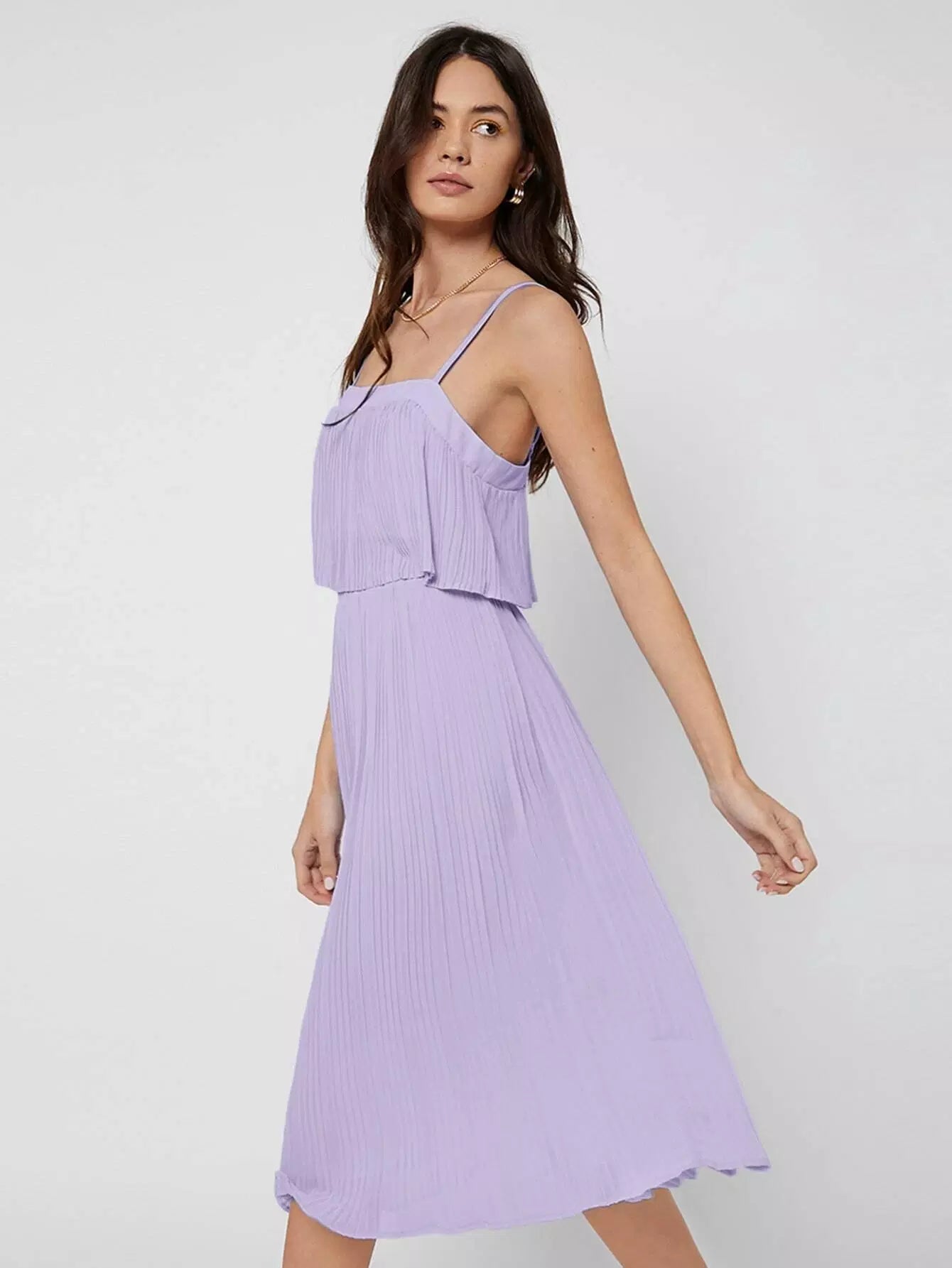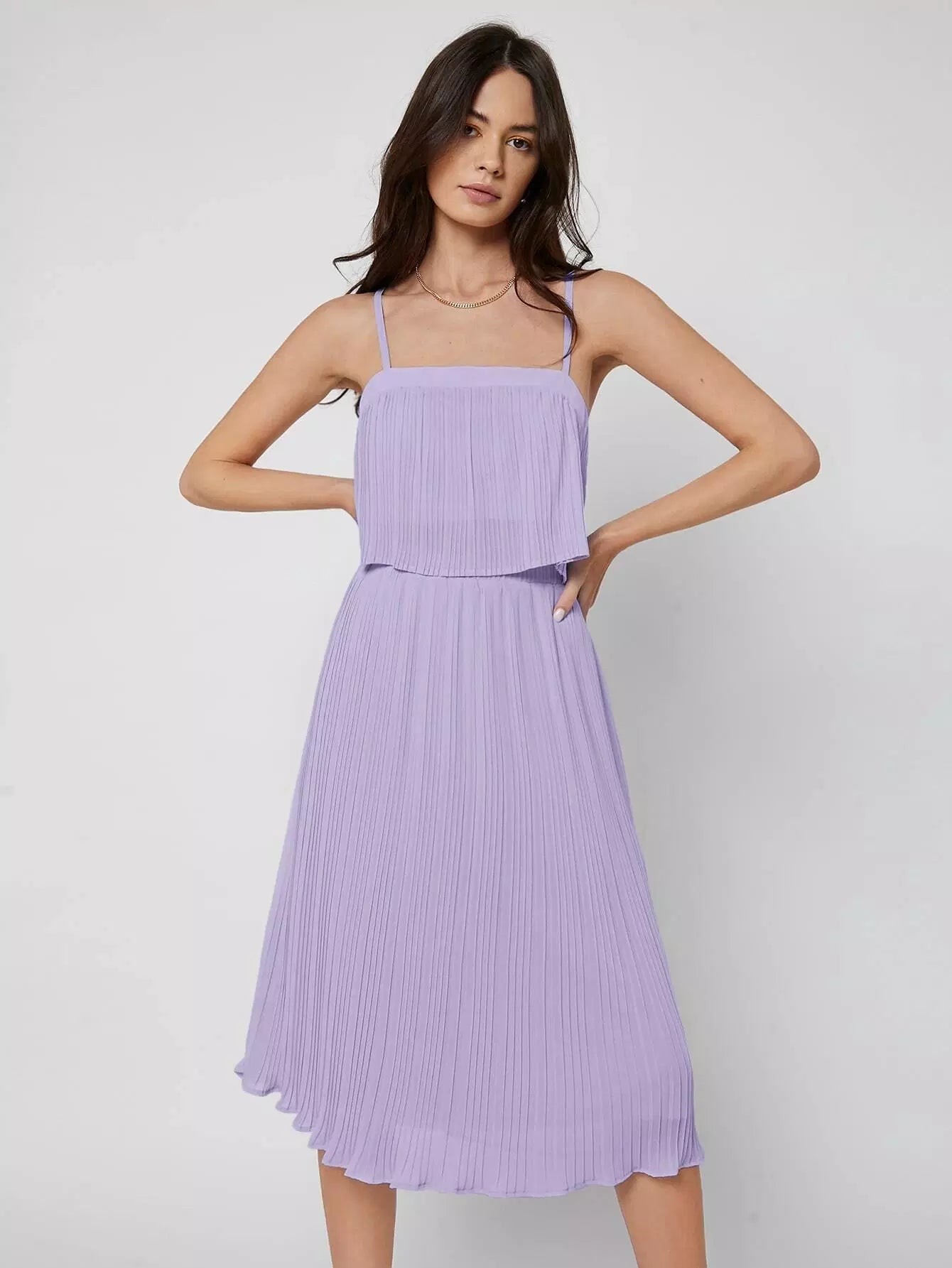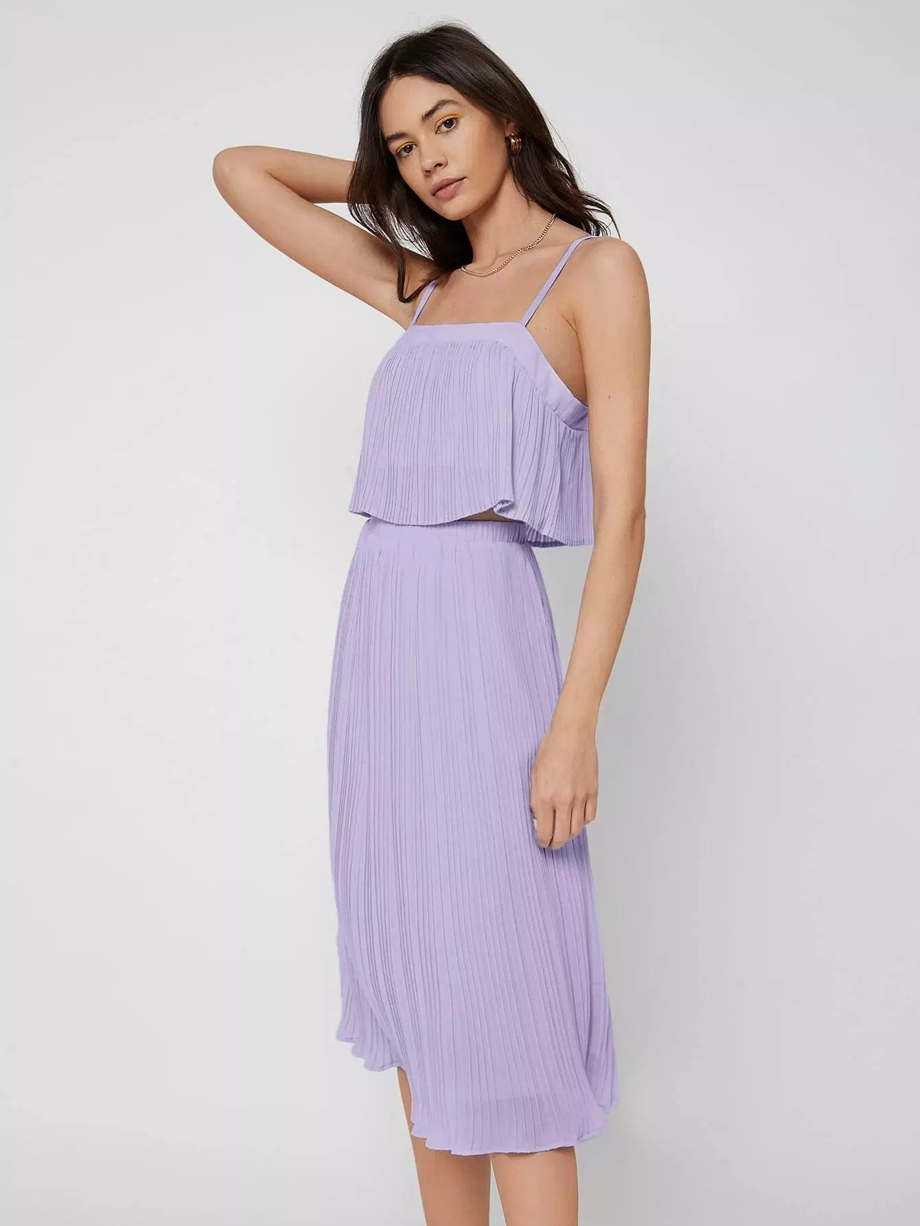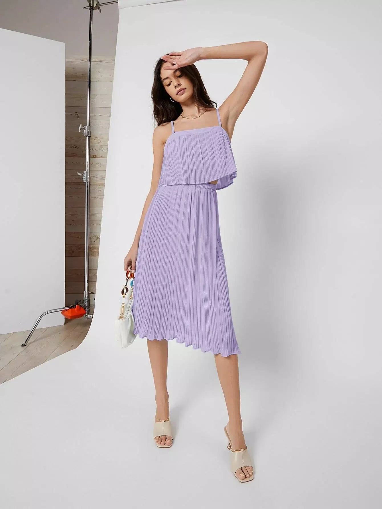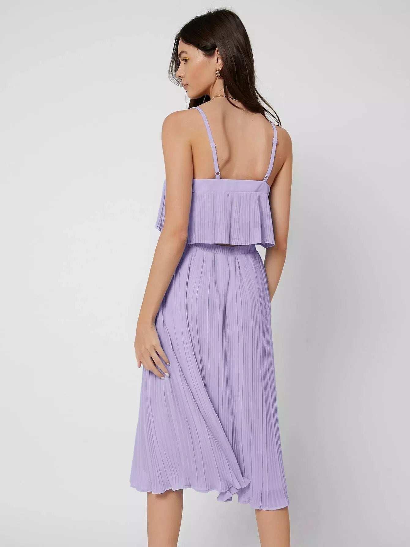 طقم بلوزة كامى بطيات وتنورة بطبقات متراكبة
