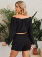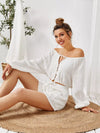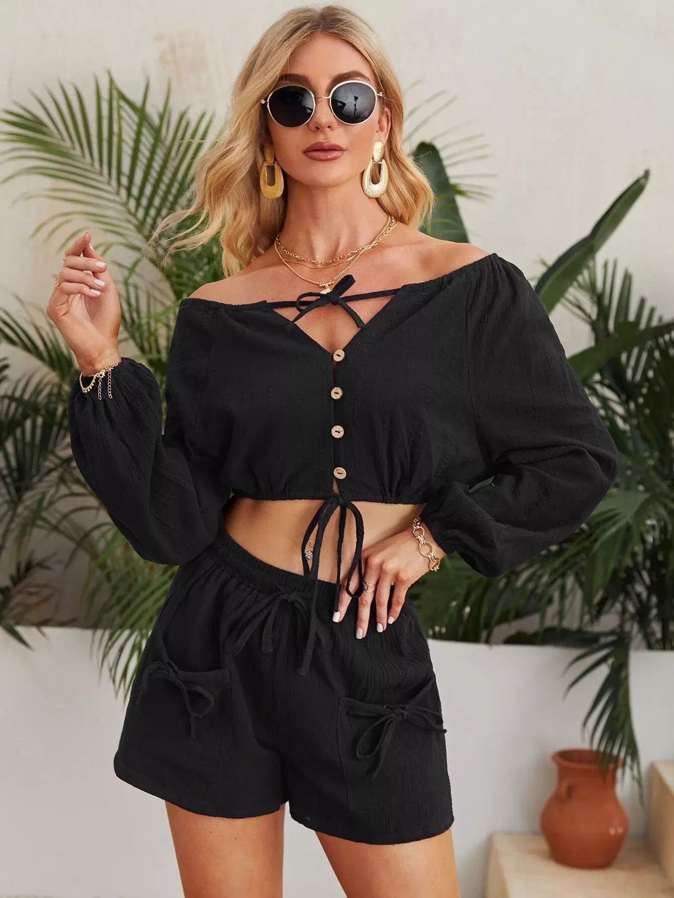 طقم بلوزة برباط مفصل على صدر واحد وجيب برقعة