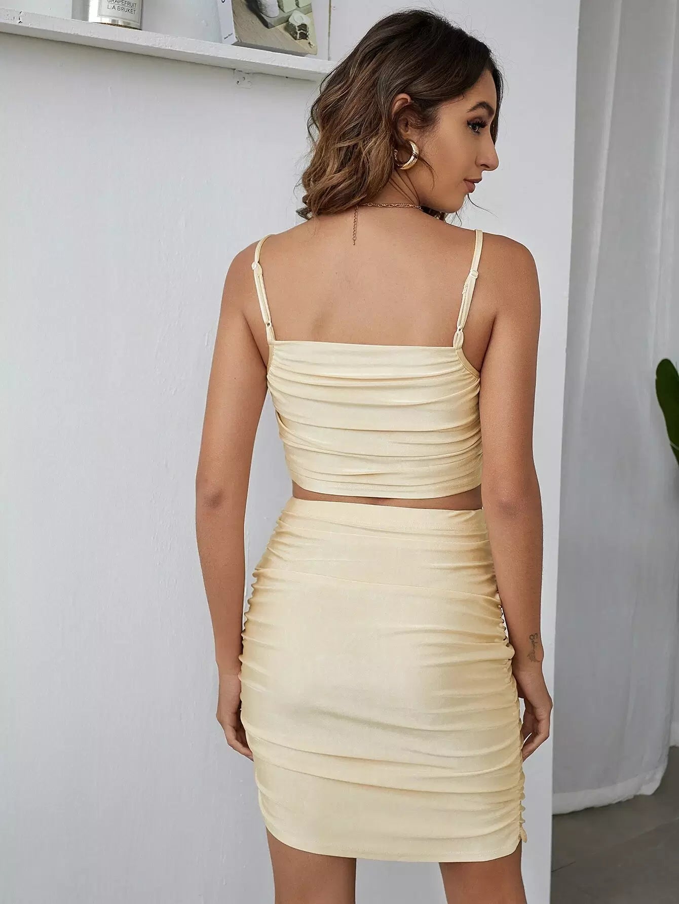 النساء - توب كامي شرطي سادة وتنورة ضيقة
