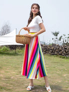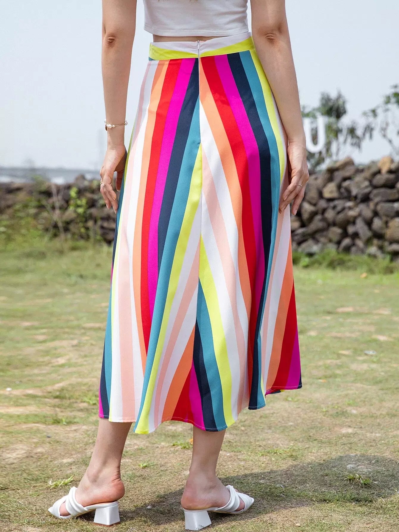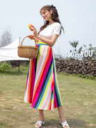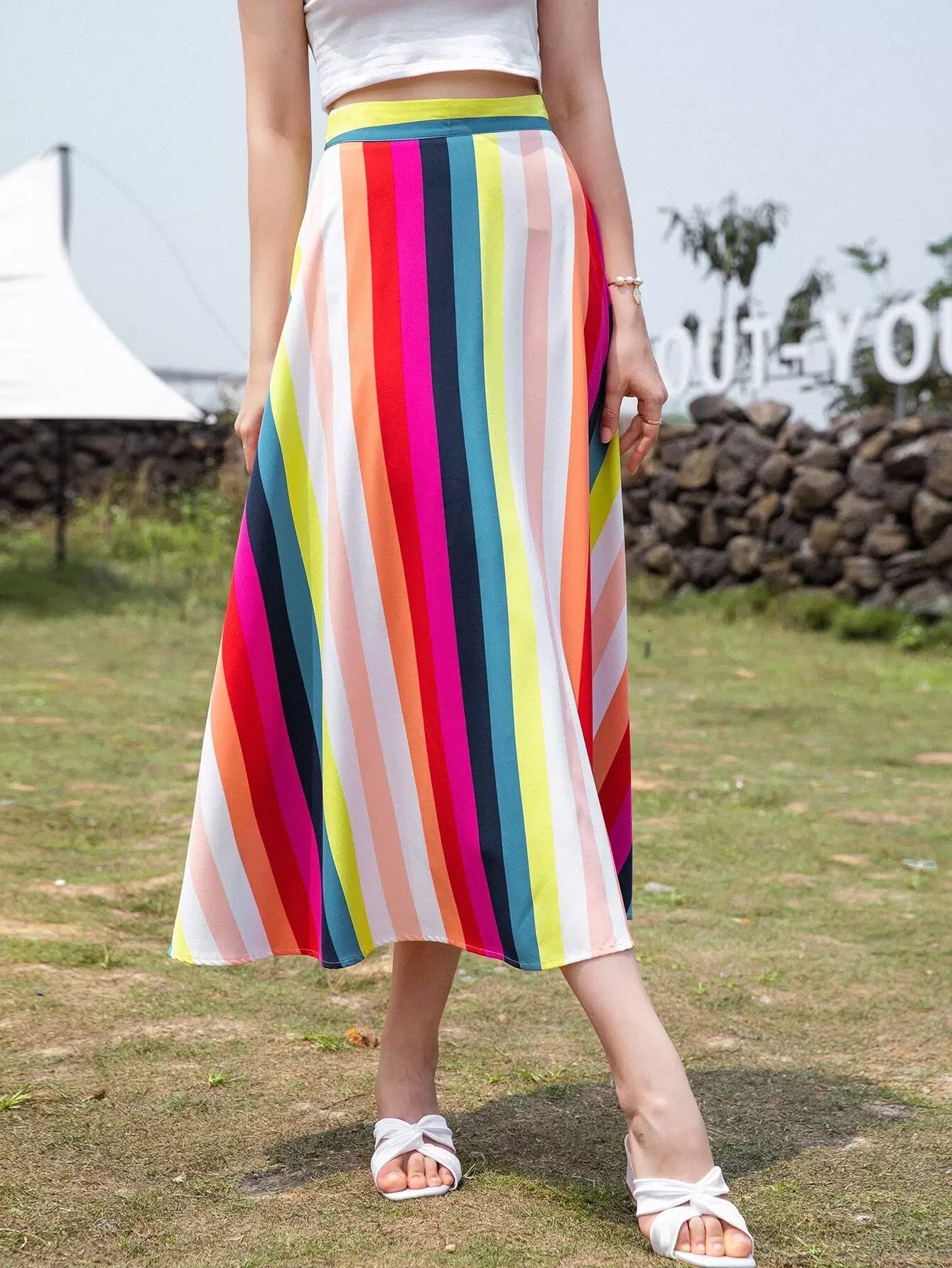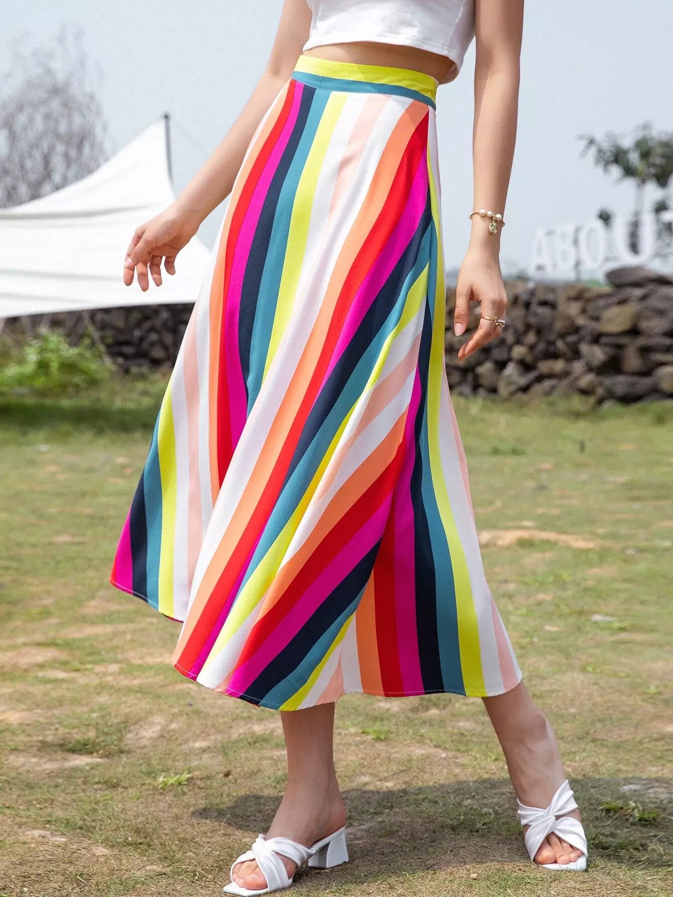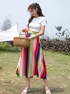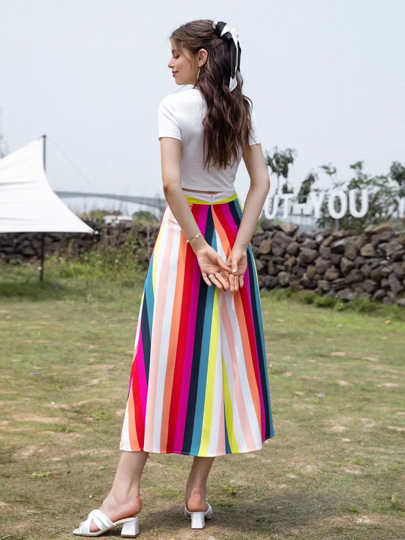 تي شيرت قصير سادة مع تنورة مخططة بسحاب في الخلف