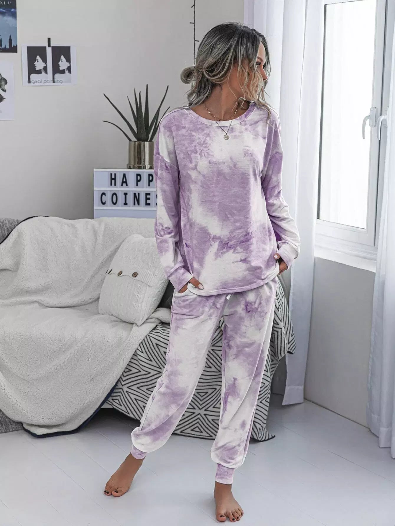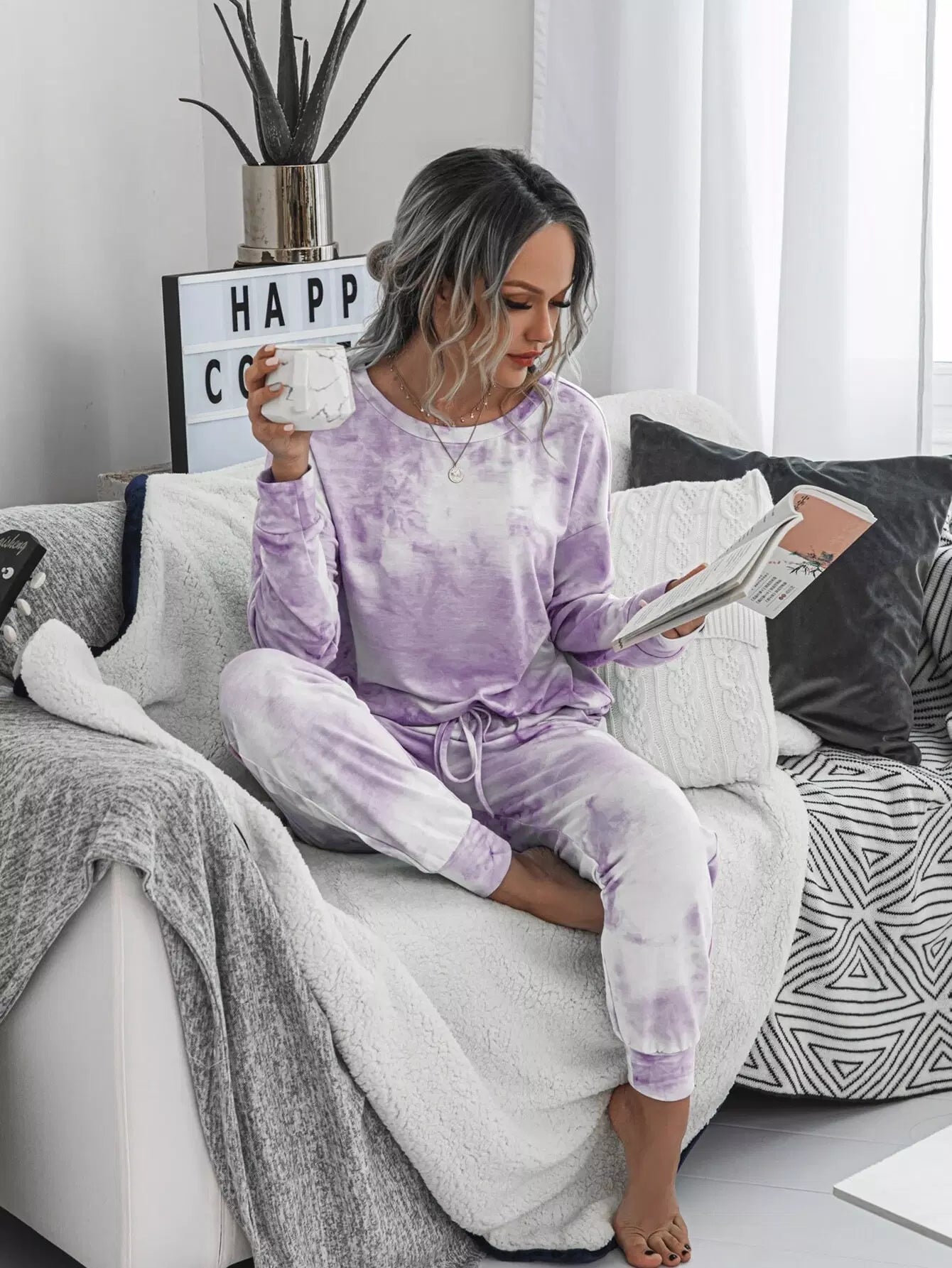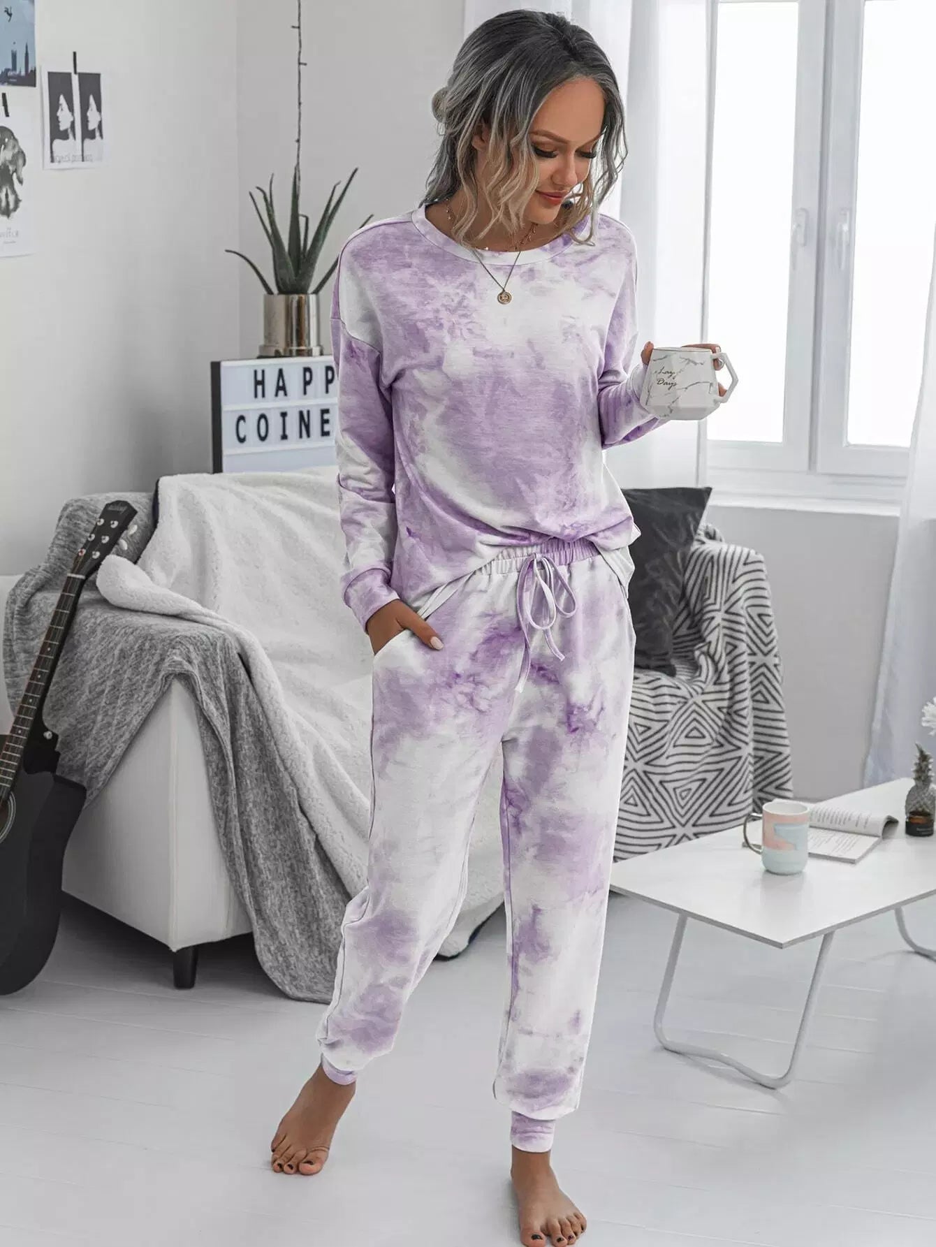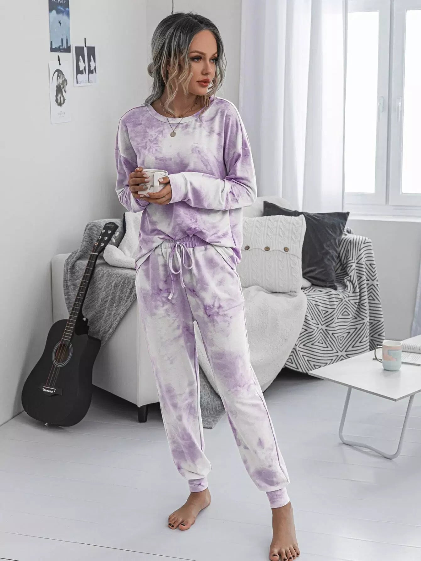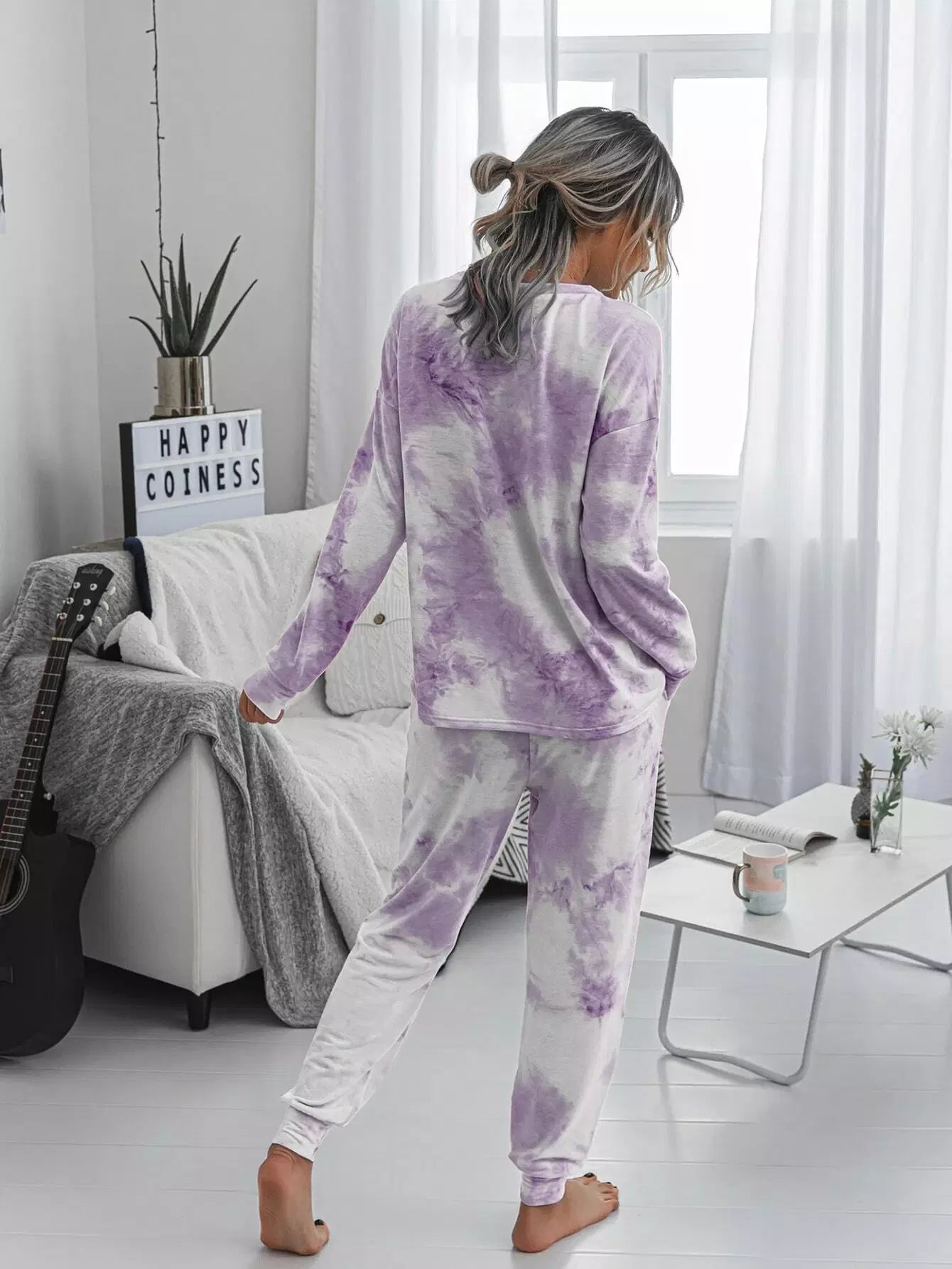تي شيرت منسدل الأكتاف مصبوغ بربطة عنق وبنطال رياضي