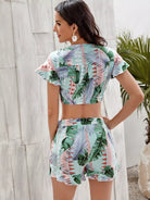 بلوزة قصيرة بطبعة استوائية بطبعة استوائية مع شورت قصير أمامي ملتف