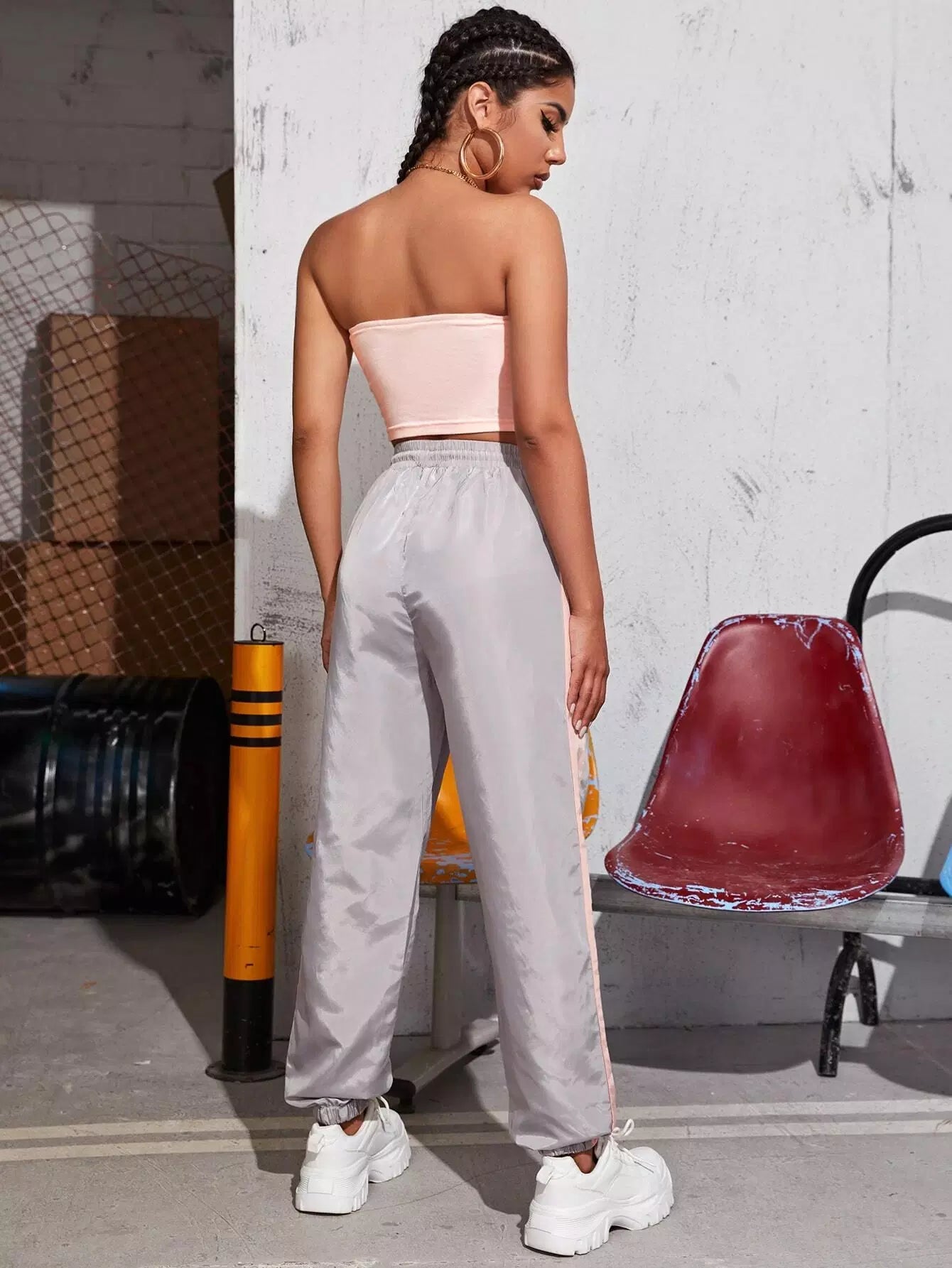 بلوزة أنبوبي وبنطال رياضي بلون مغاير