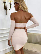 طقم بلوزة وتنورة برقبة رقبة رسن بسحاب