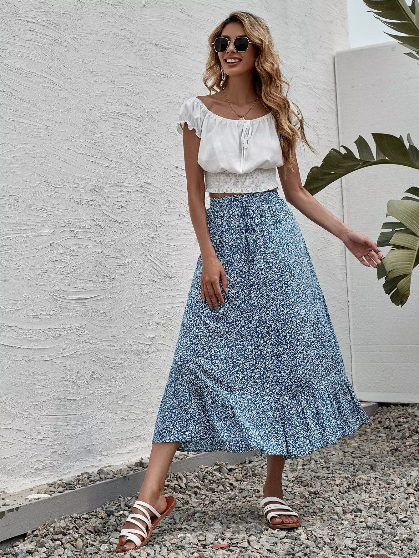 تنورة ديتسي مزينة بالورود المكشكشة الحواف