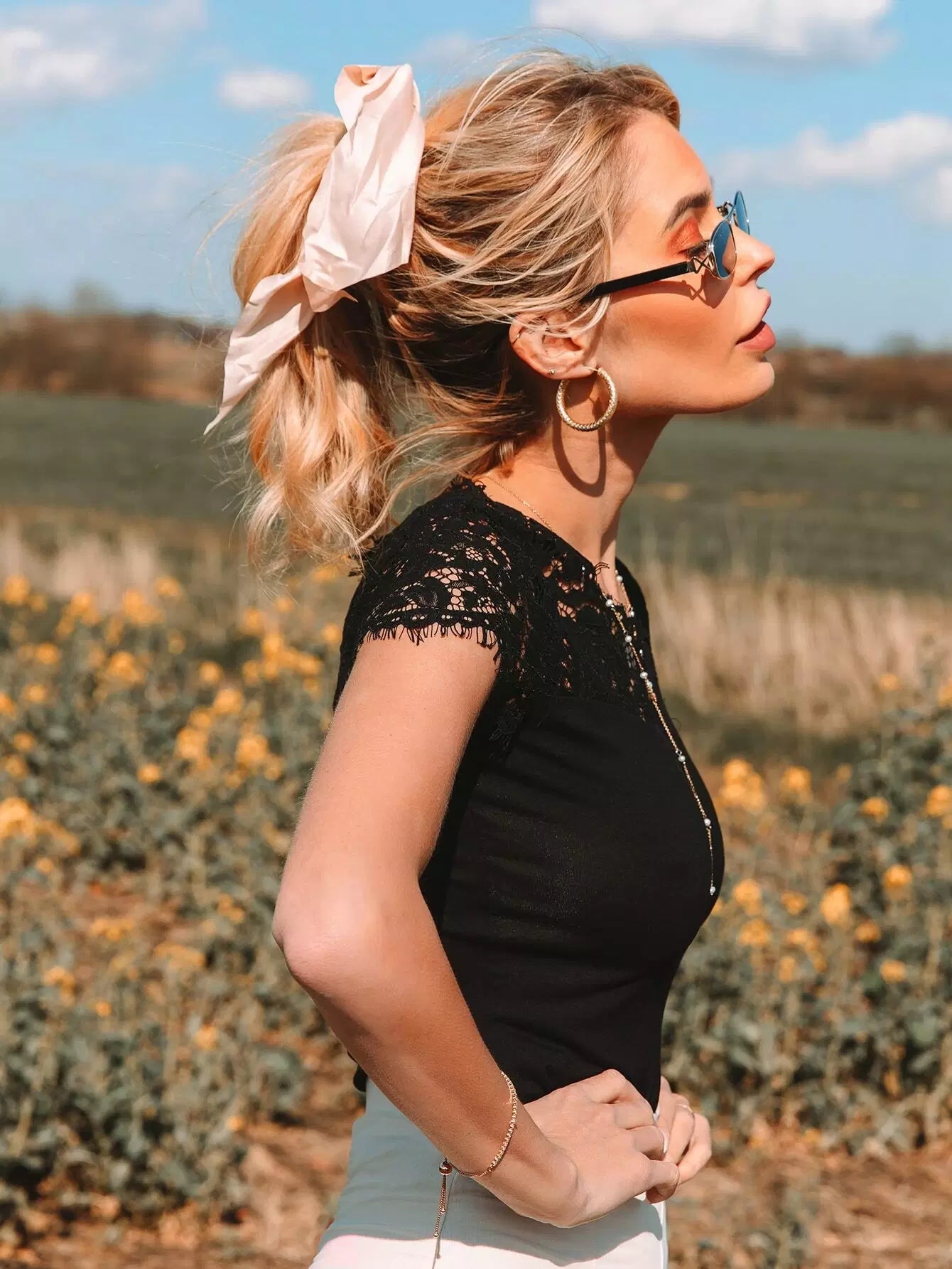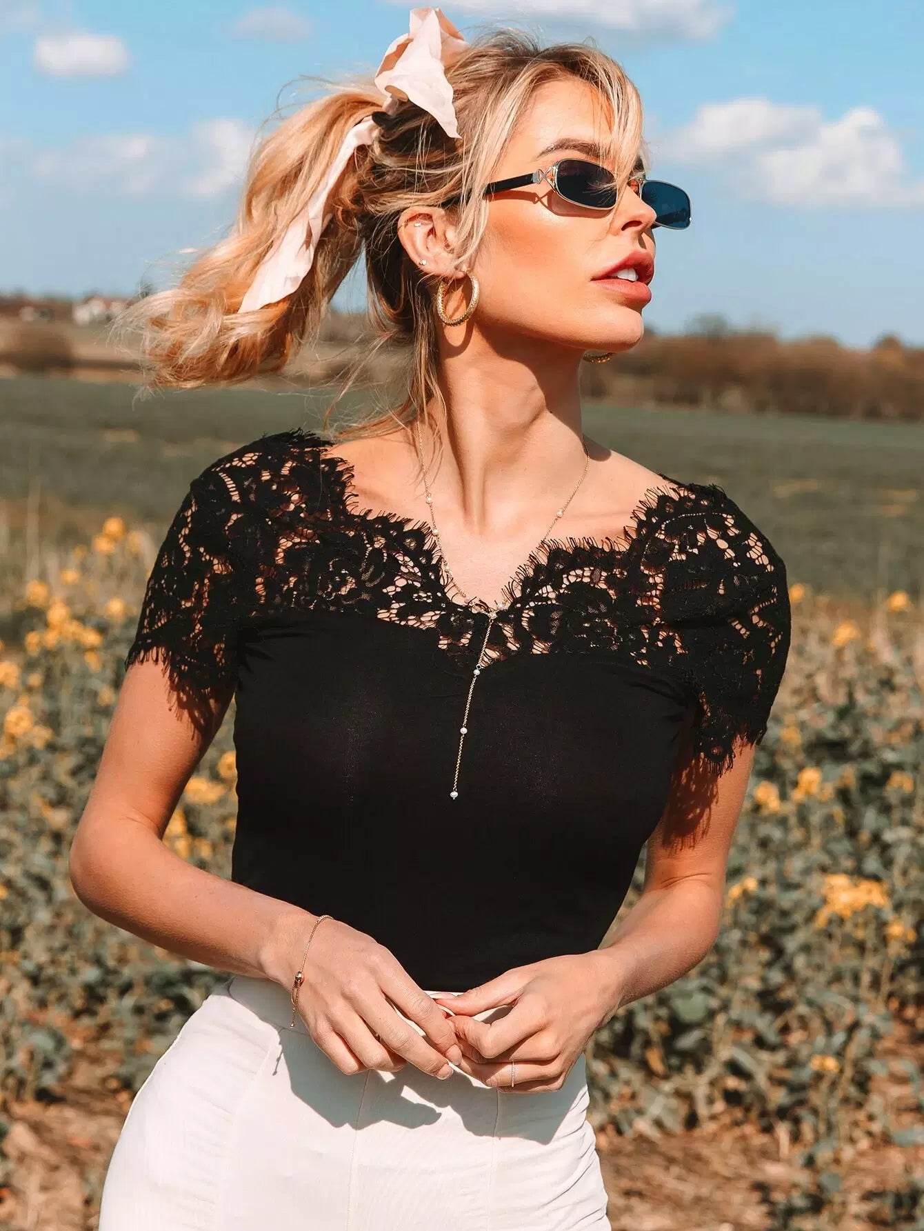 توب ضيق من الدانتيل بنقشة الدانتيل