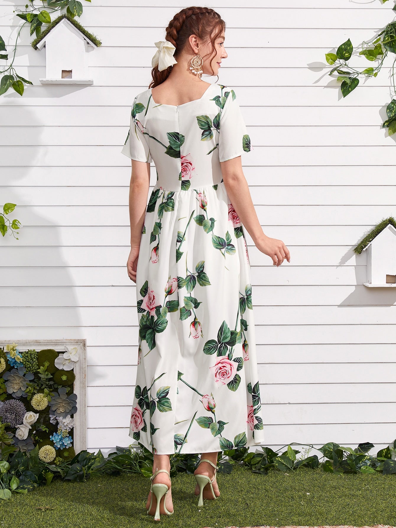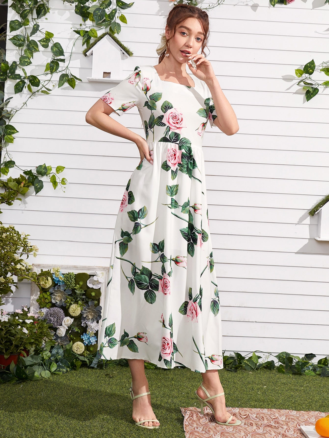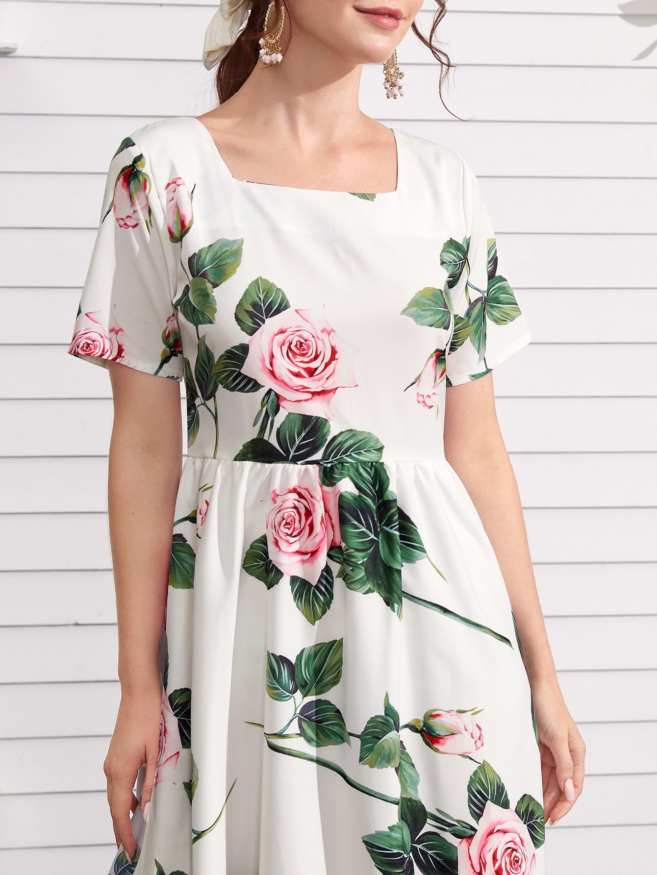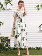 Floral Square Neck A-line Dress