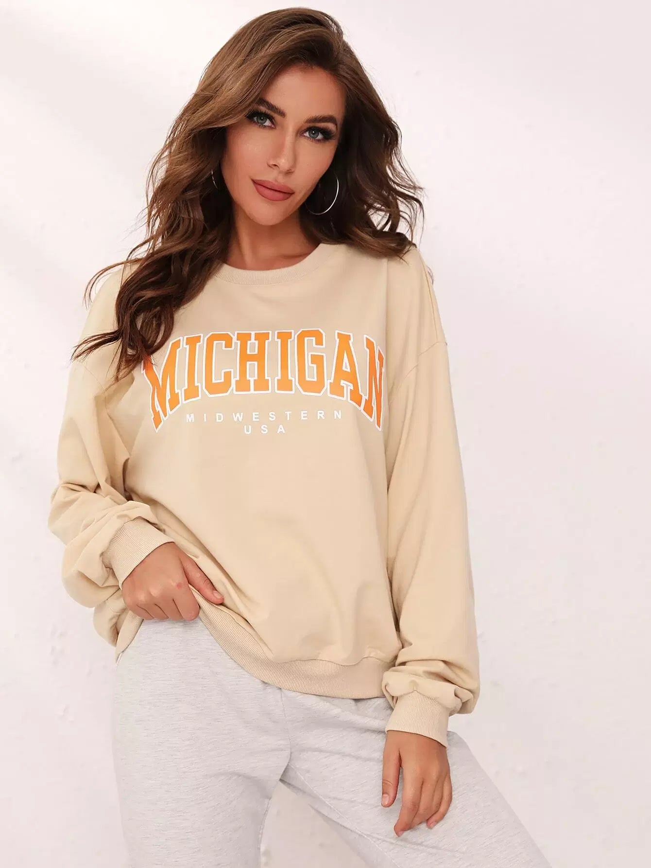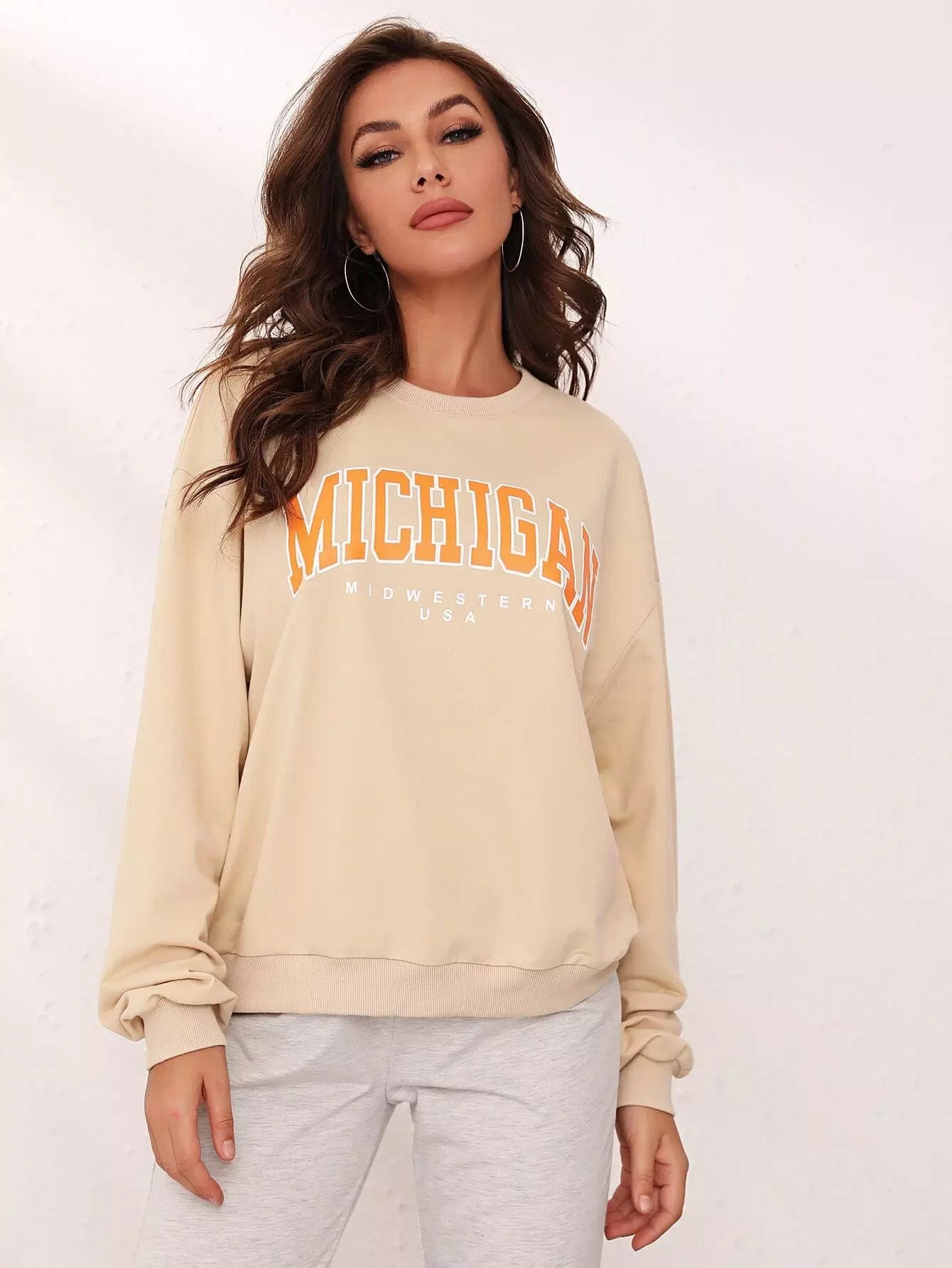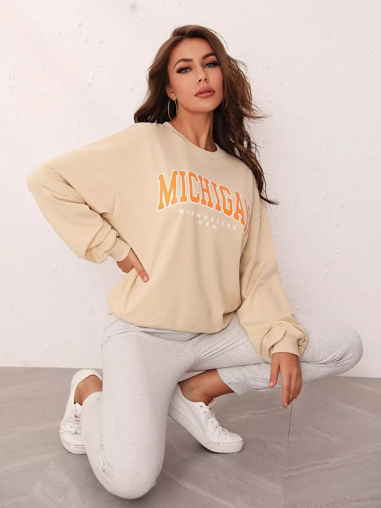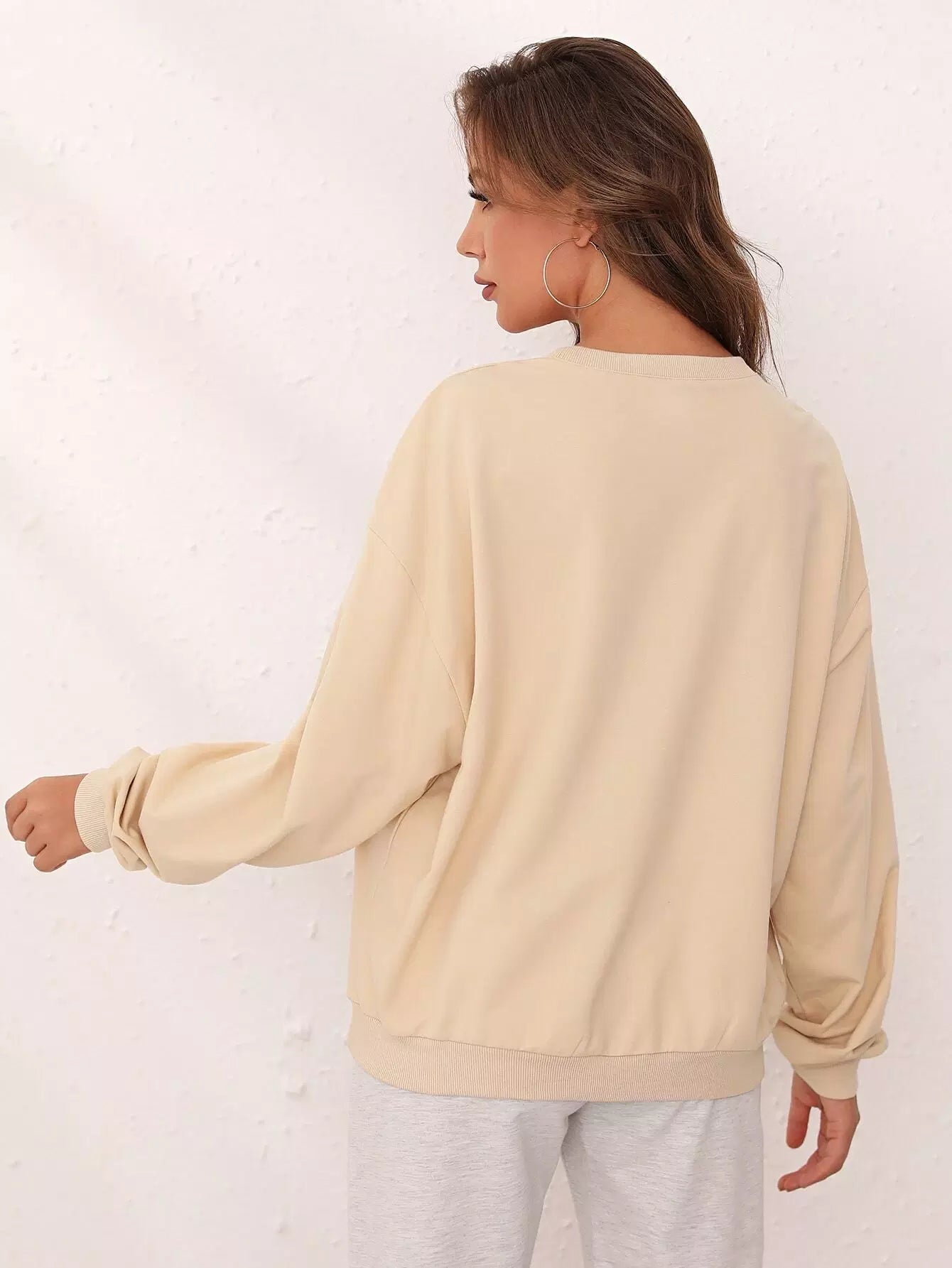 سويت شيرت بتصميم منسدل الكتفين برسومات على شكل حرف