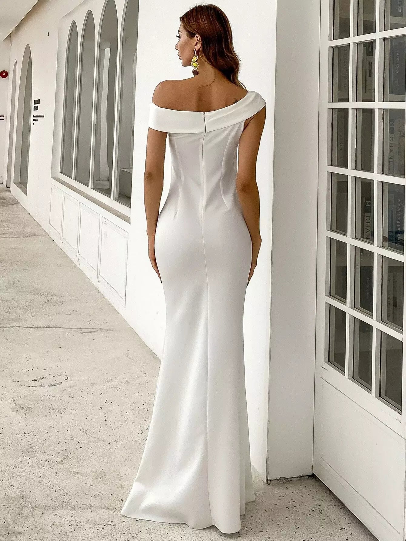 فستان حفلات الرقص بدون أكتاف مكشوف الأكتاف منشق الفخذين