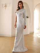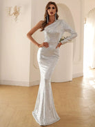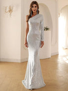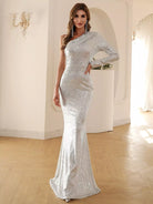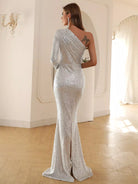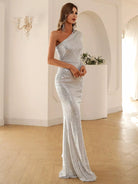 للنساء - فستان حفلة موسيقية بكتف واحد مزين بالترتر وحاشية حورية البحر