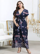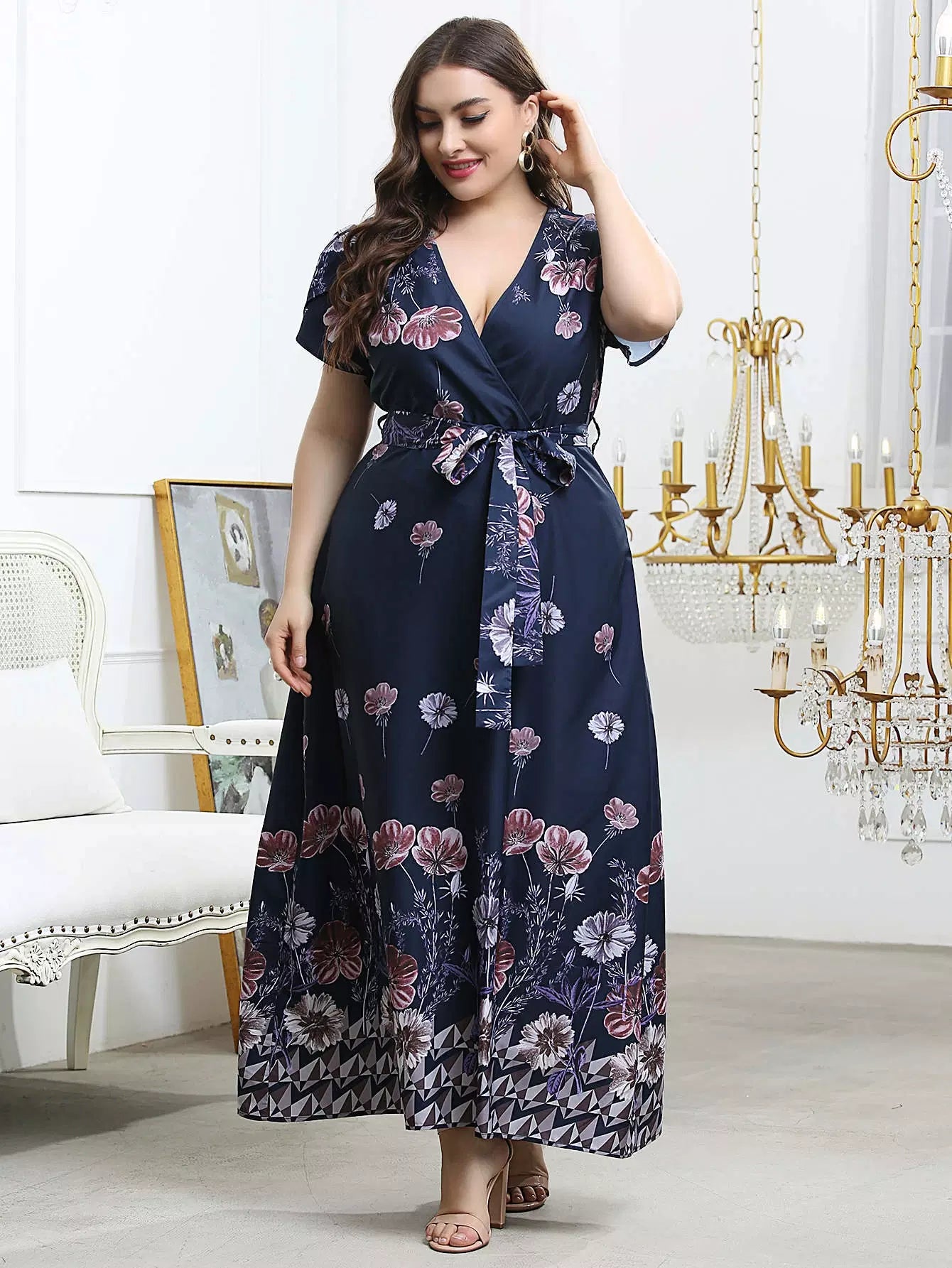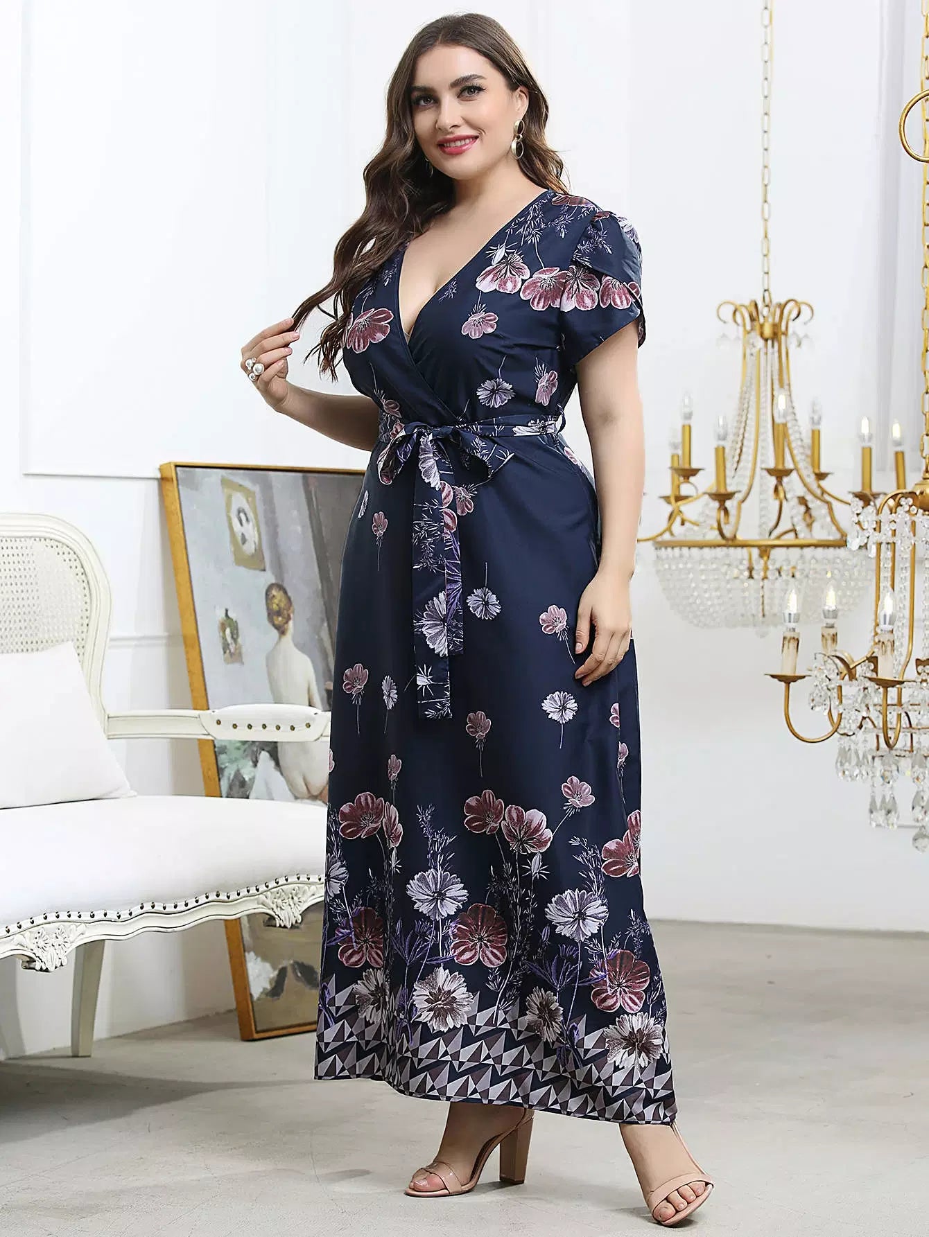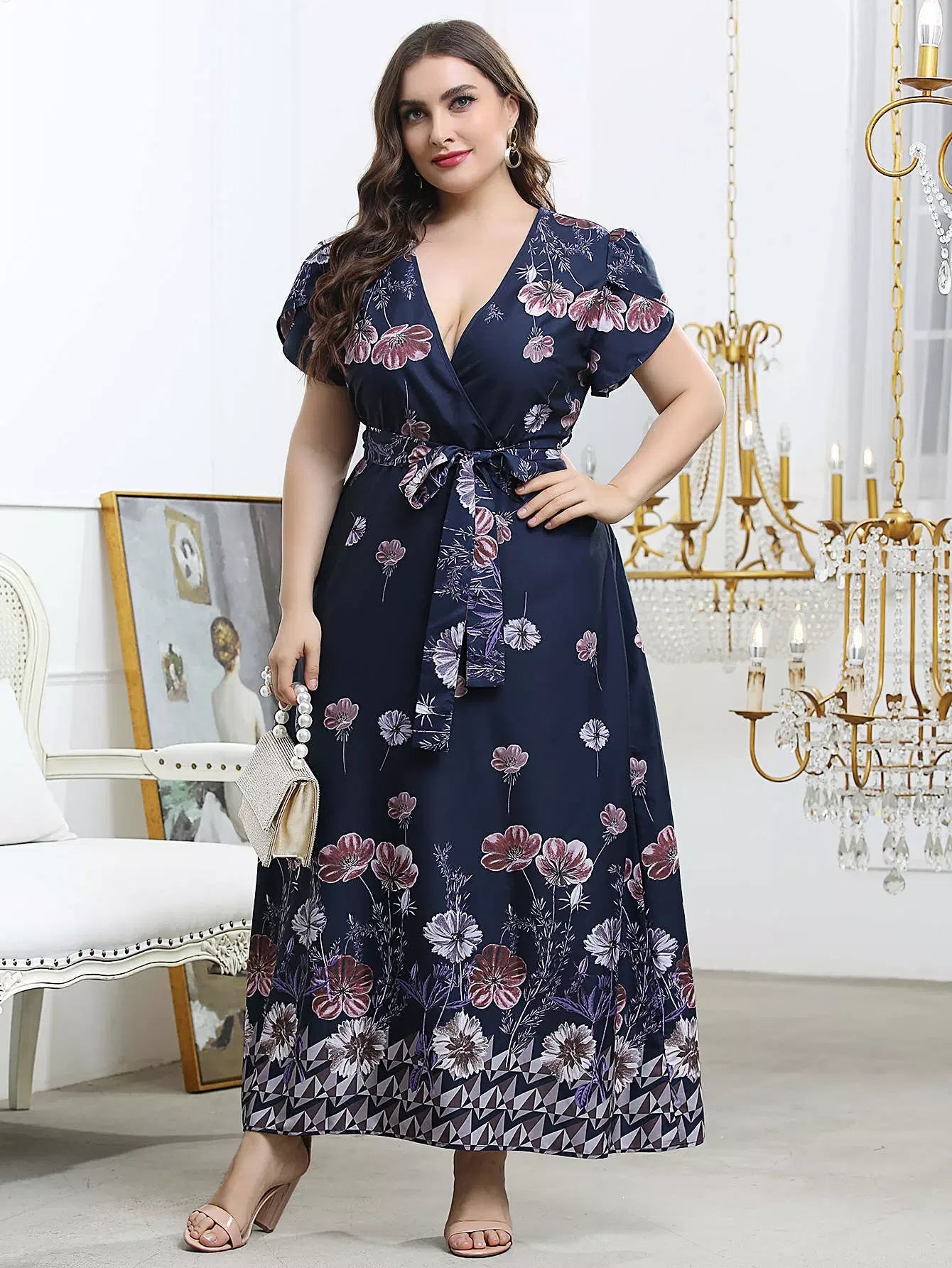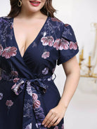 نحيف - مقاس كبير فستان بحزام وأكمام بتلات الأزهار