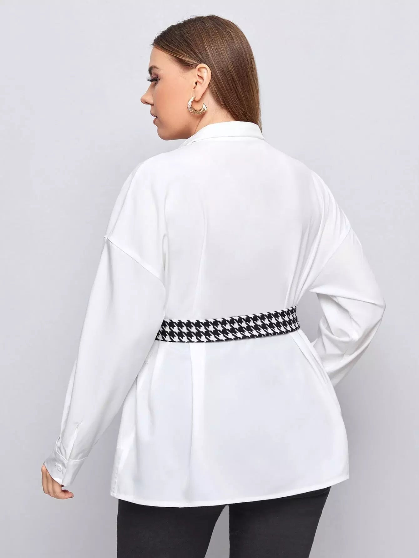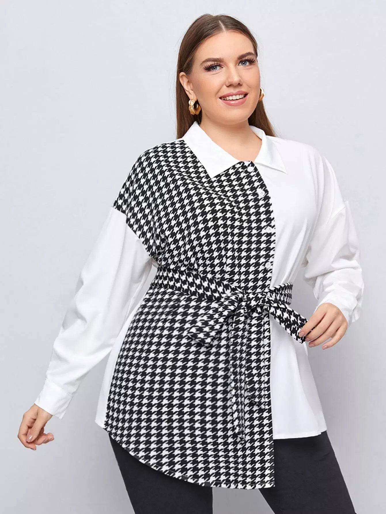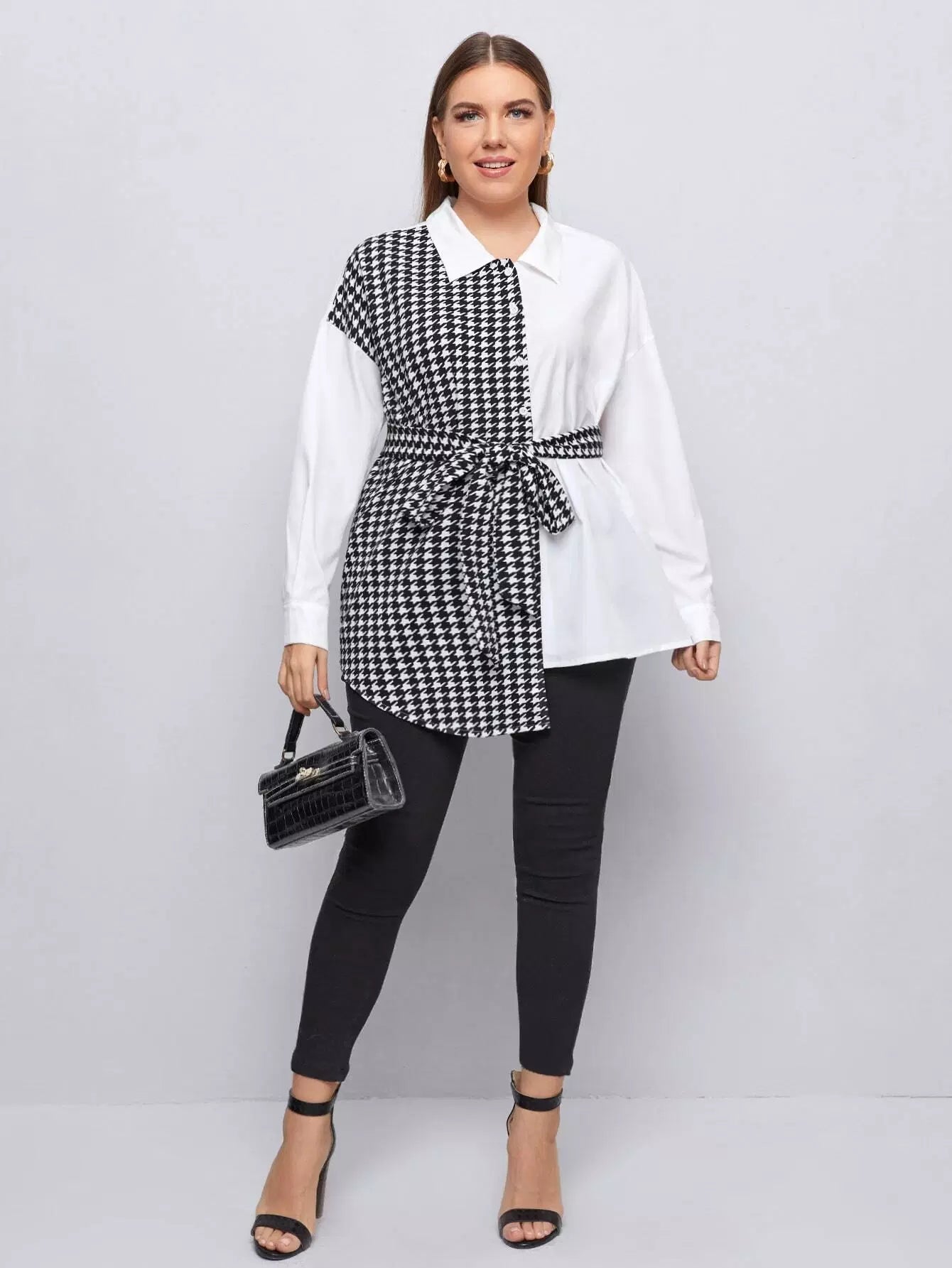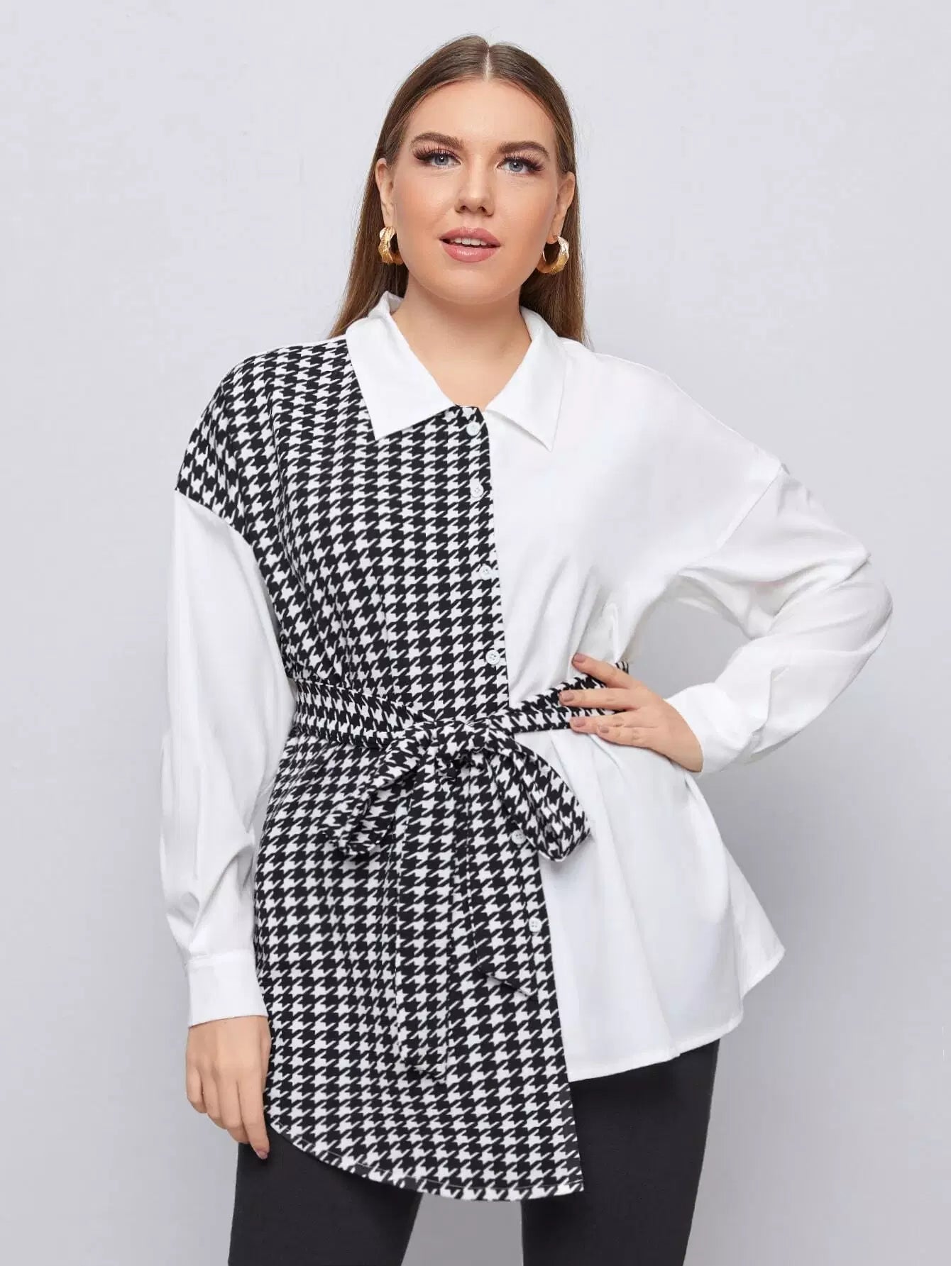 نحيف - مقاس كبير بلوزة بحزام وحاشية غير متناظرة