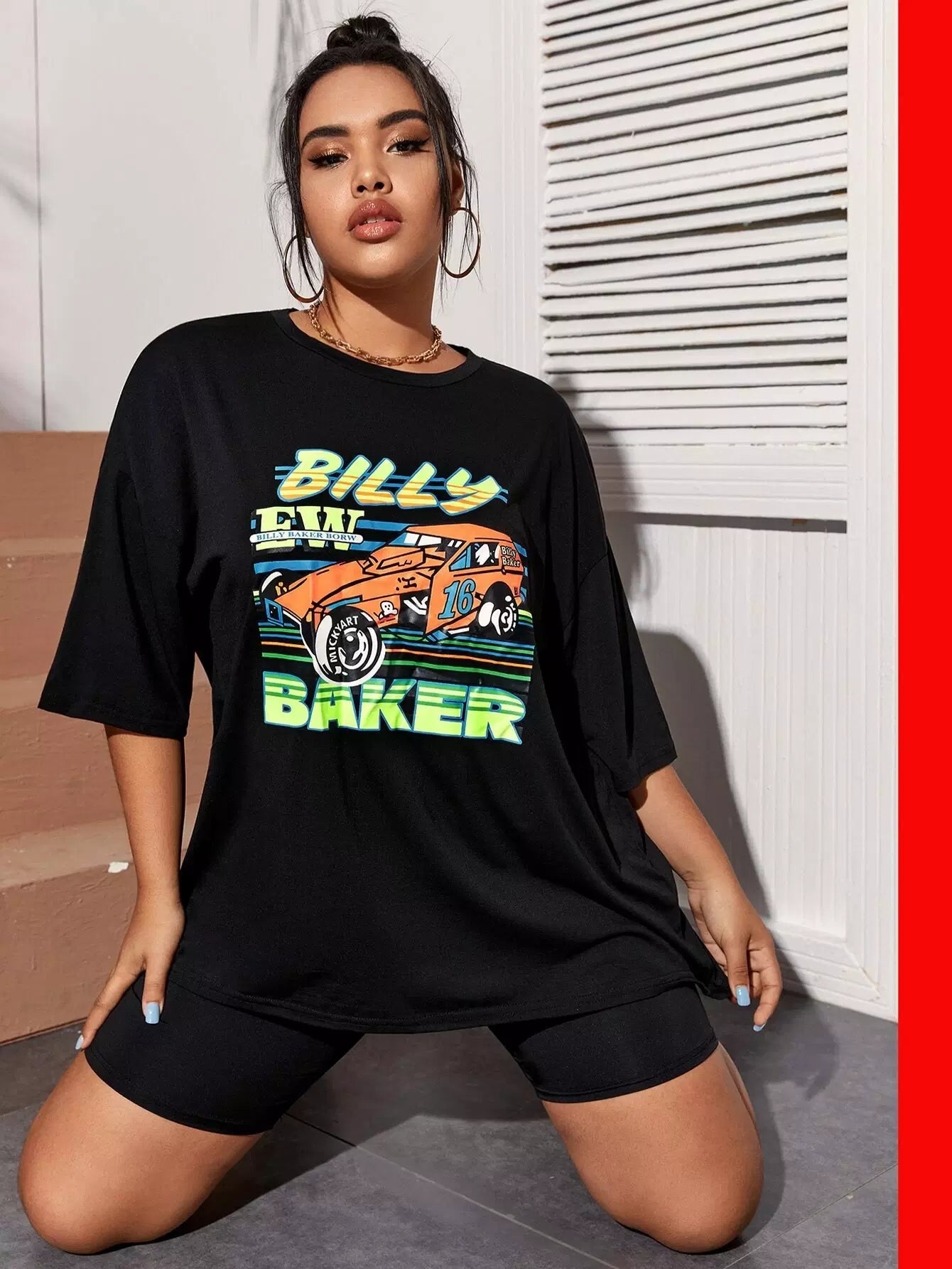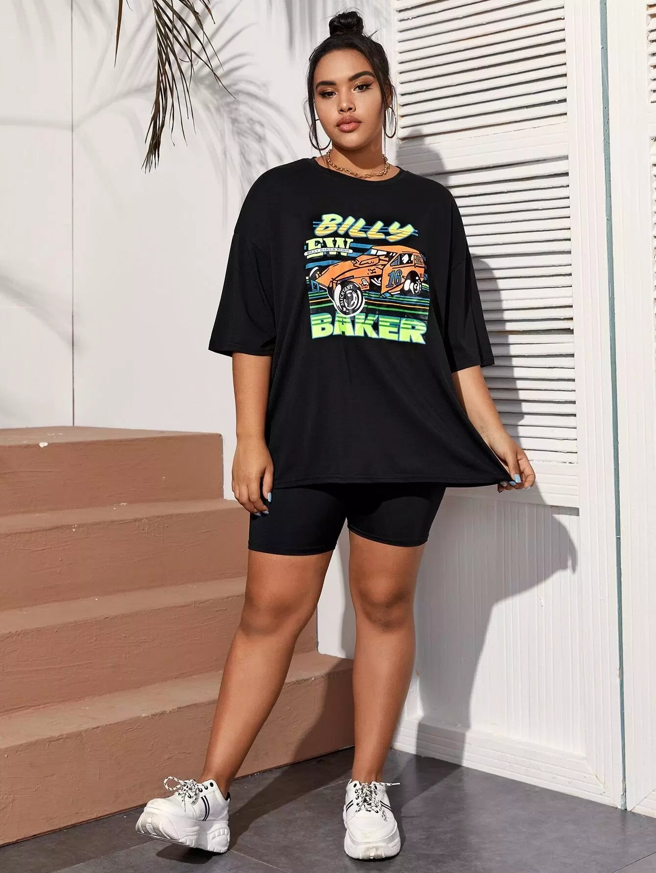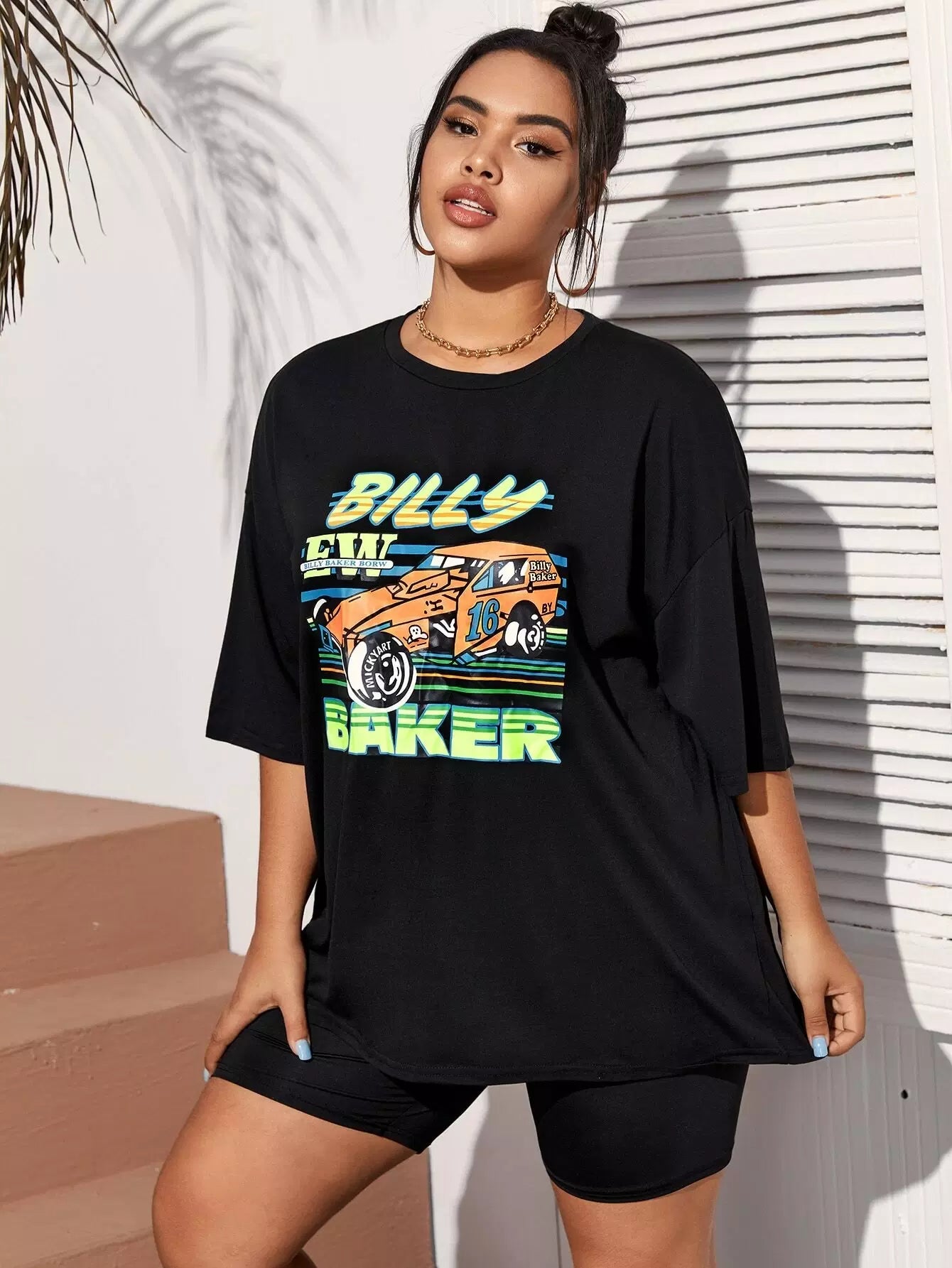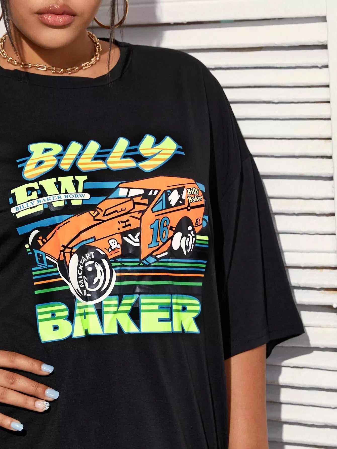 نحيف - مقاس كبير تي شيرت برسومات سيارات السباق كبيرة الحجم
