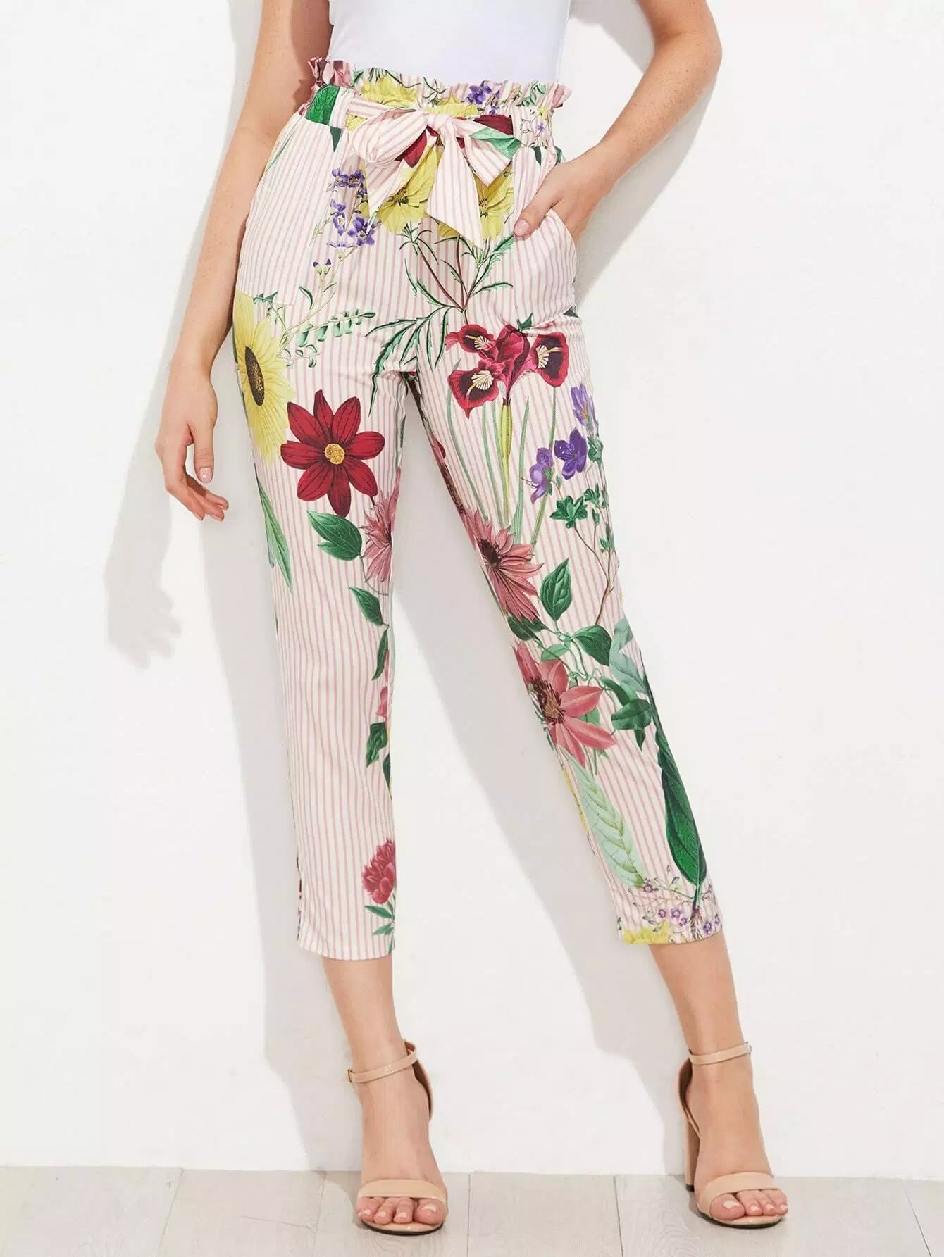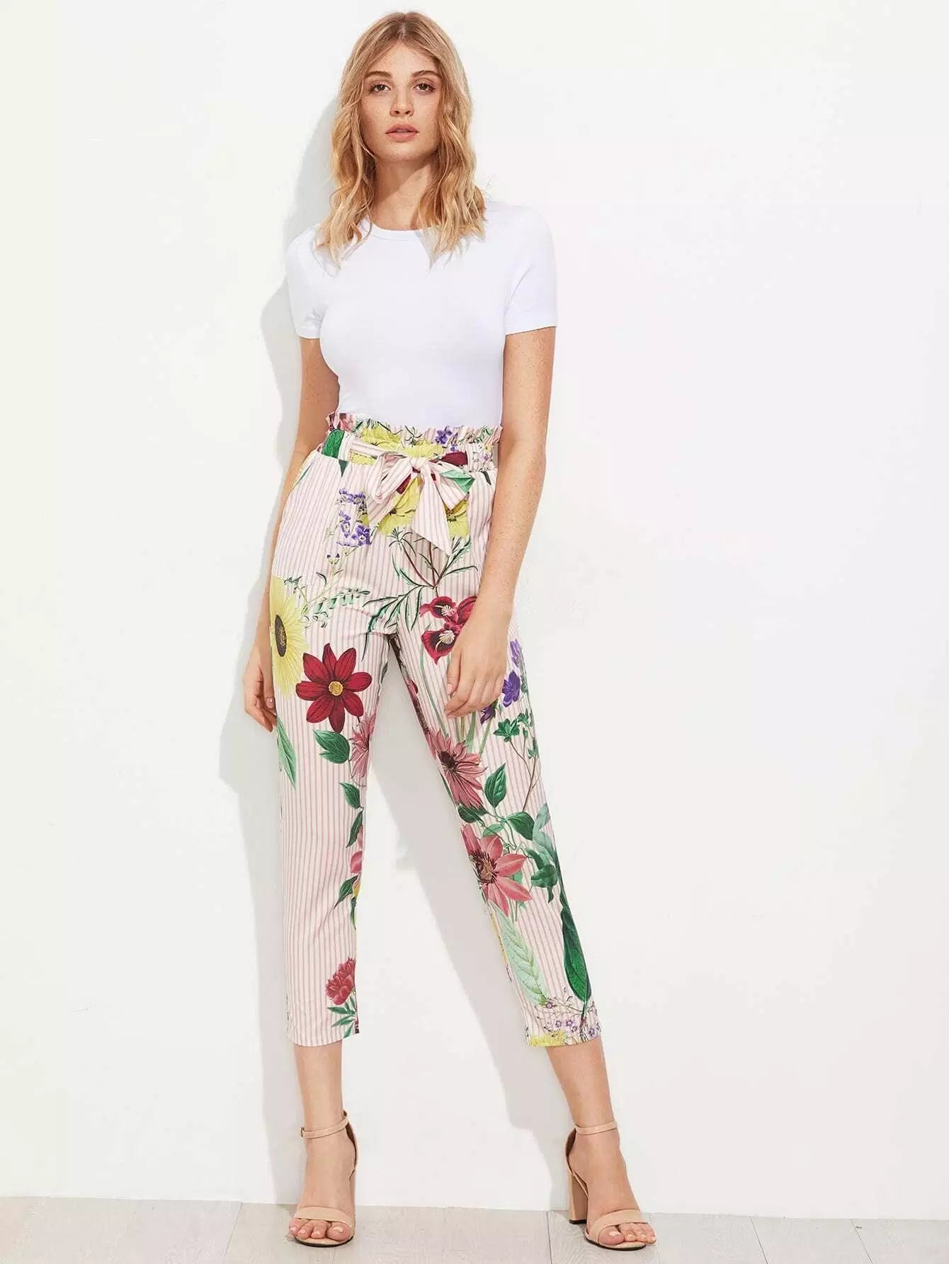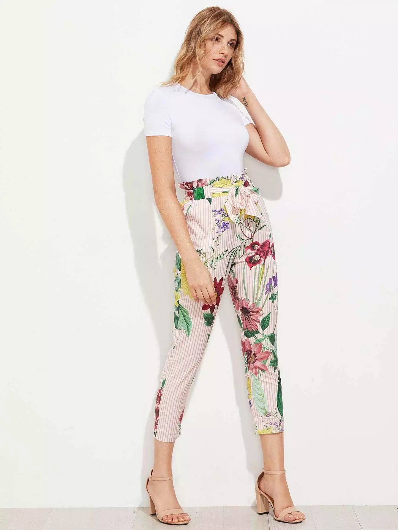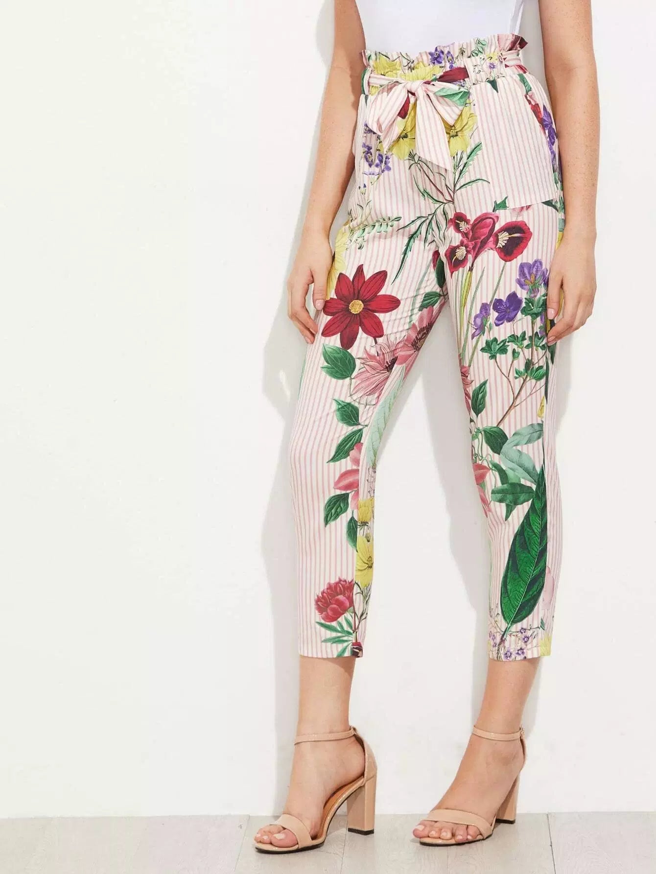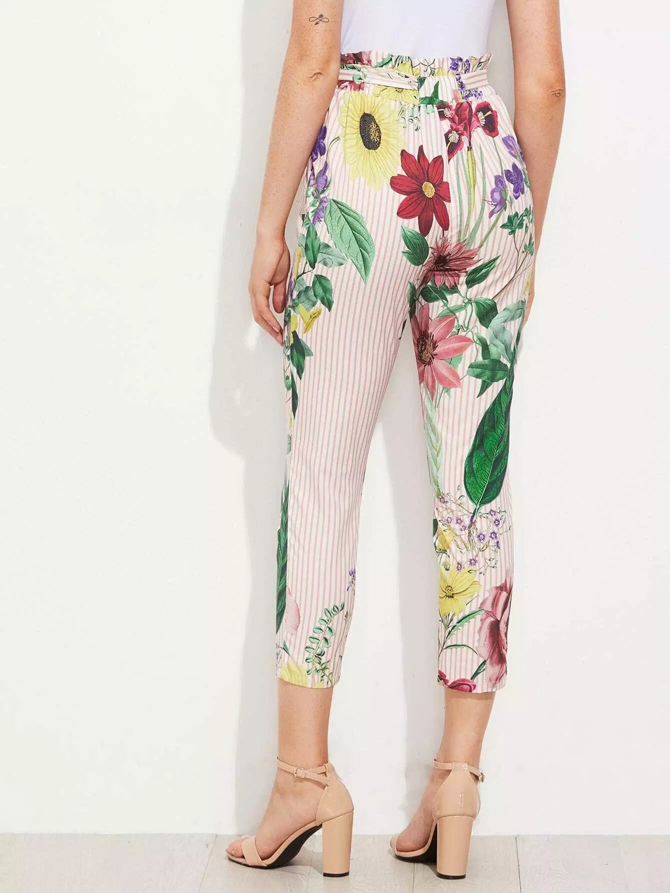 بنطال بطبعة مختلطة بخصر مكشكش بدون حزام