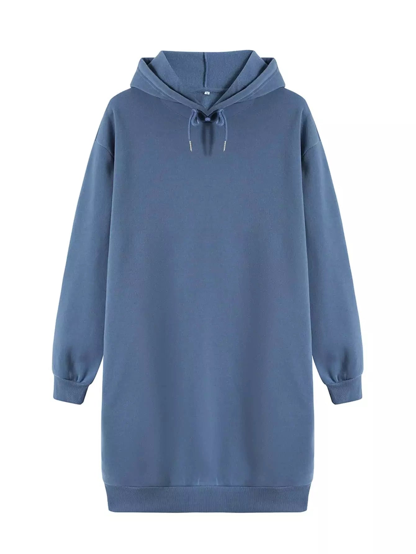 فستان بقلنسوة مبطنة حرارية سادة برباط حراري مبطن