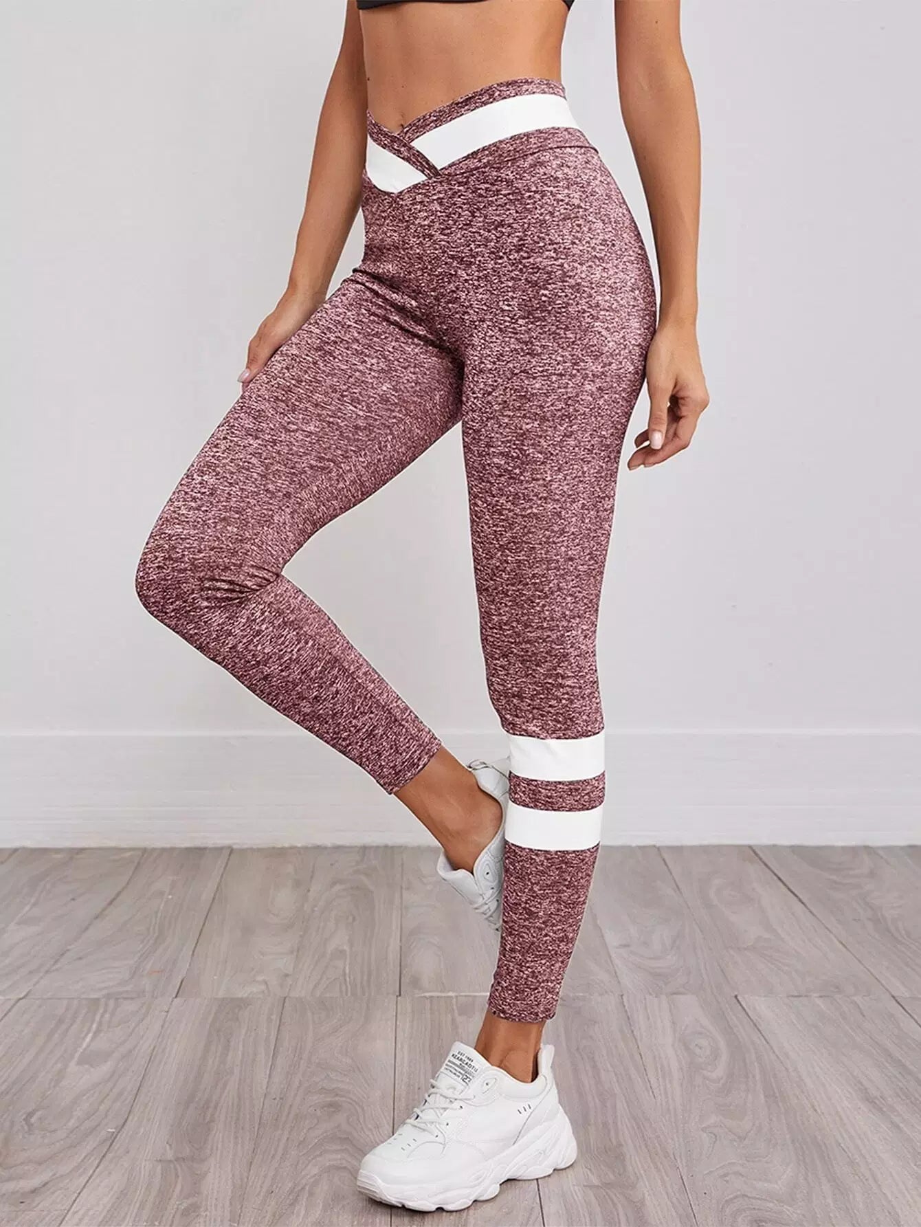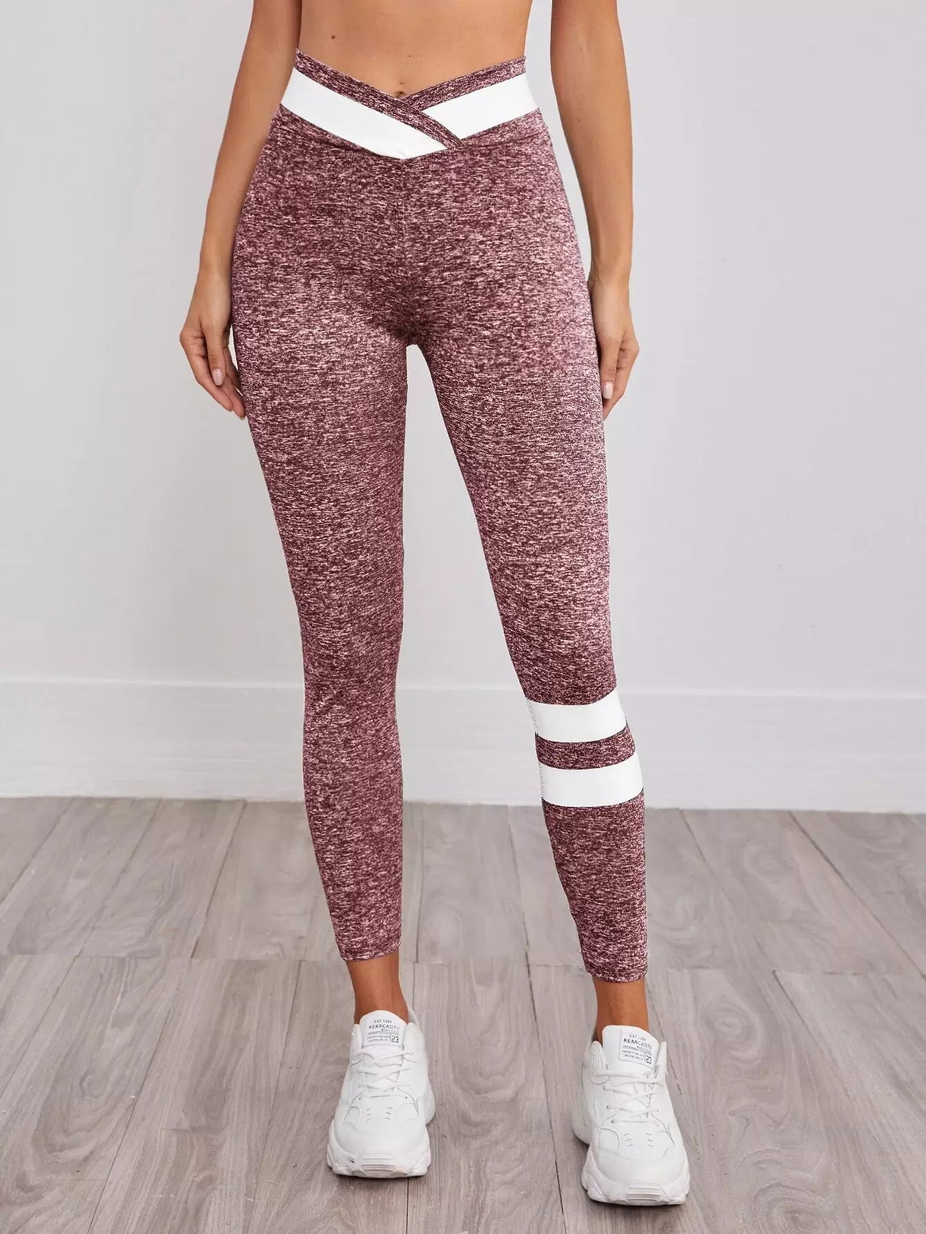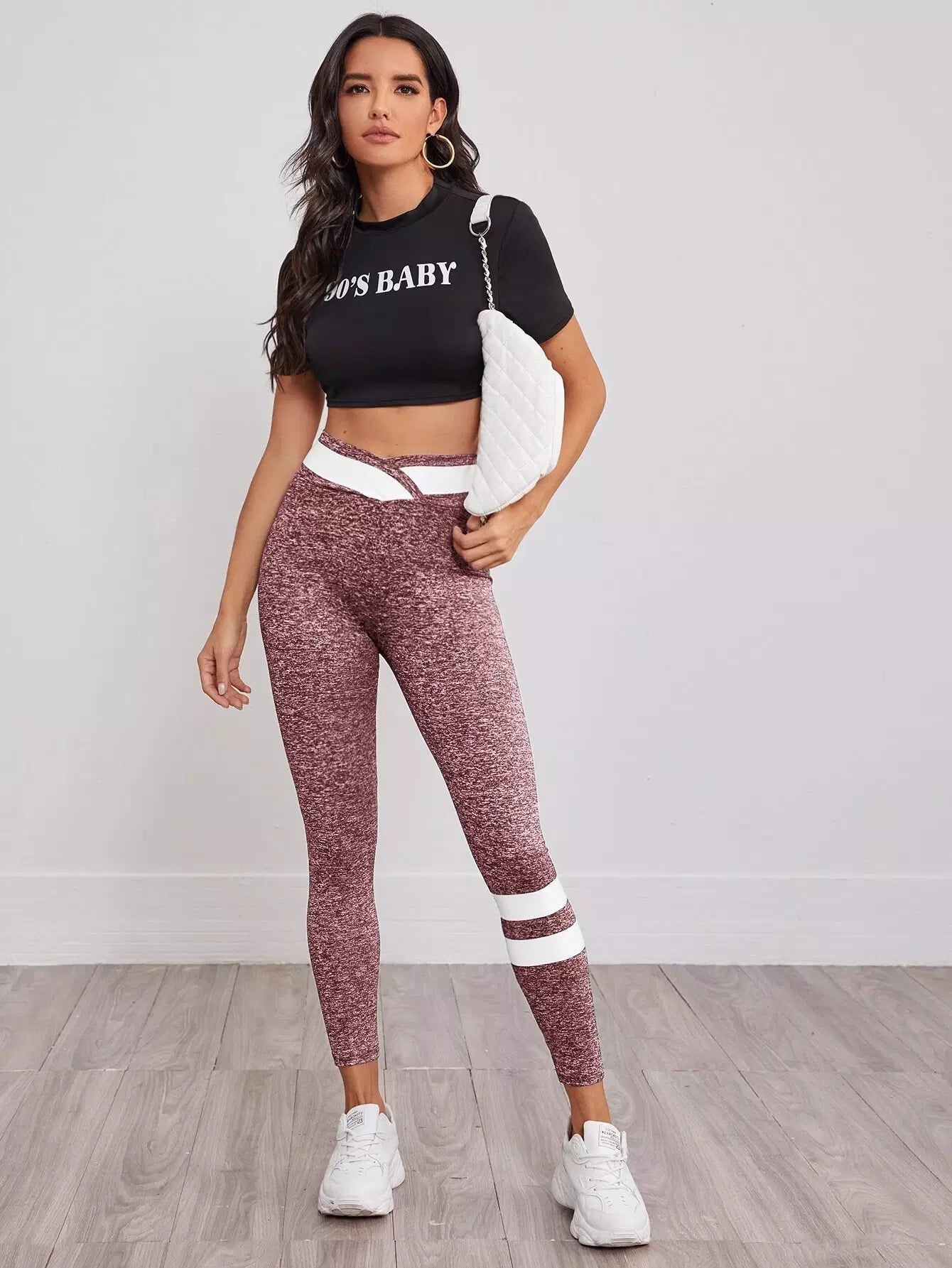 بنطلون ضيق ضيق مخطط بحزام خصر عريض مخطط