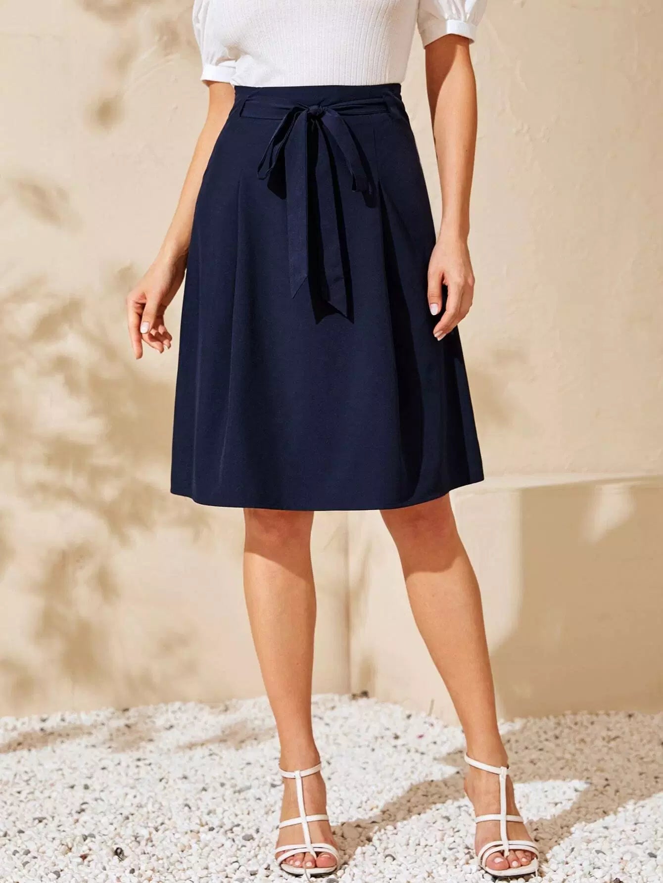 النساء - تنورة سادة بربطة أمامية