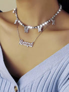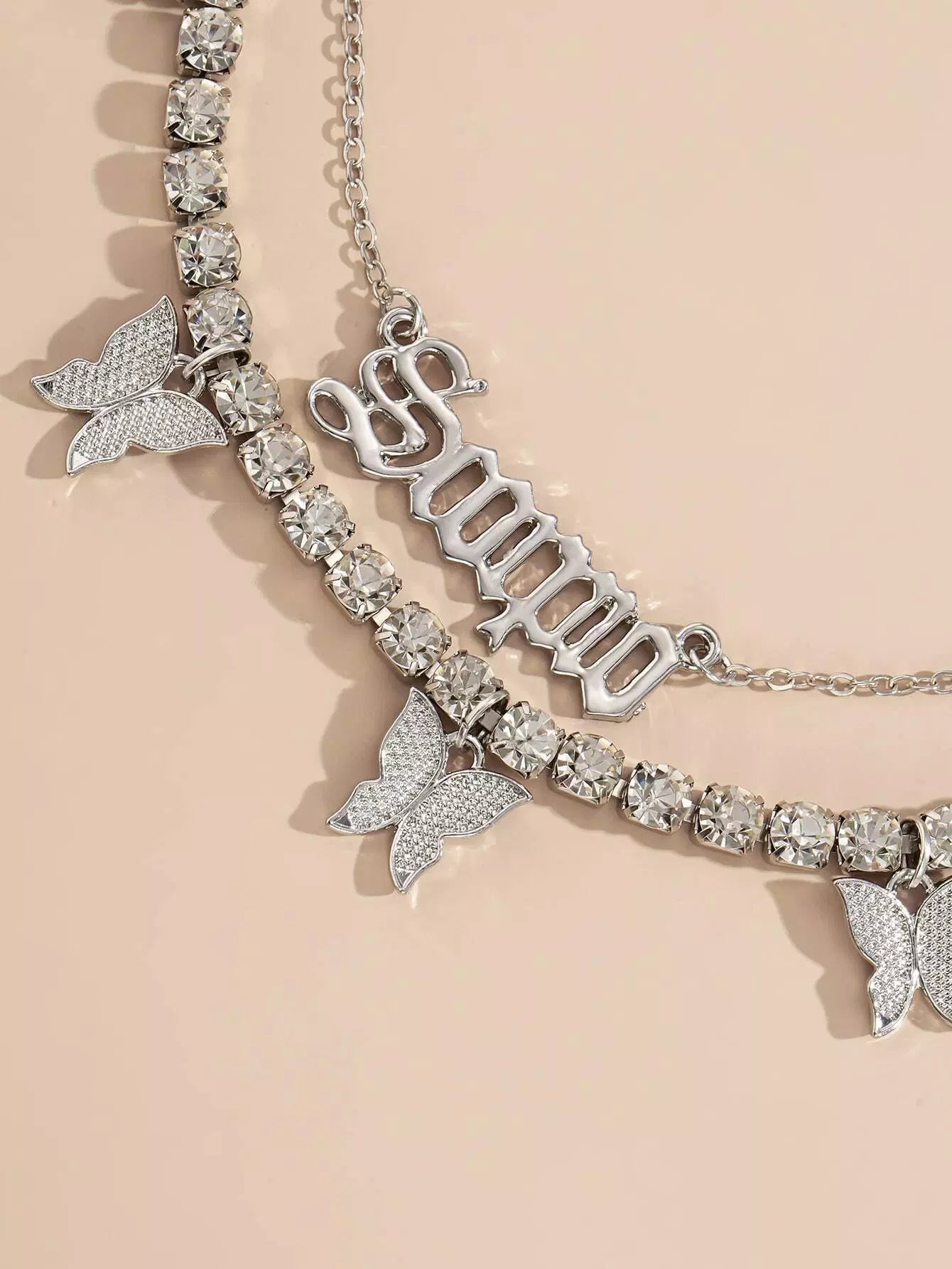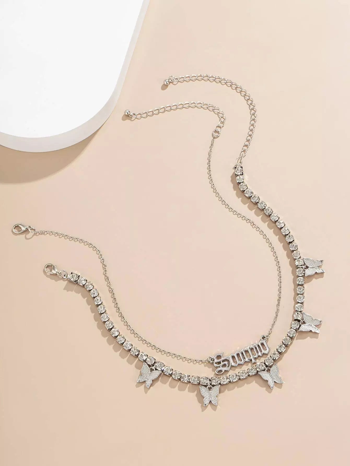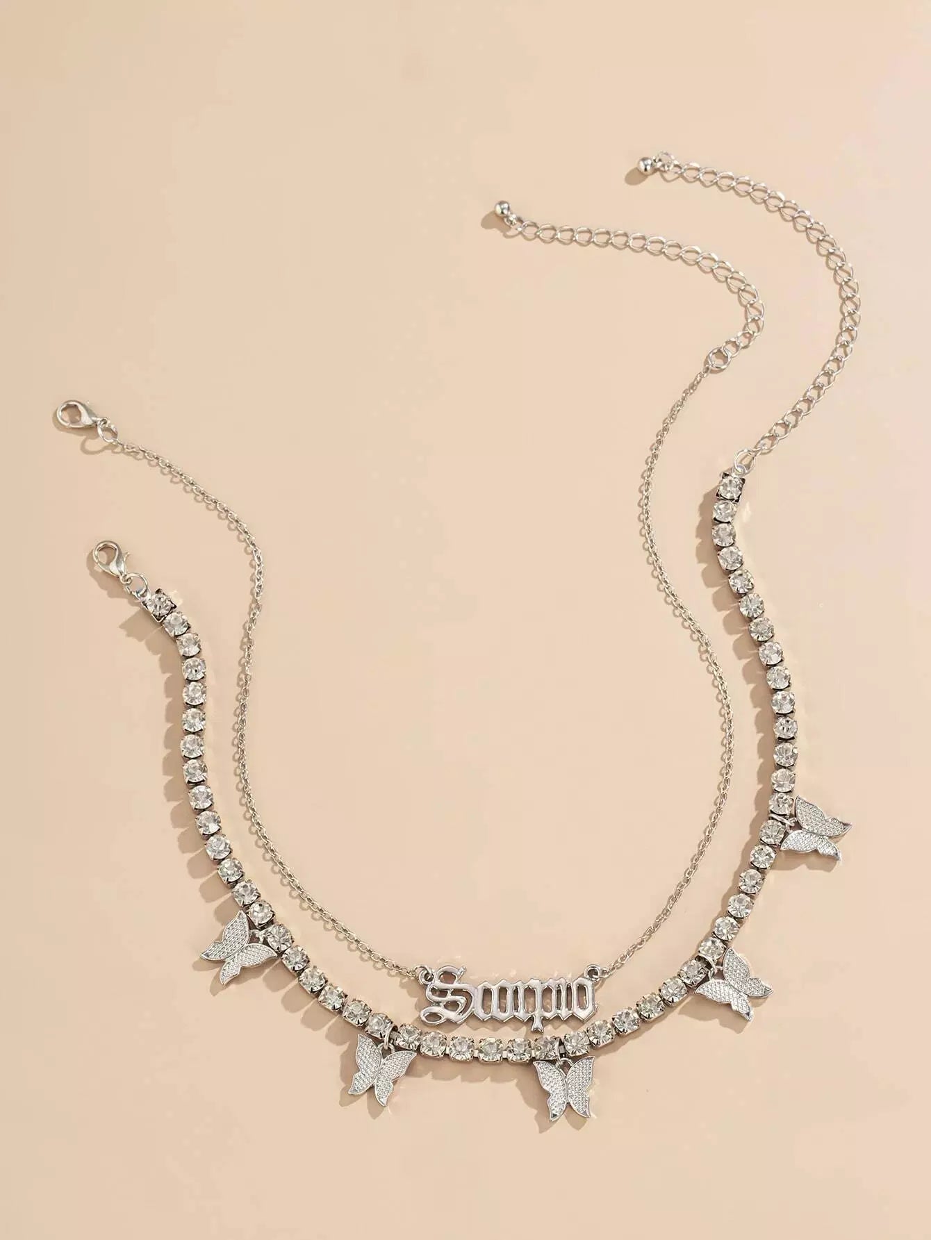 عقد مكون من قطعتين على شكل فراشة وحرف