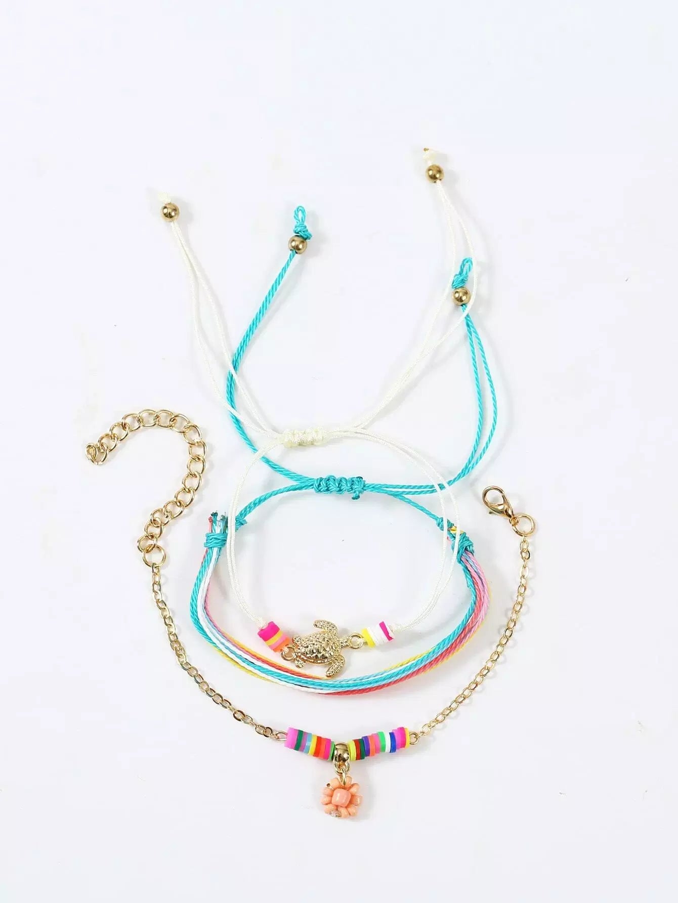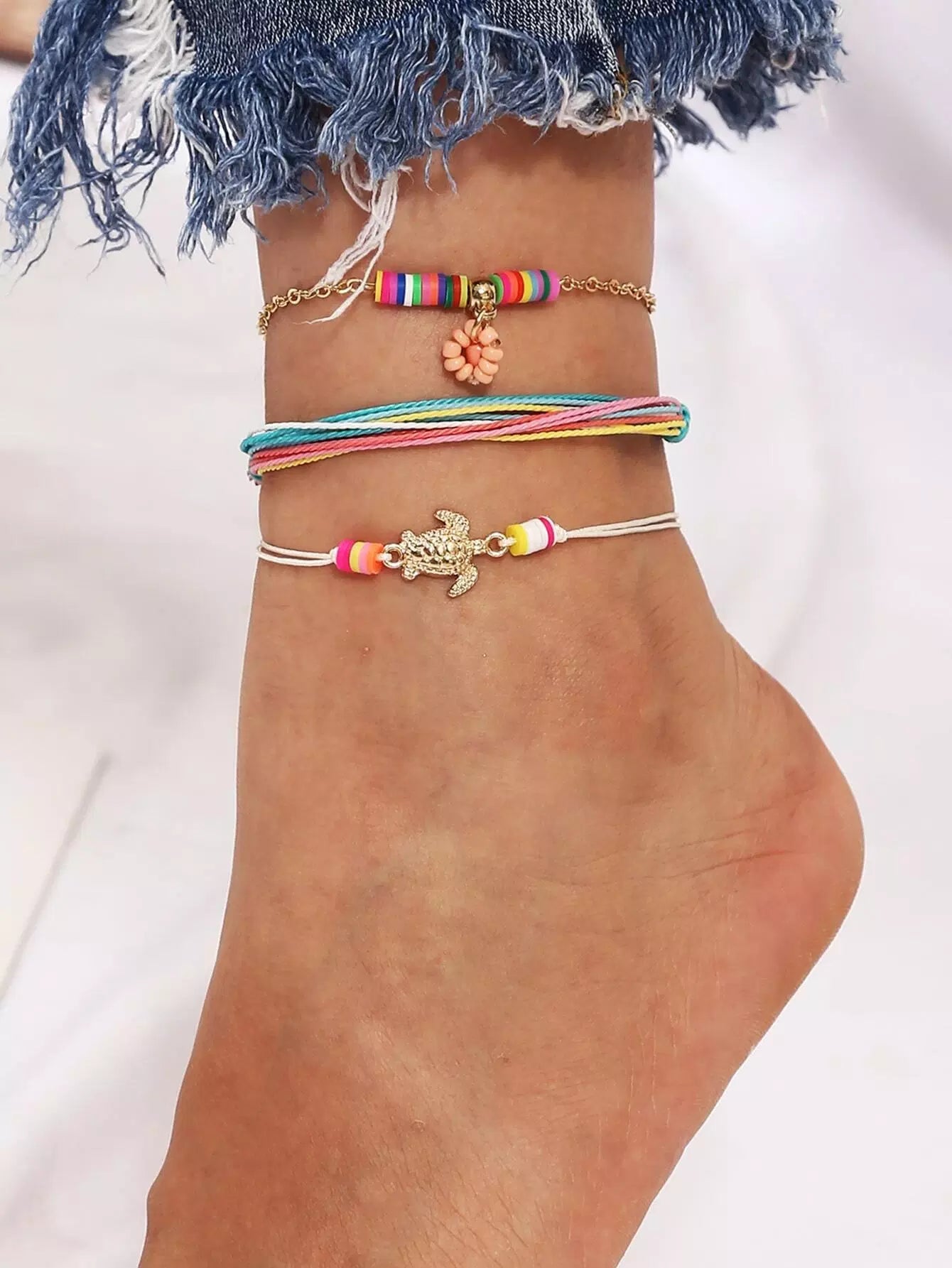 خلخال مزين بخرز على شكل سلحفاة مكون من 3 قطع