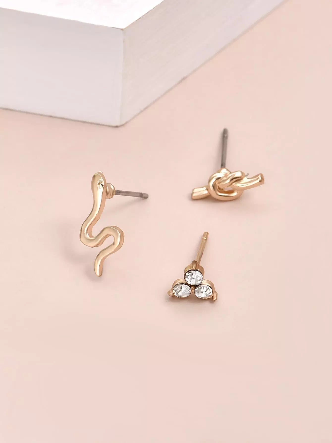 3 قطع أقراط مرصعة بديكور من حجر الراين