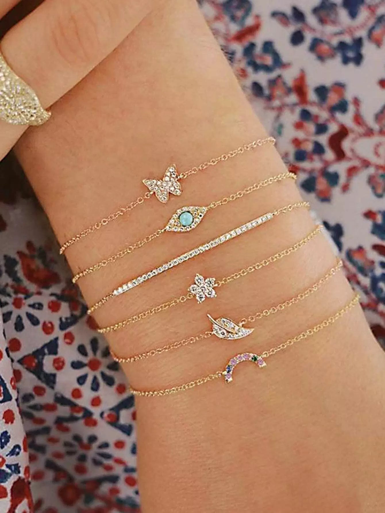 للنساء - 6 قطع من سوار ديكور من حجر الراين على شكل زهرة وأوراق شجر