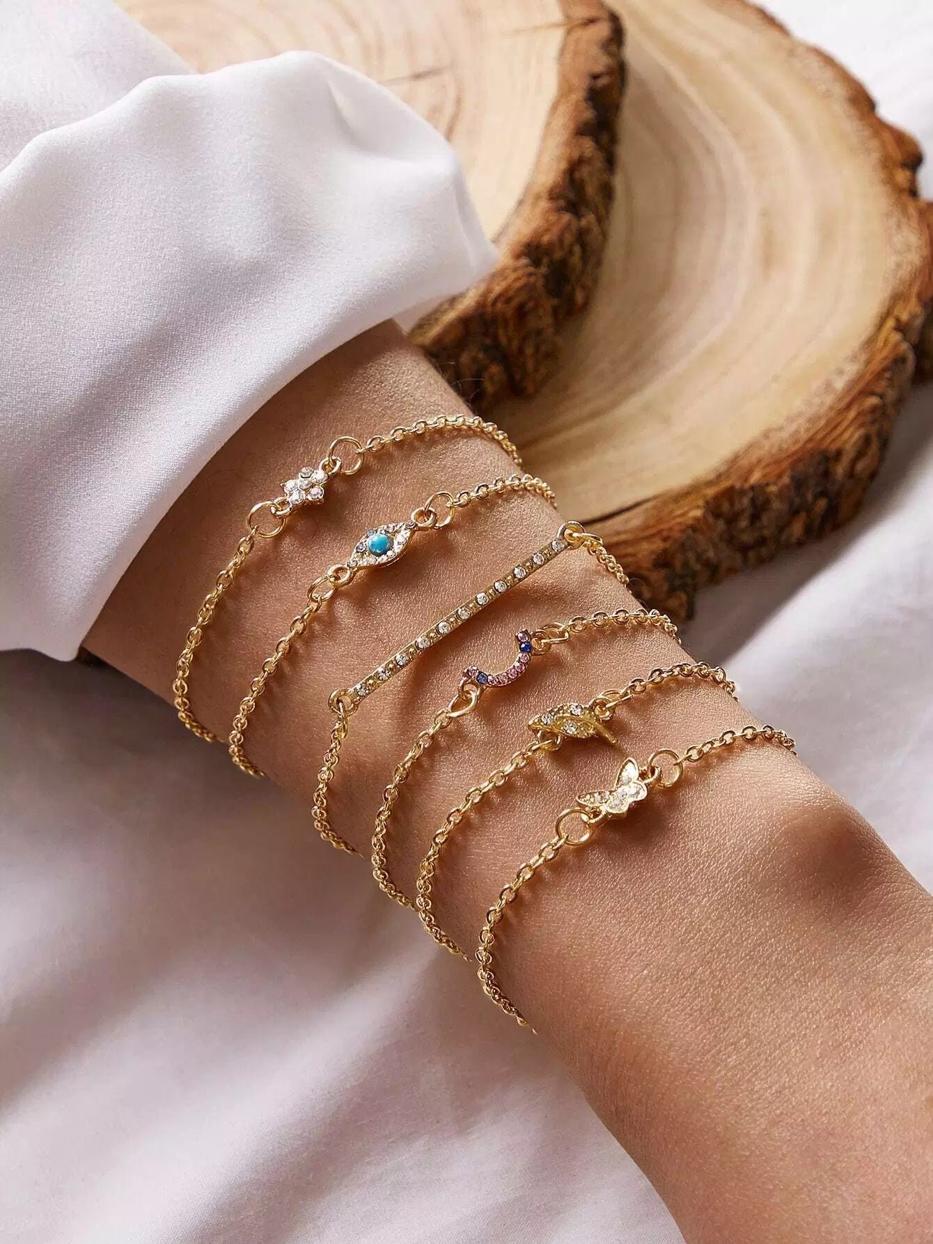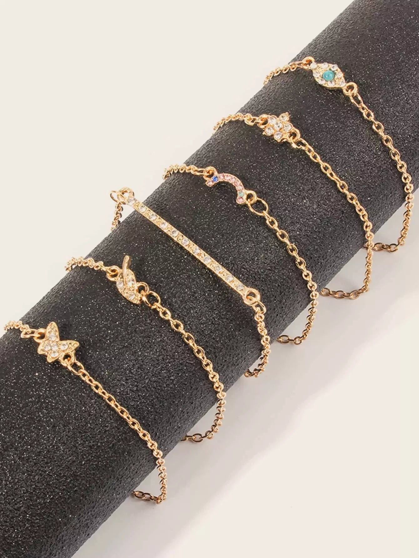 6 قطع من سوار مزين بأحجار الراين على شكل زهرة وأوراق