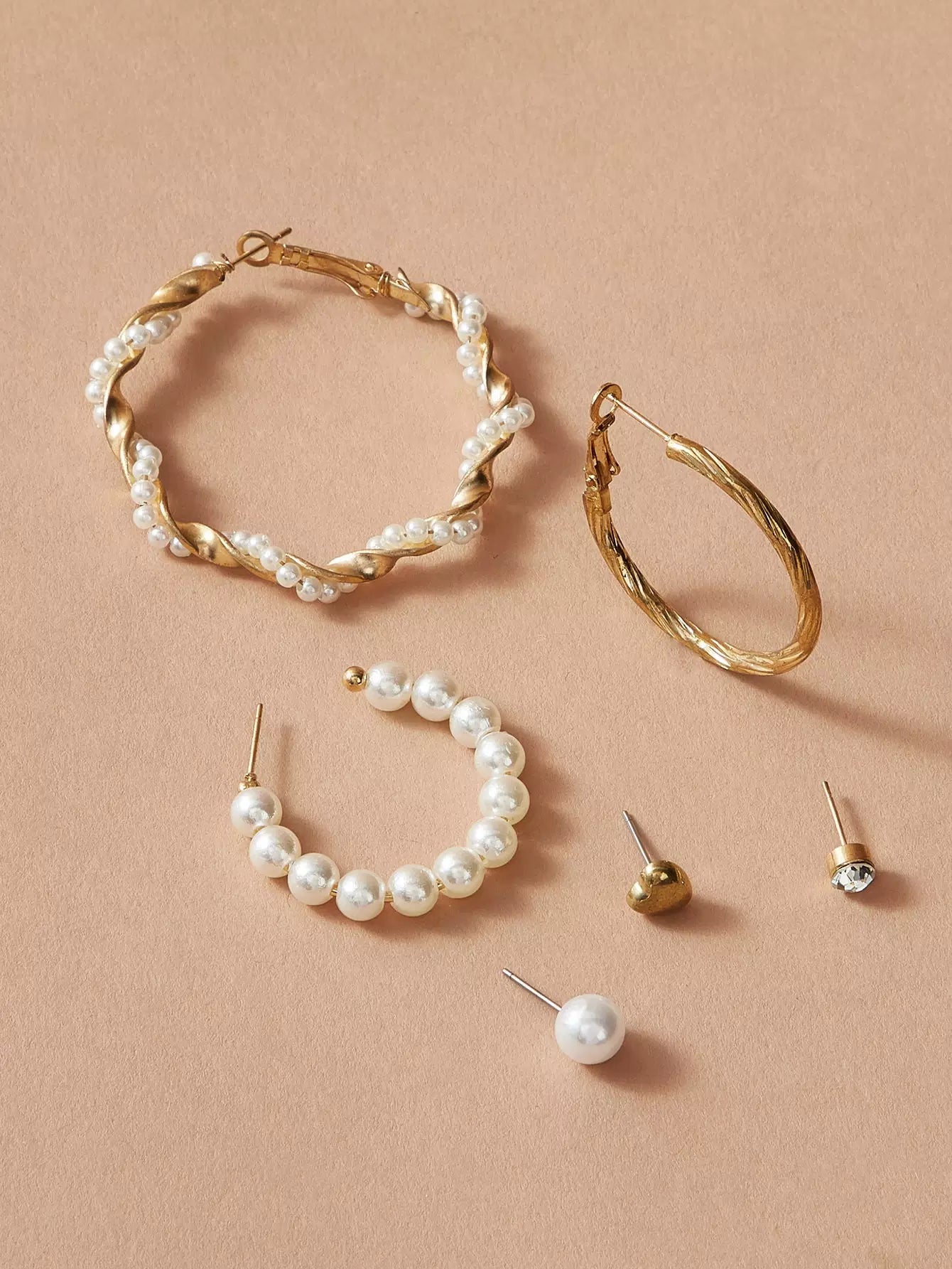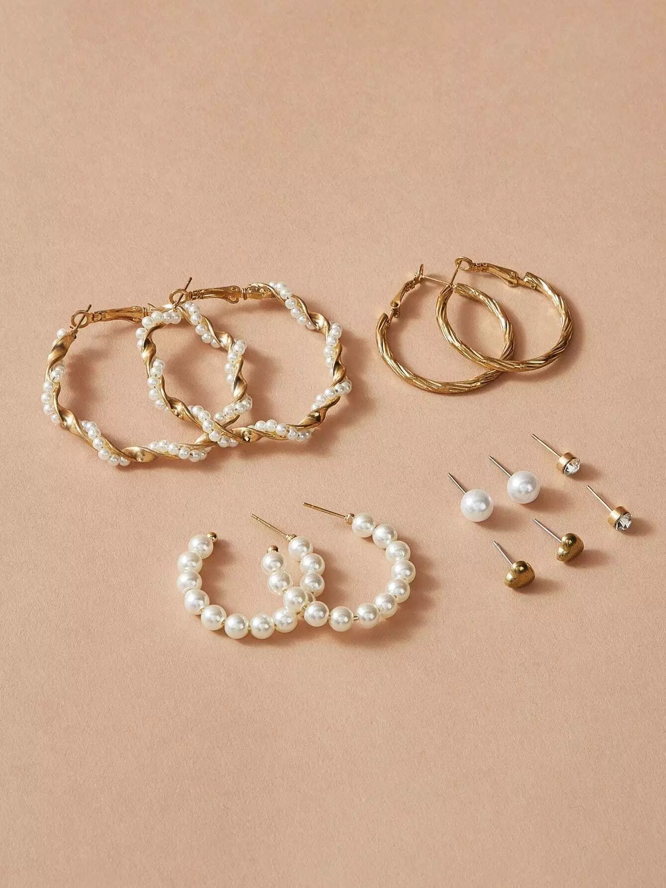 أقراط بتصميم لؤلؤ صناعي 6 أزواج