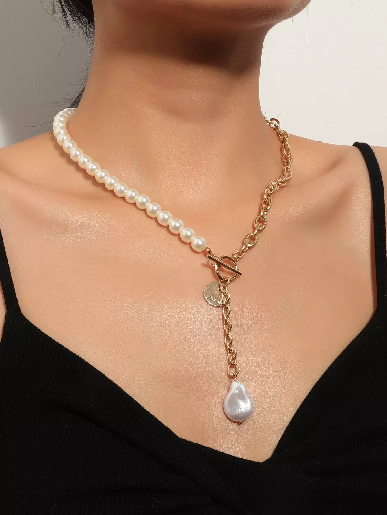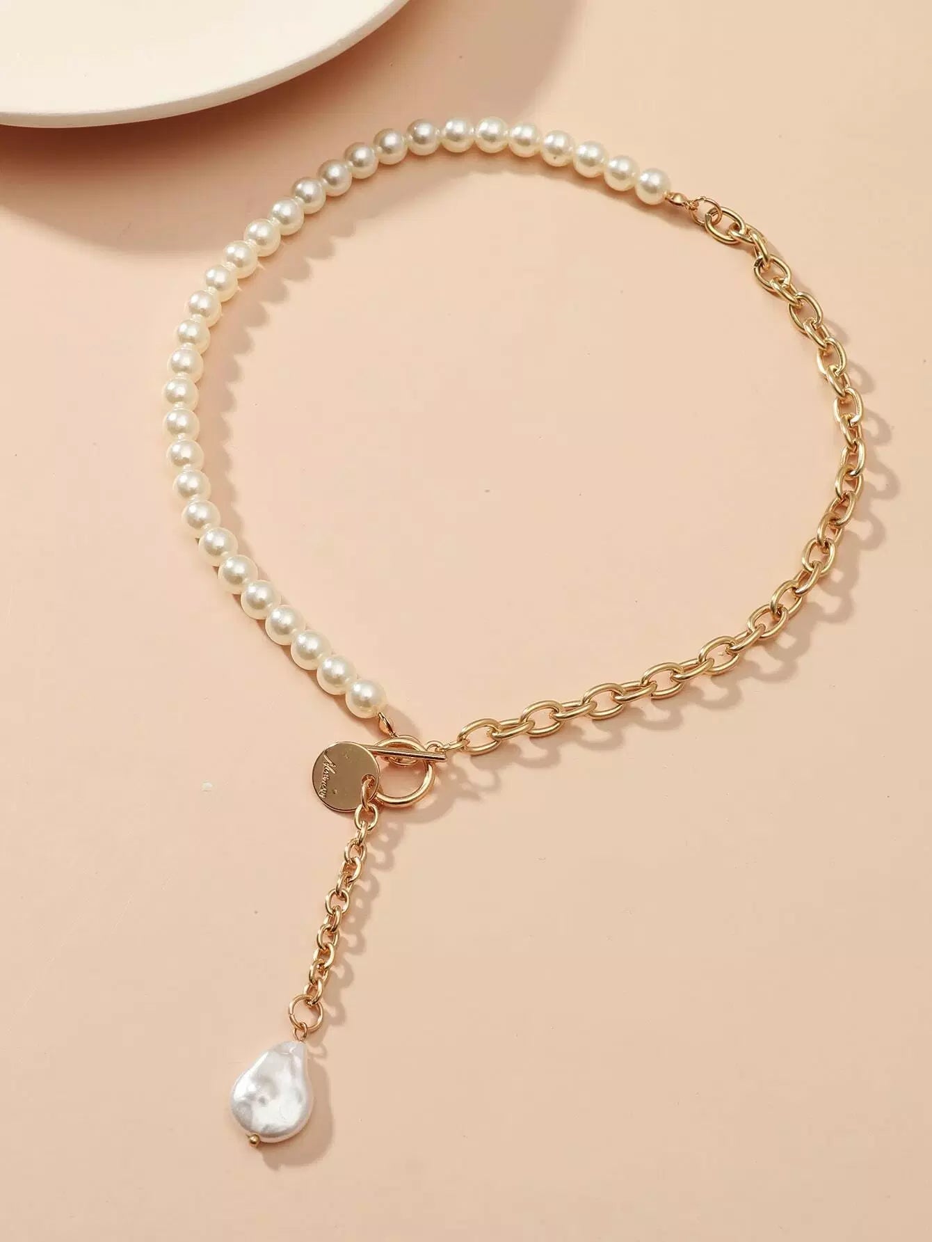 قلادة Y-lariat من اللؤلؤ الصناعي