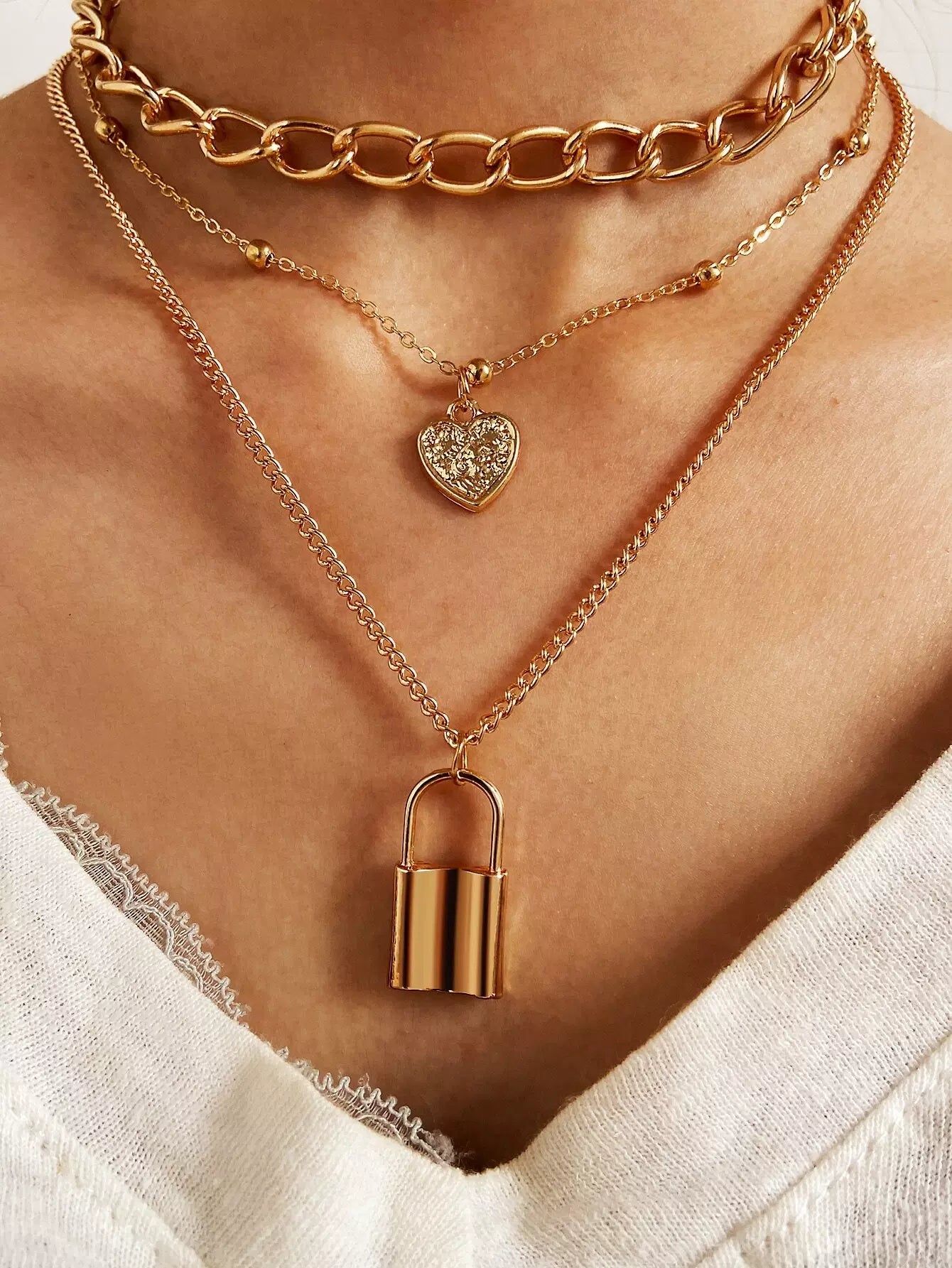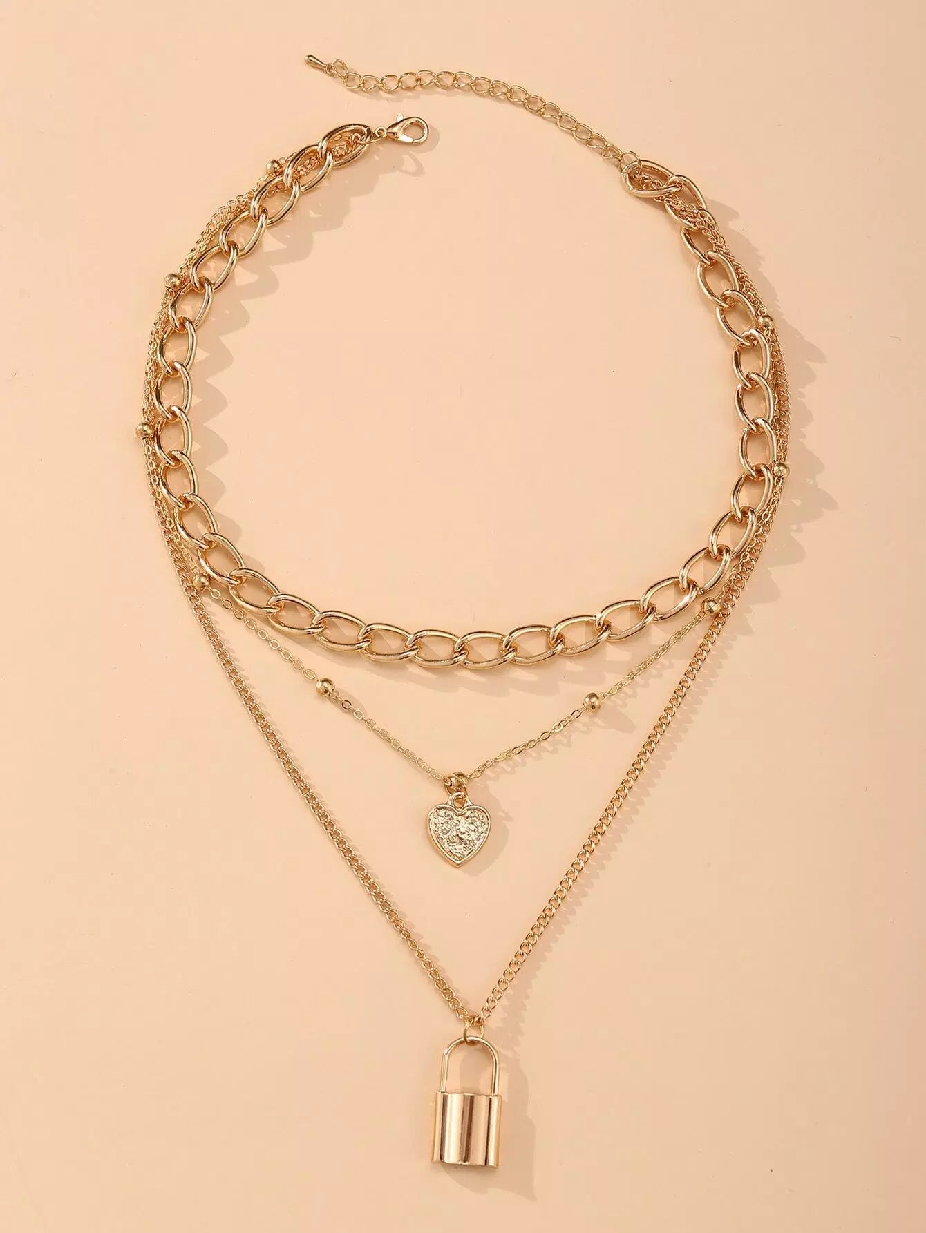 قلادة متعددة الطبقات على شكل قلب وقفل