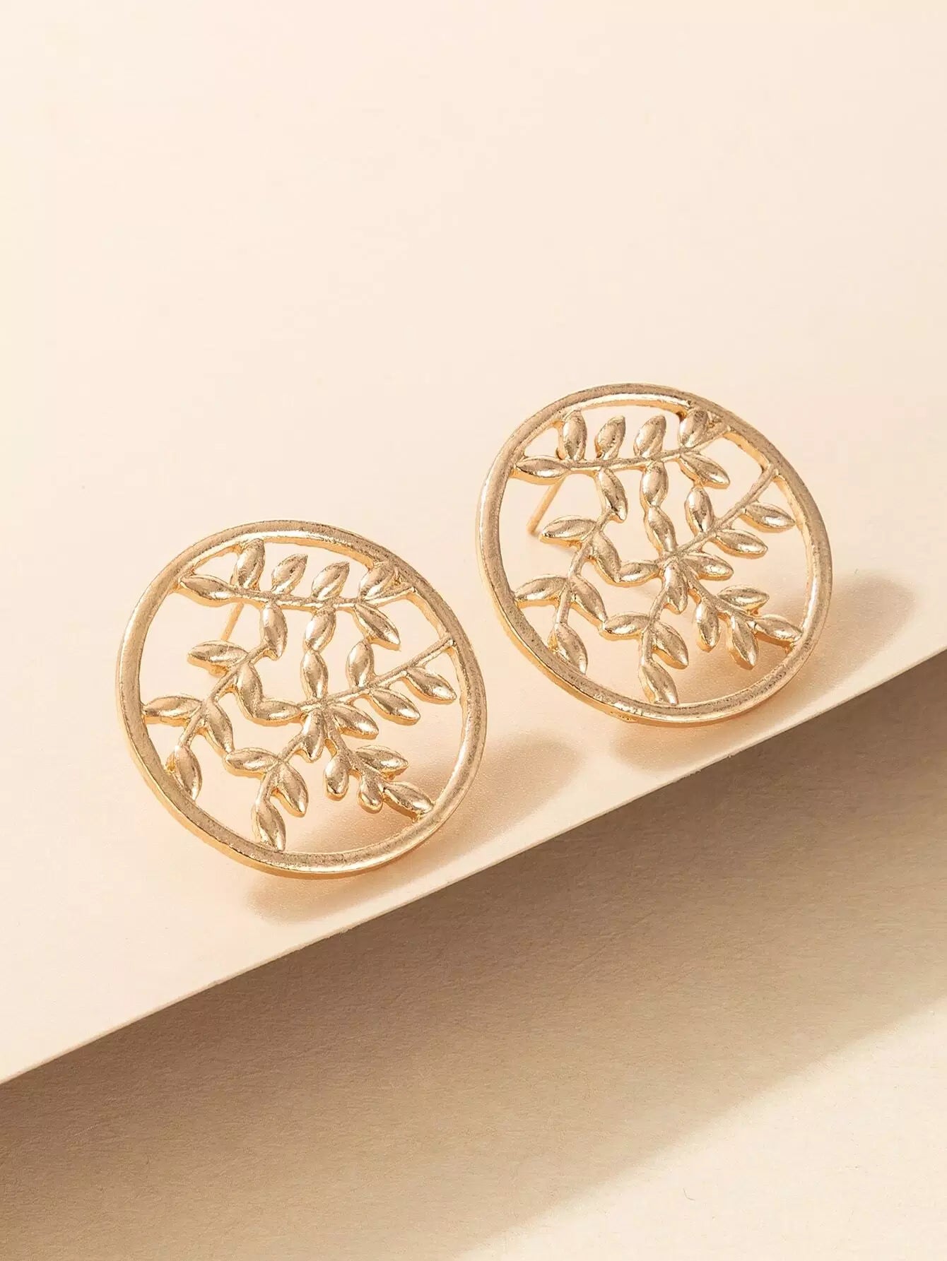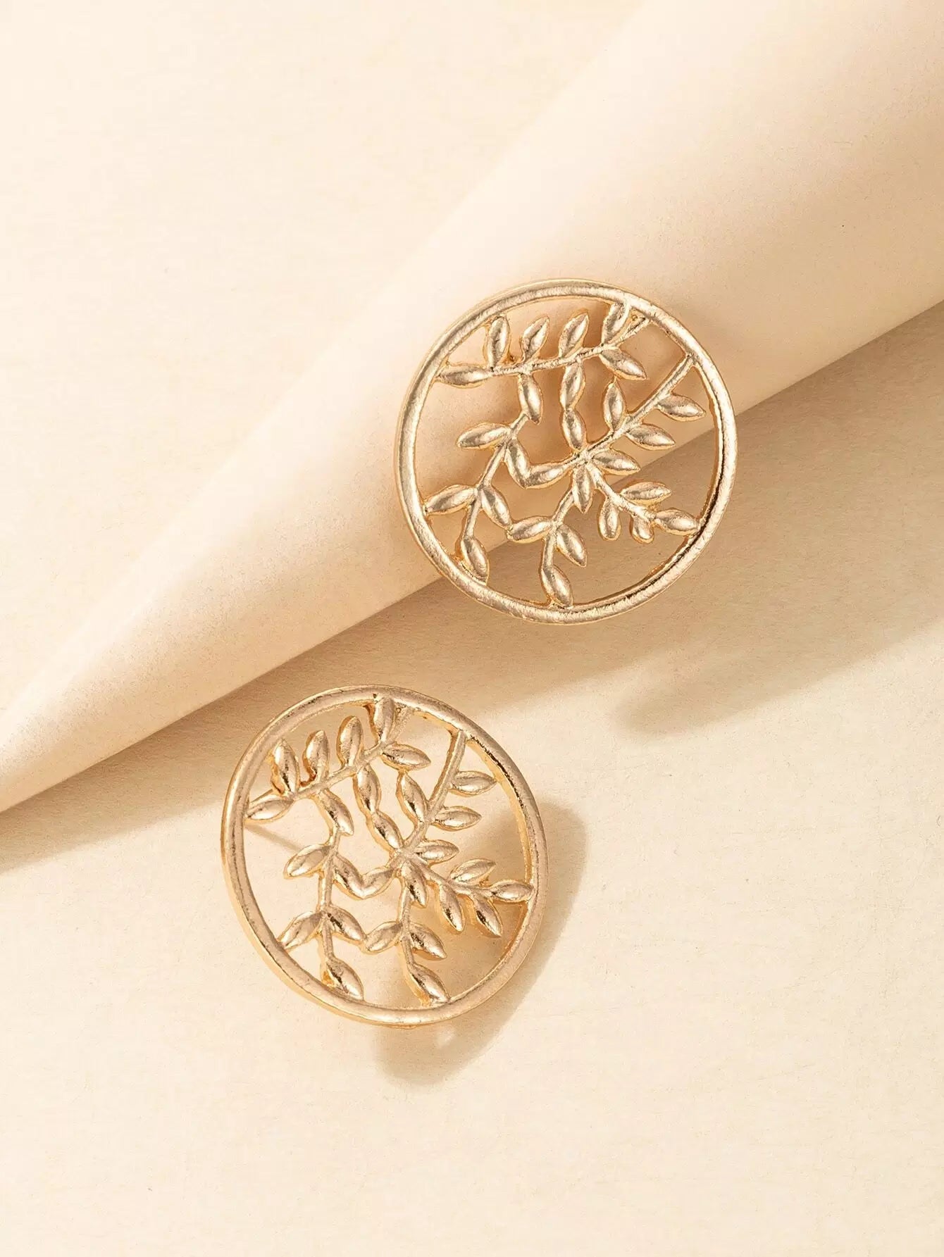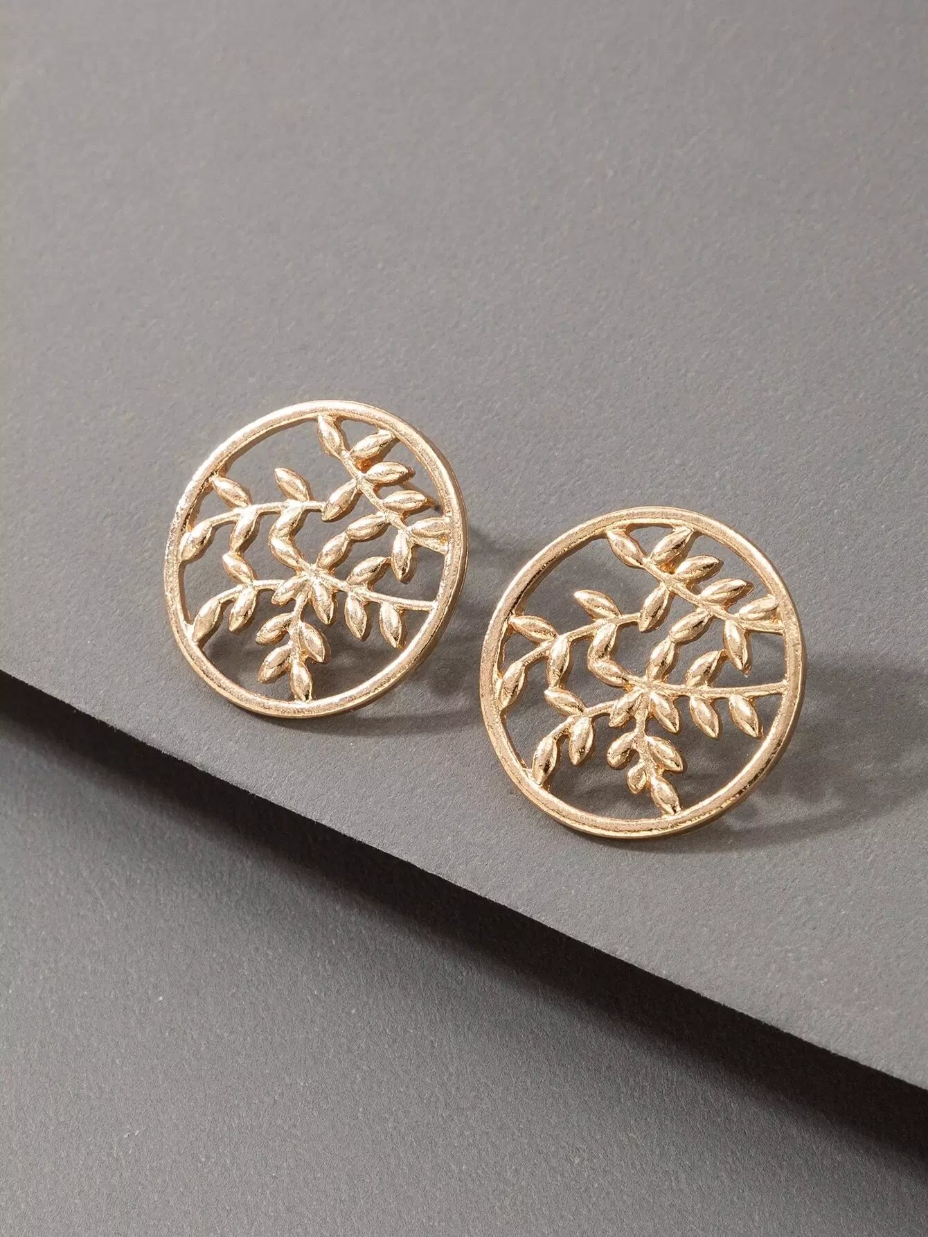 أقراط مرصعة مستديرة بتصميم أوراق الشجر