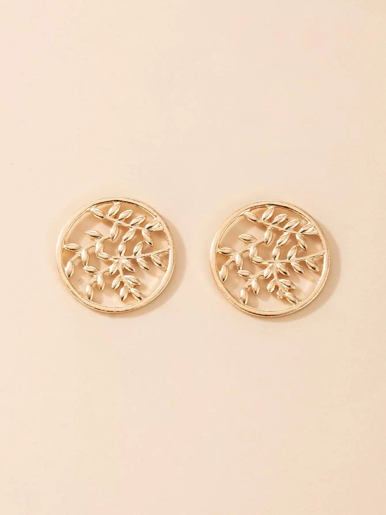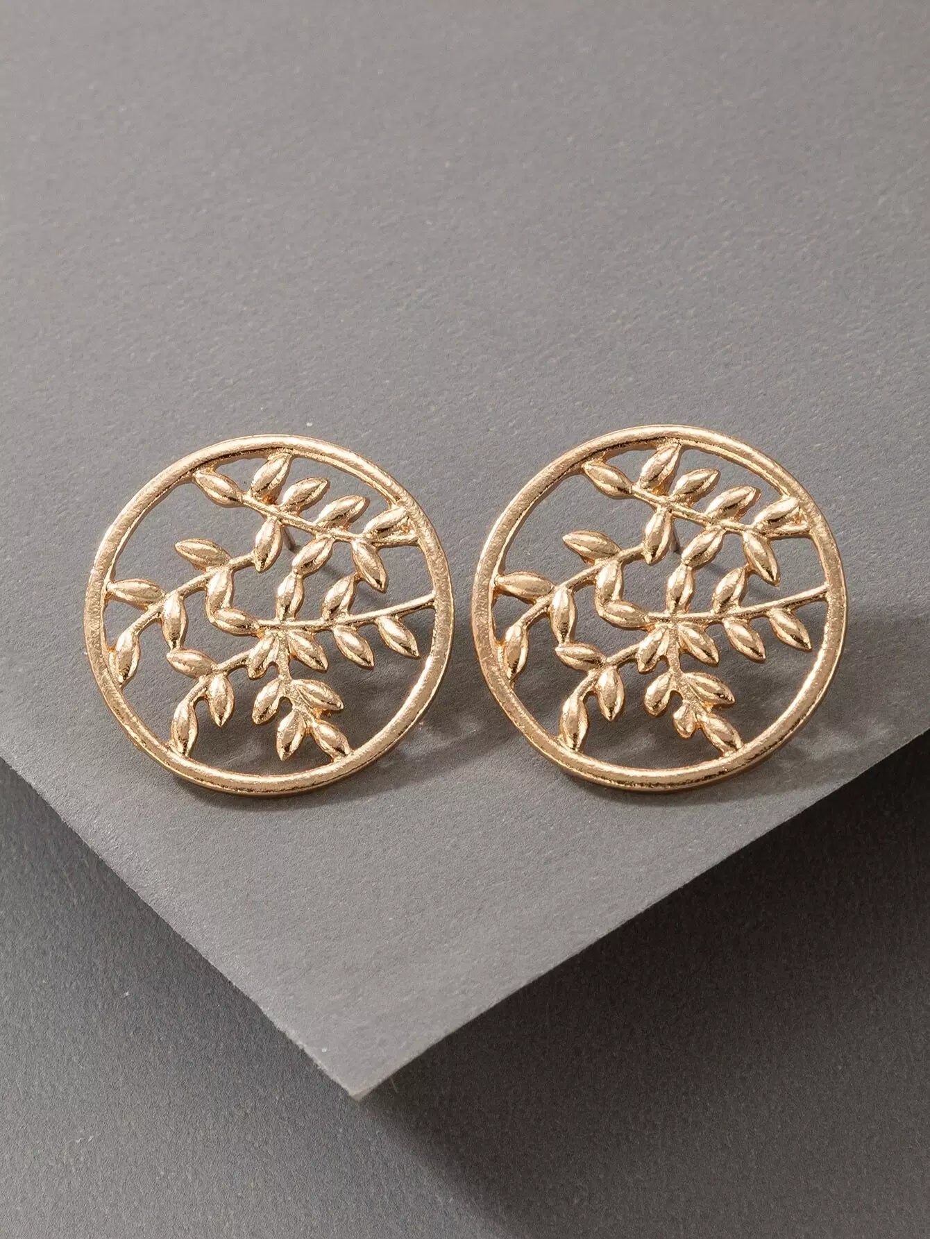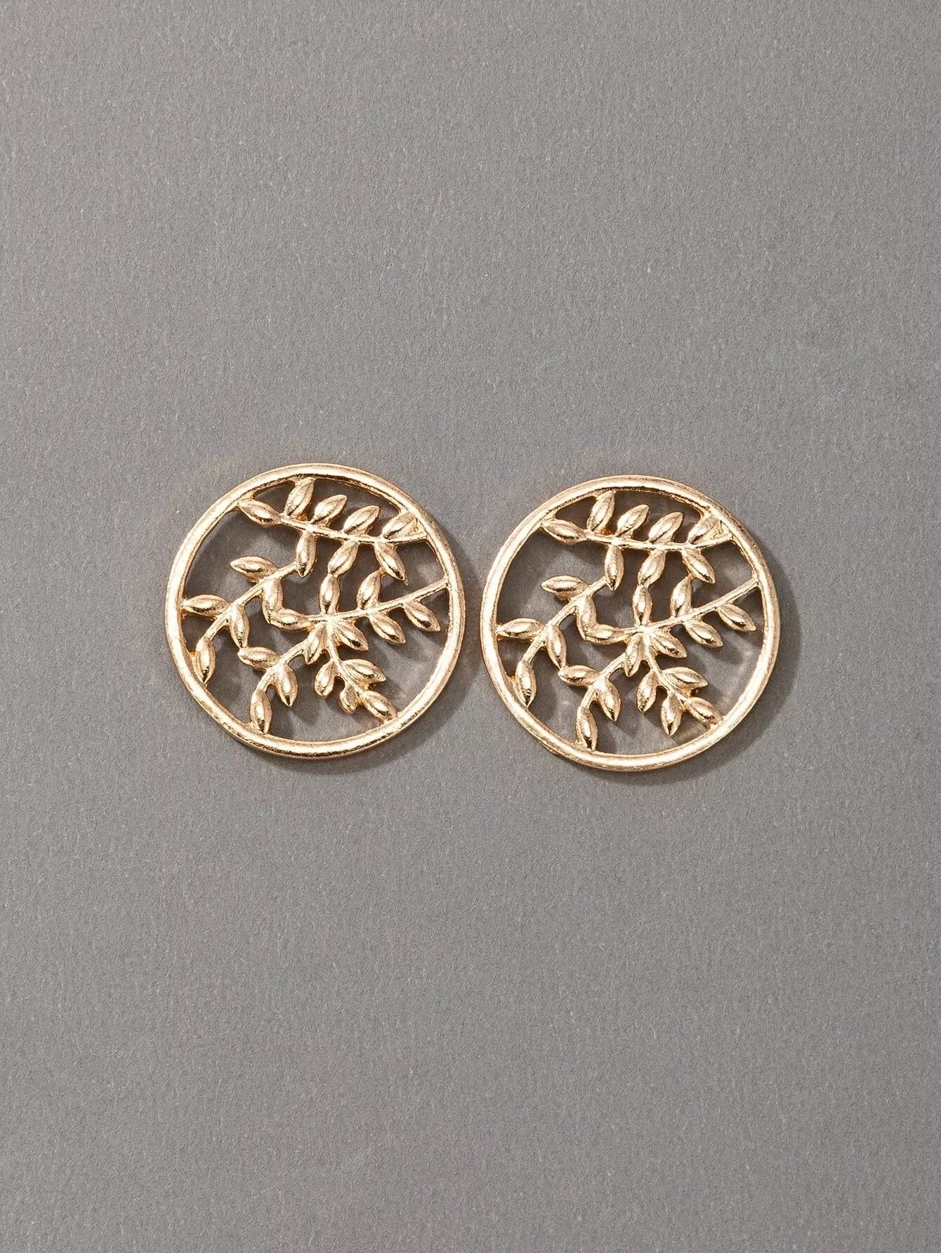 أقراط مرصعة مستديرة بتصميم أوراق الشجر