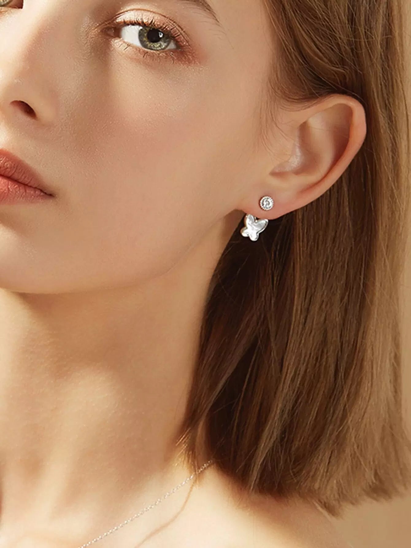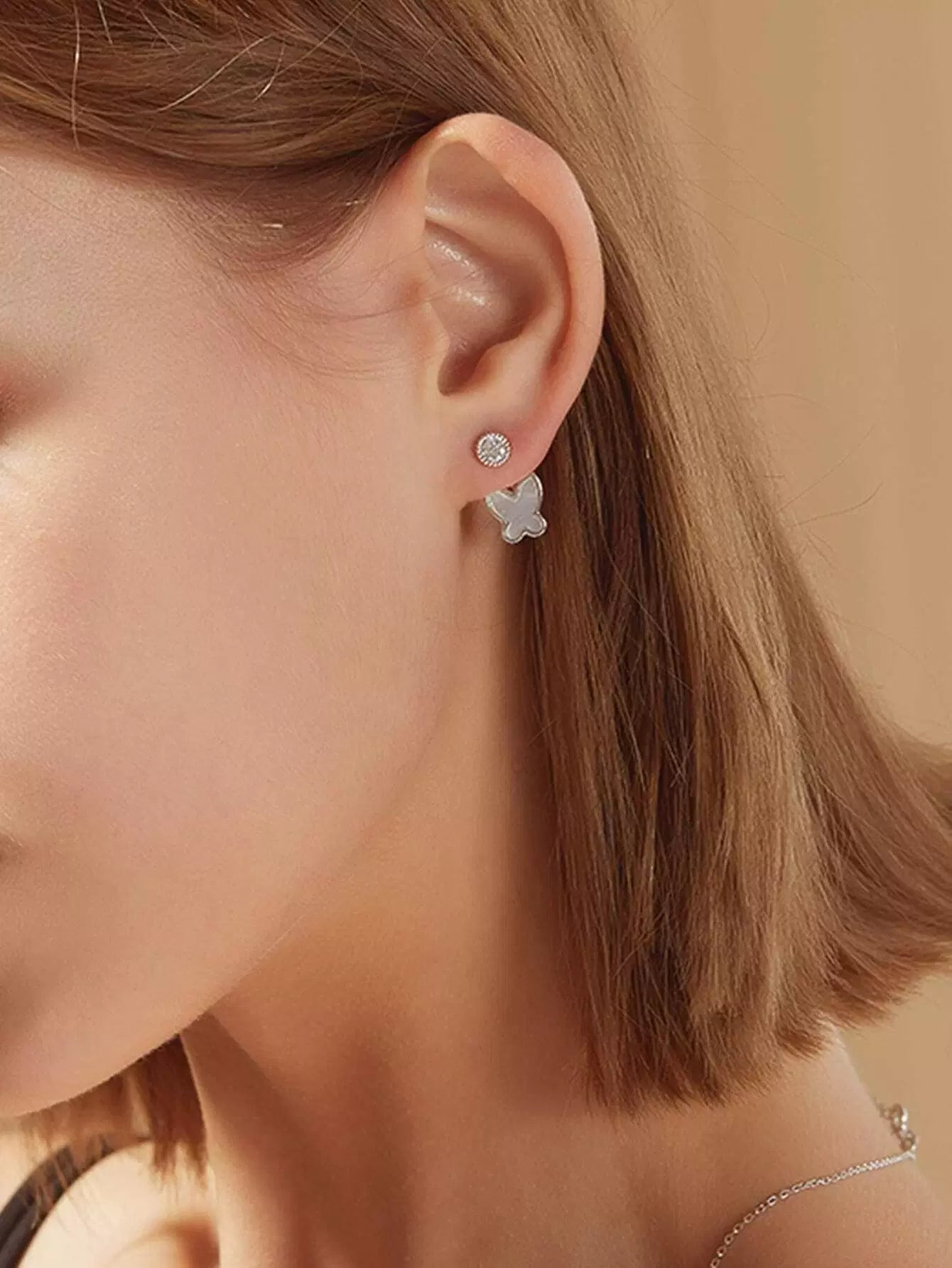 سترة قرط فراشة مزينة بحجر الراين 1 زوج واحد