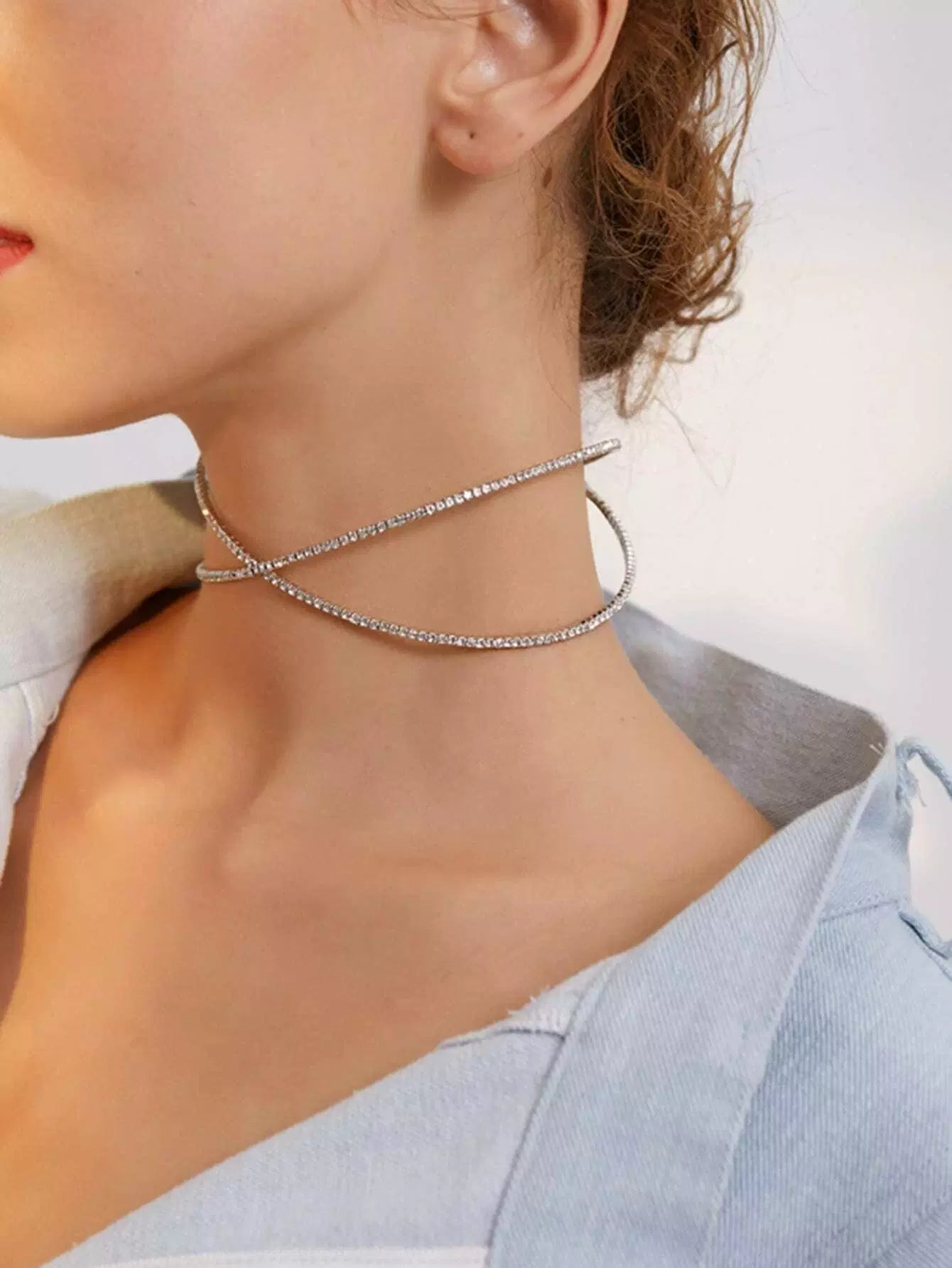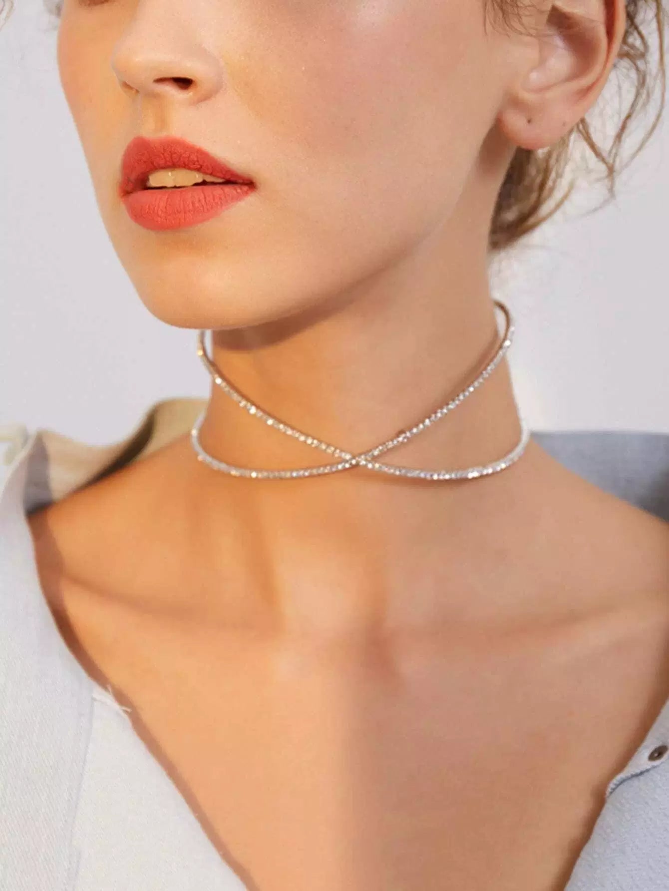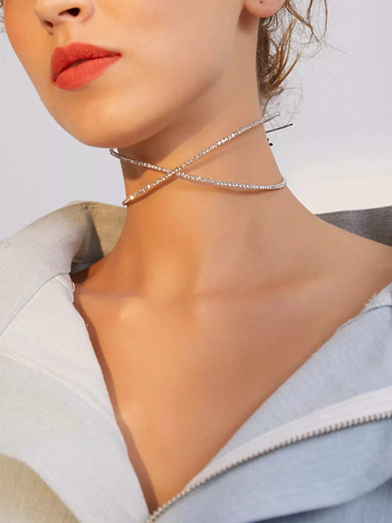 النساء - قلادة متقاطعة مزينة بحجر الراين قطعة واحدة