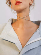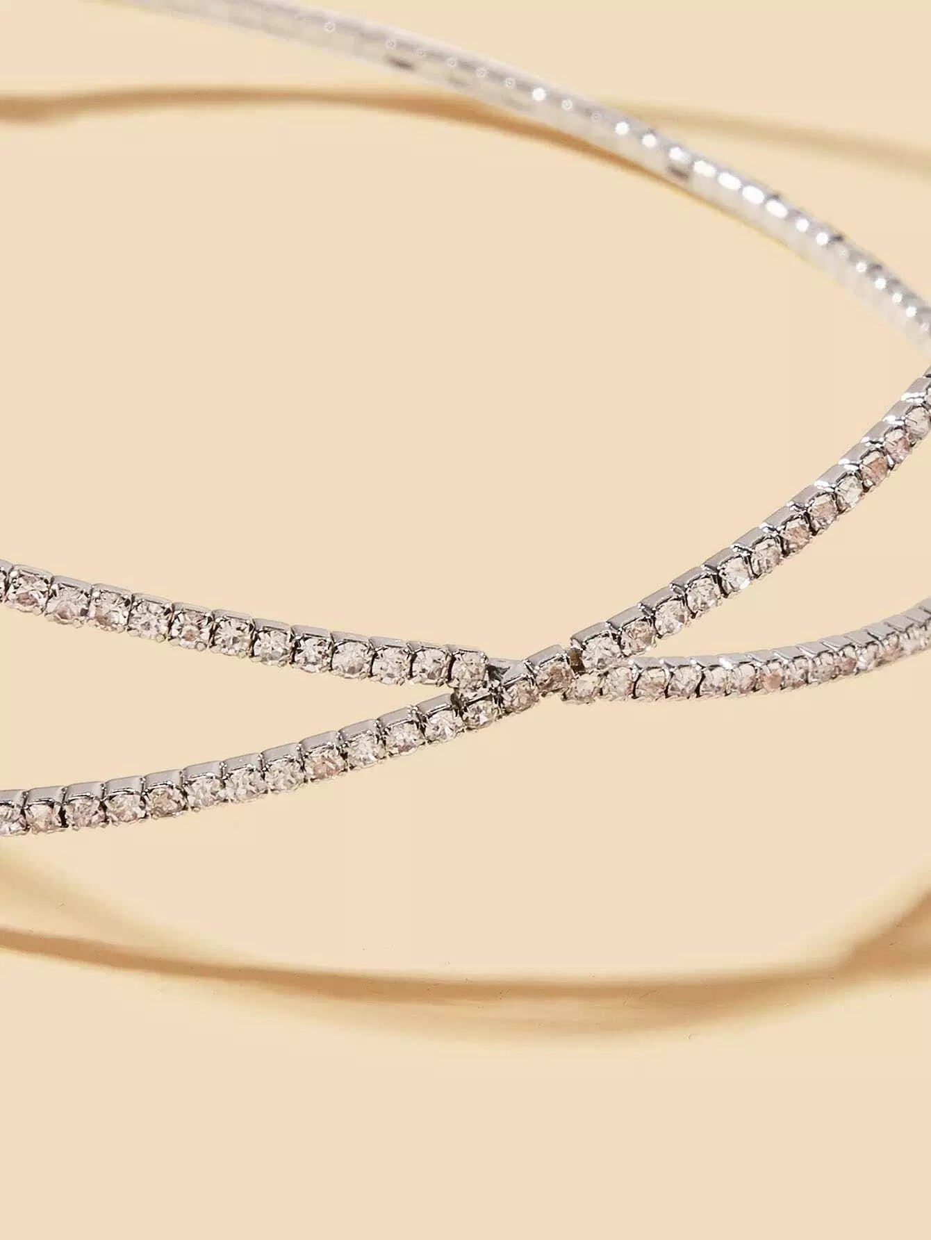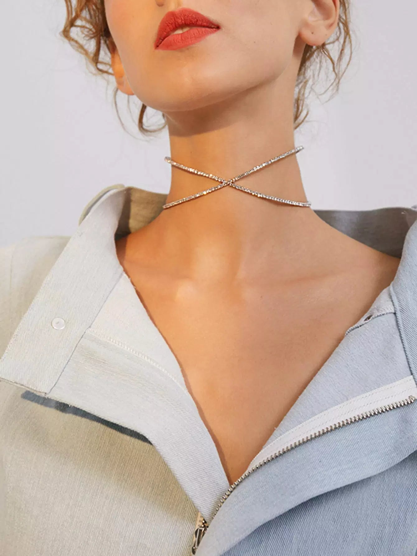 قلادة متقاطعة مزينة بأحجار الراين، قطعة واحدة