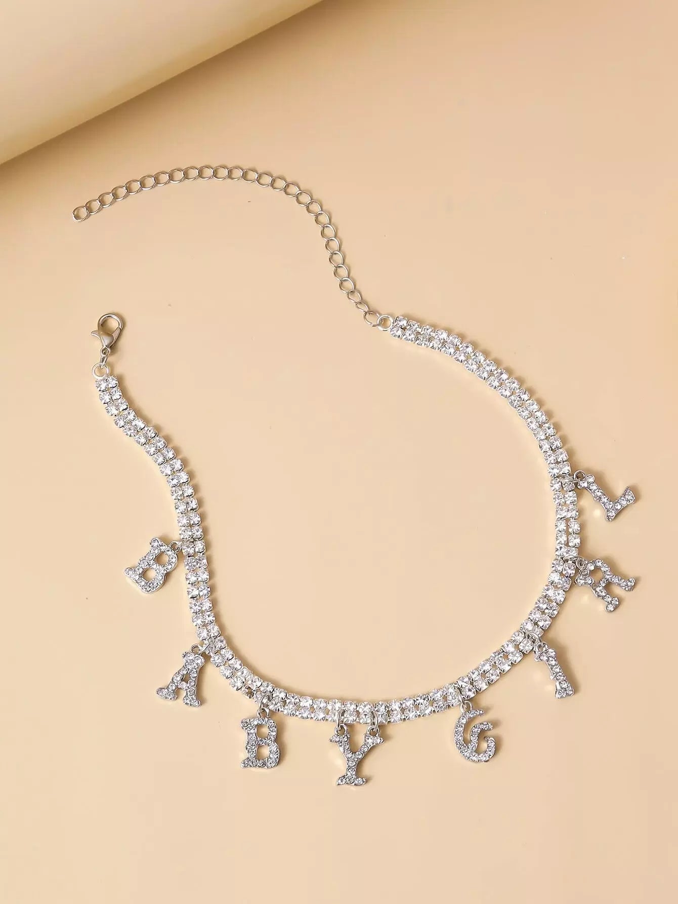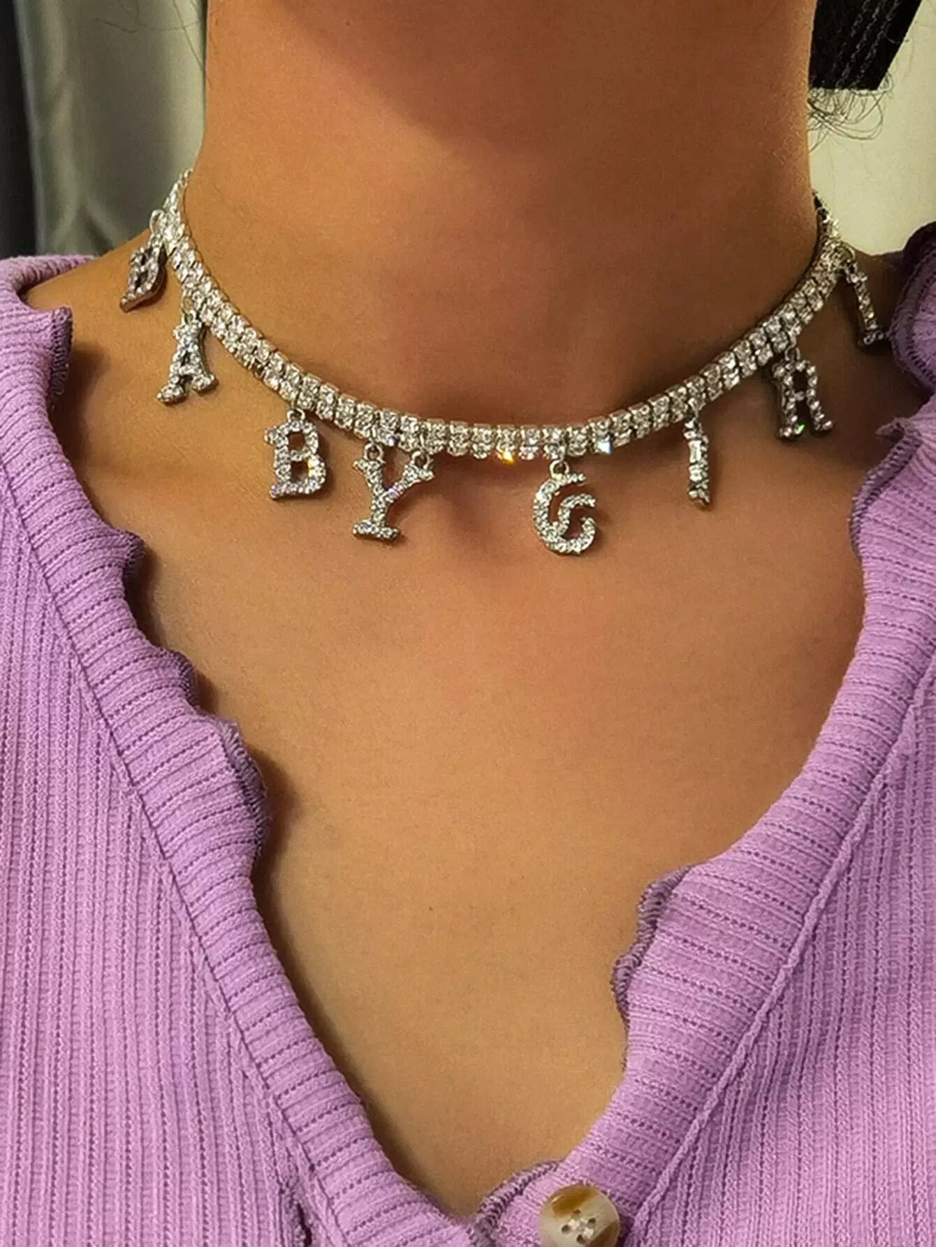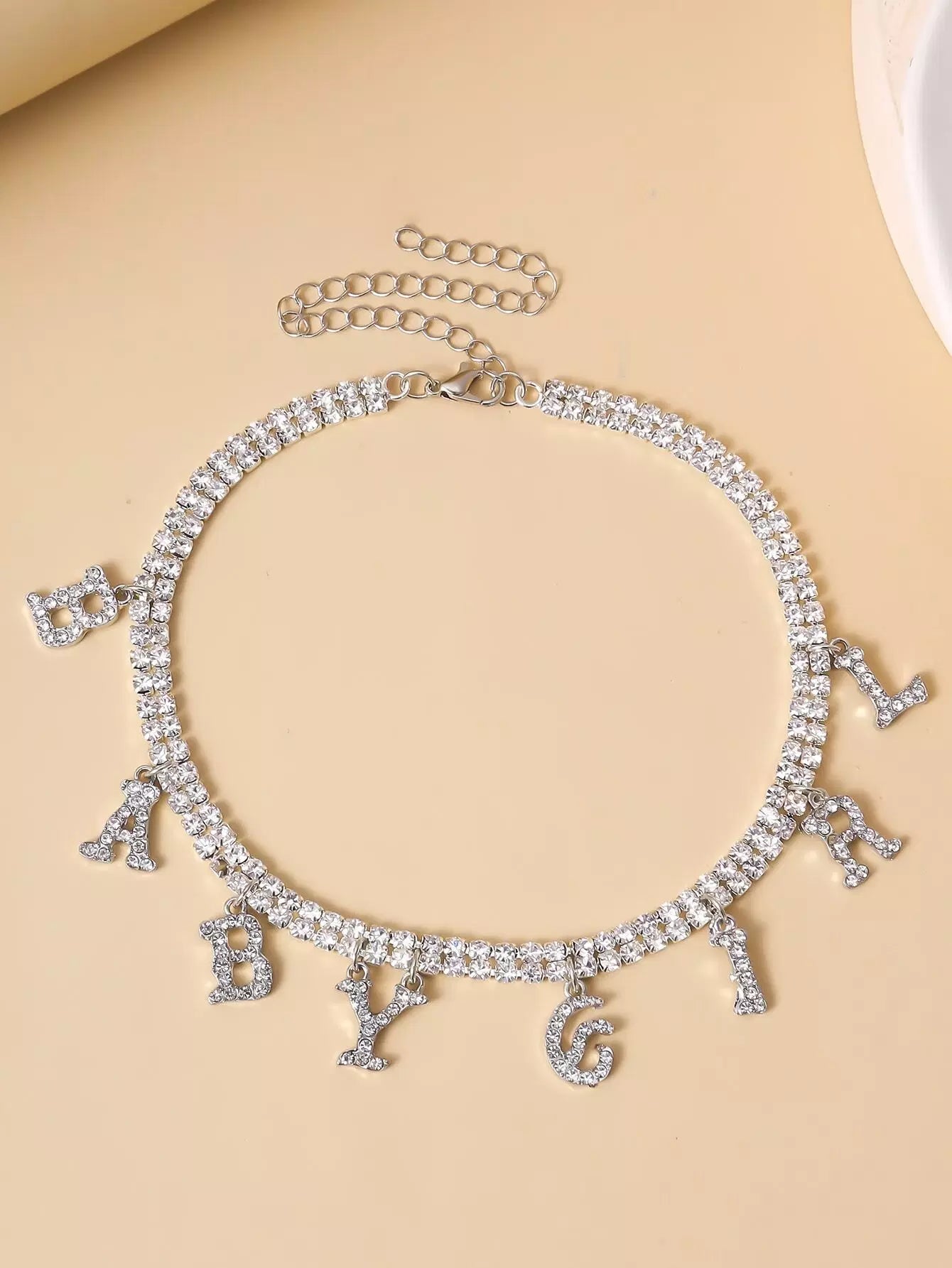 قلادة على شكل حرف مزخرفة بأحجار الراين