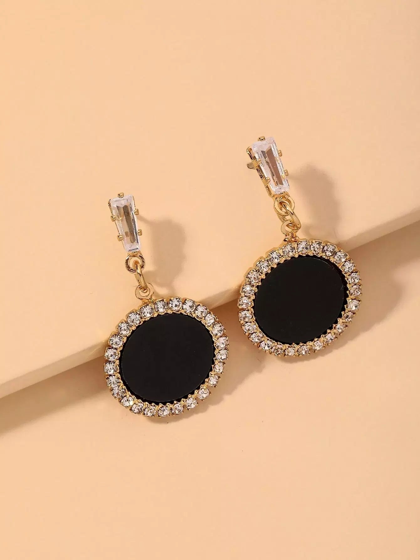 النساء-أقراط متدلية مستديرة من حجر الراين