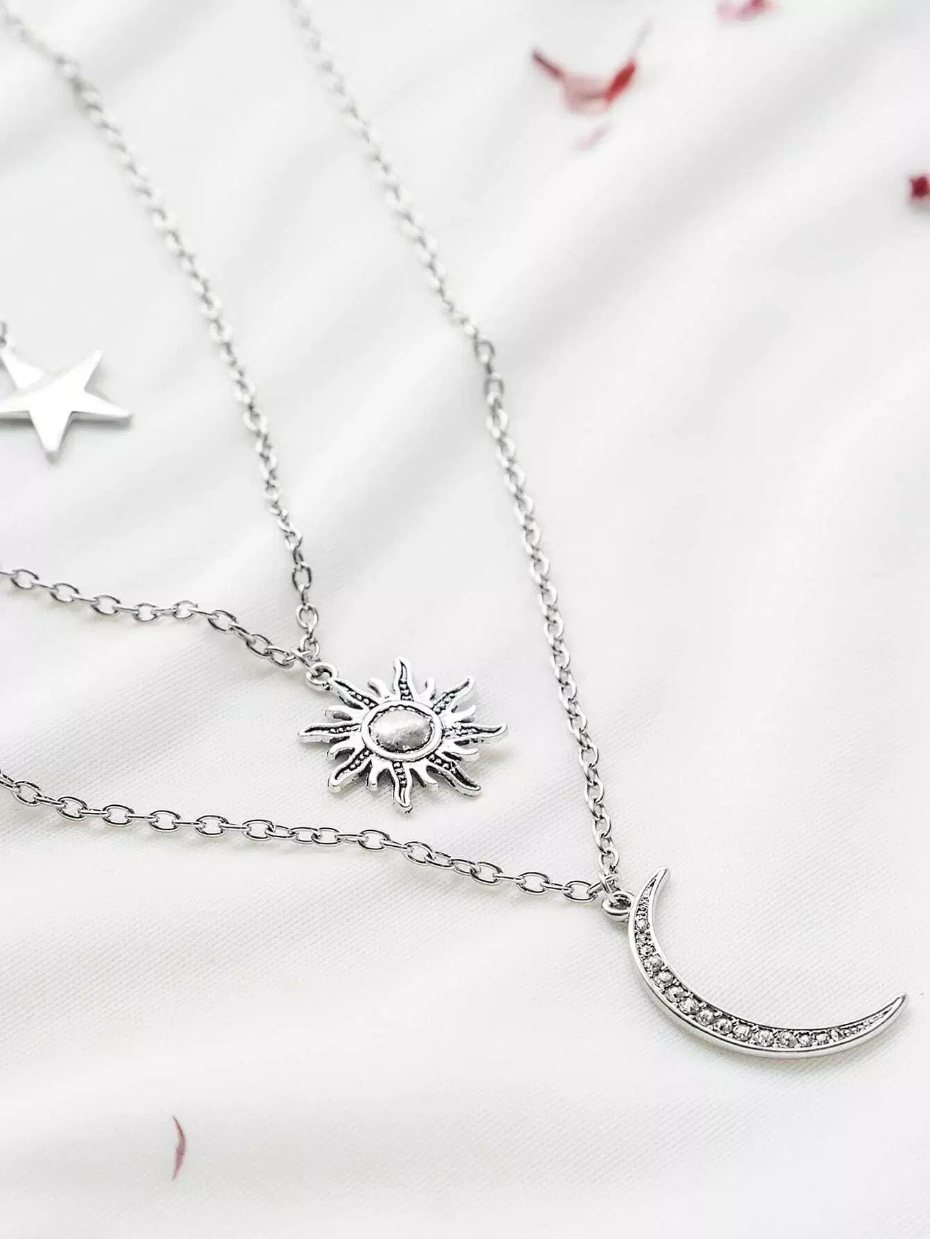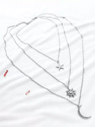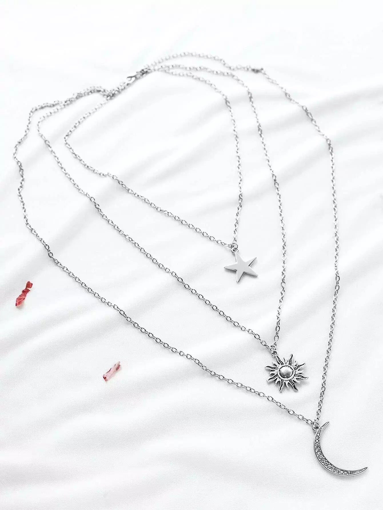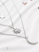 للنساء - قلادة فضية على شكل نجمة الشمس والقمر ذات طبقات