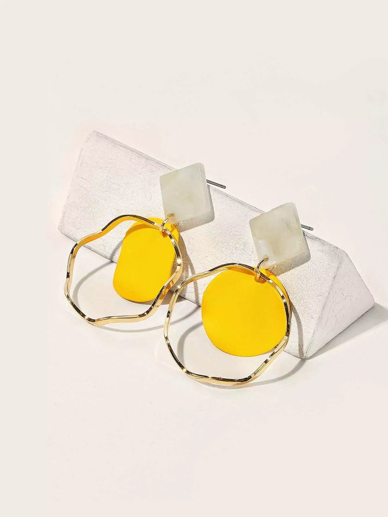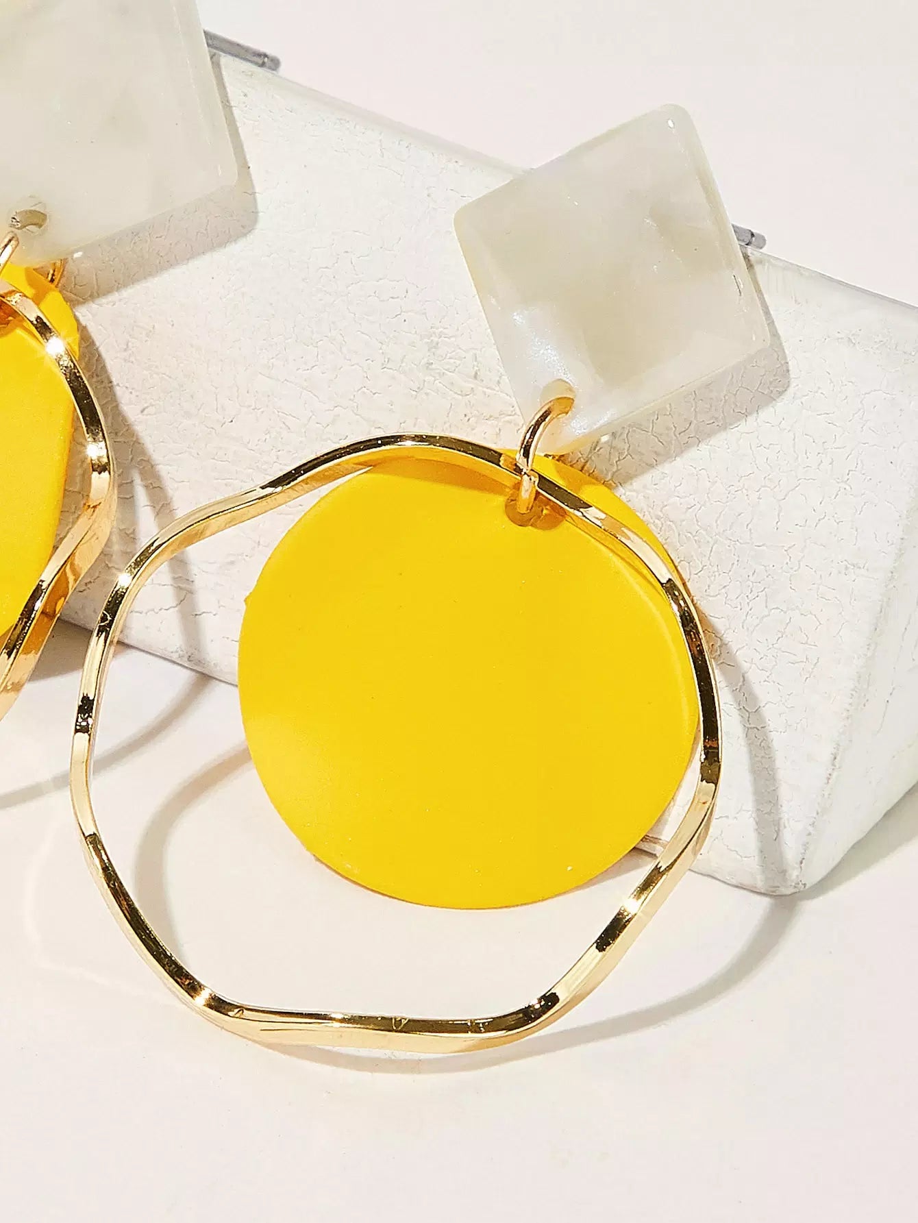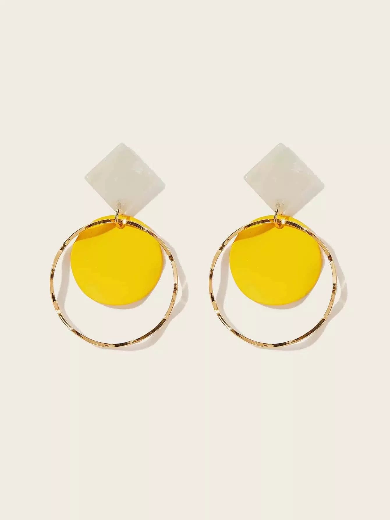 أقراط متدلية على شكل مربع وقرص، زوج واحد