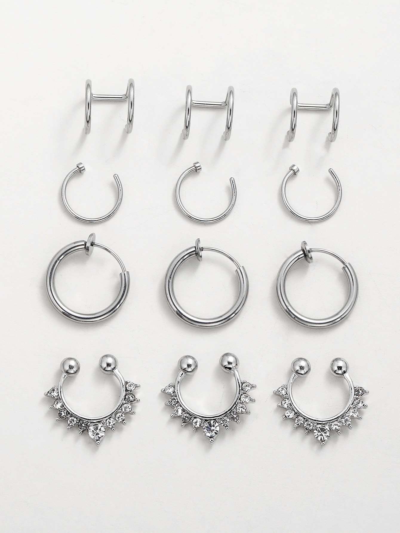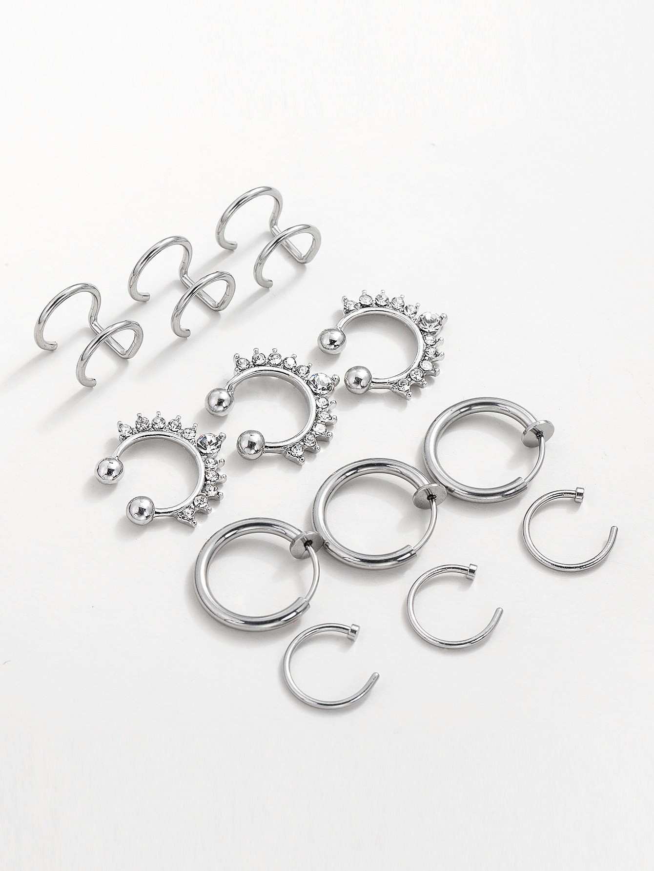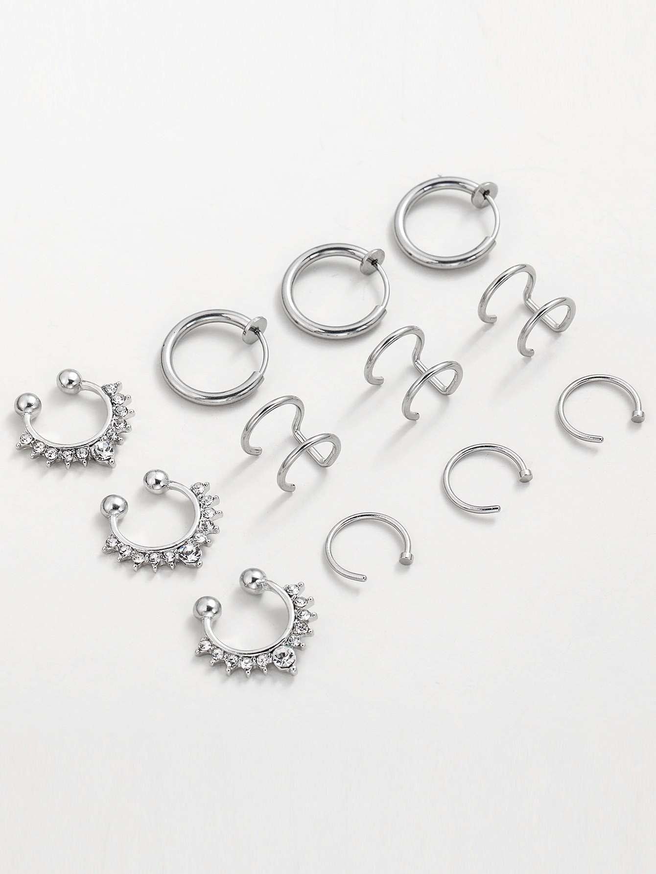 12 قطعة خاتم ديكور أنف رجالي من حجر الراين للرجال