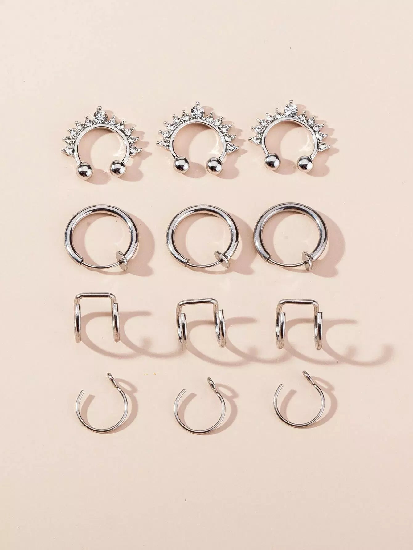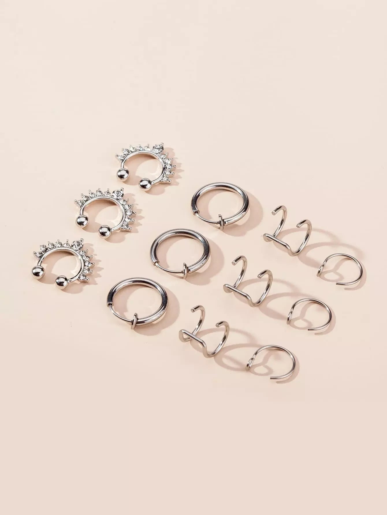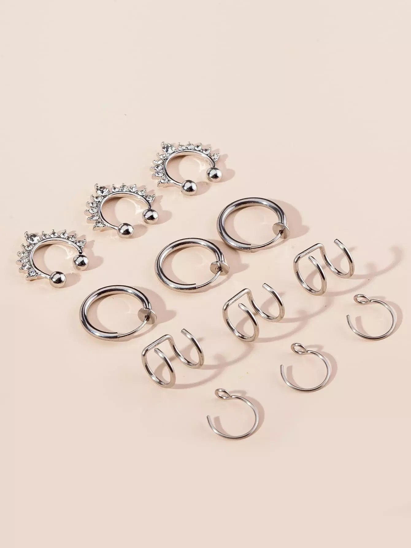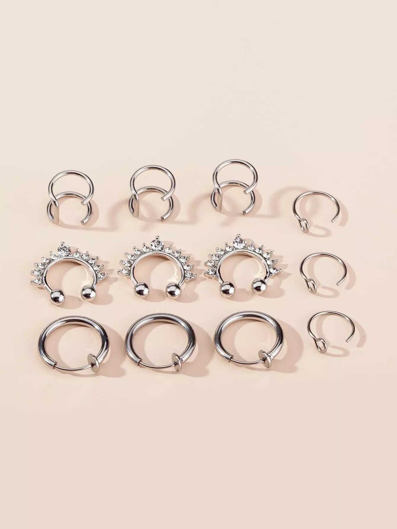 12 قطعة من حلقات الأنف المزخرفة بأحجار الراين