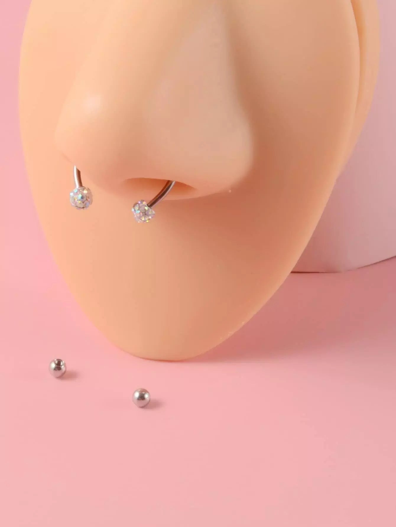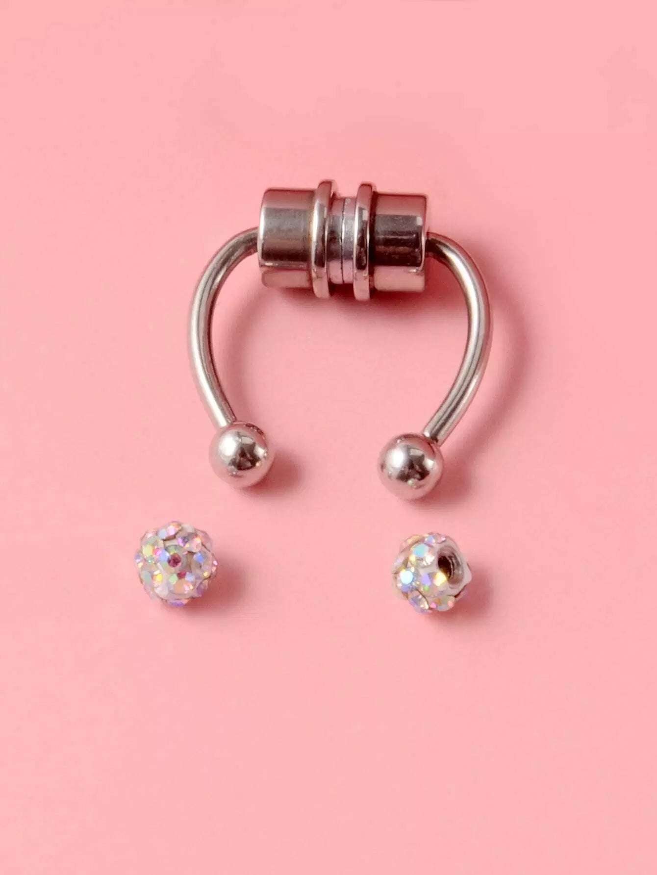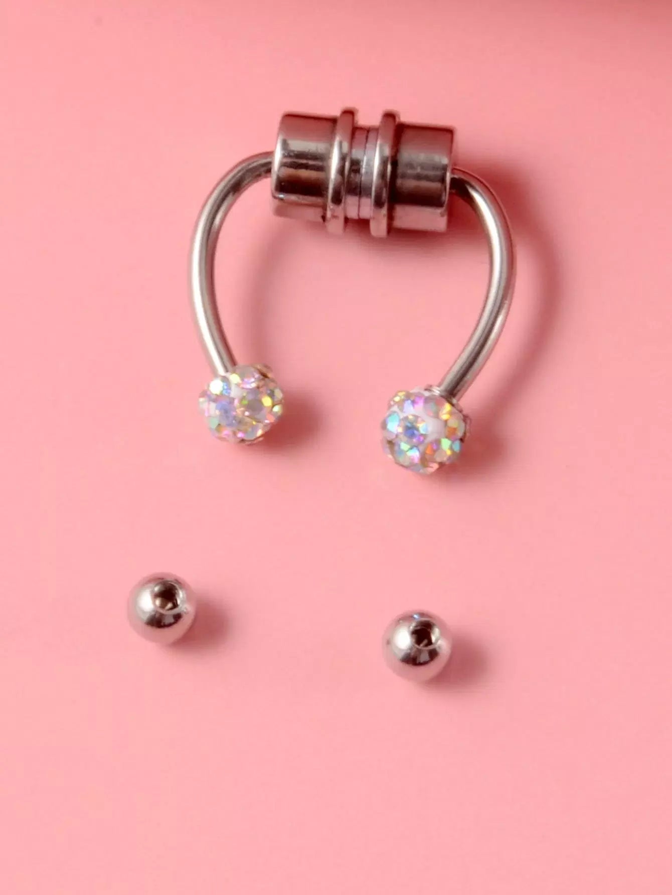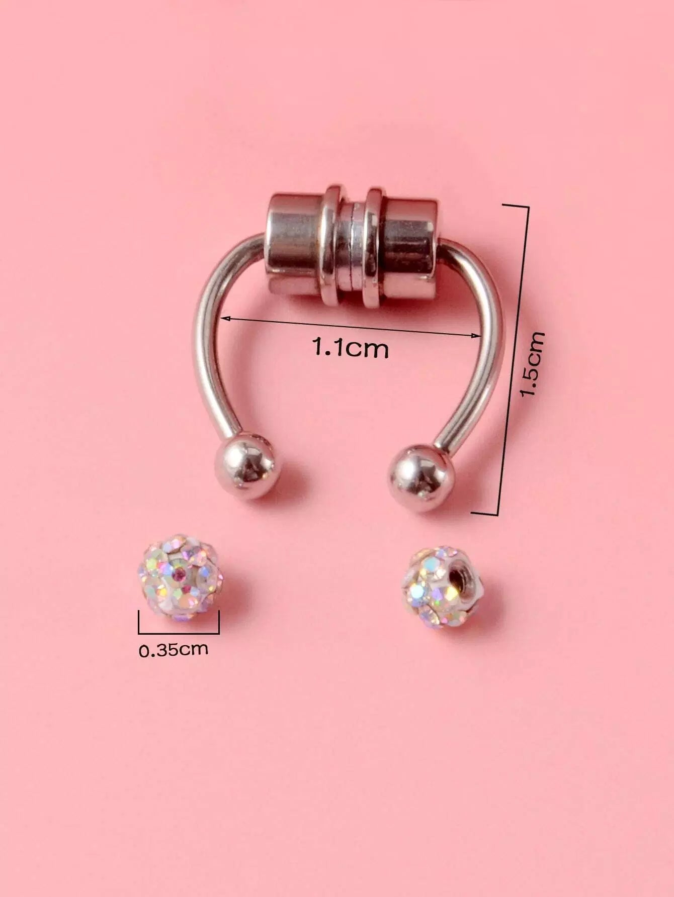 1 مجموعة من حلقات الأنف المغناطيسية المزخرفة بكرات أحجار الراين