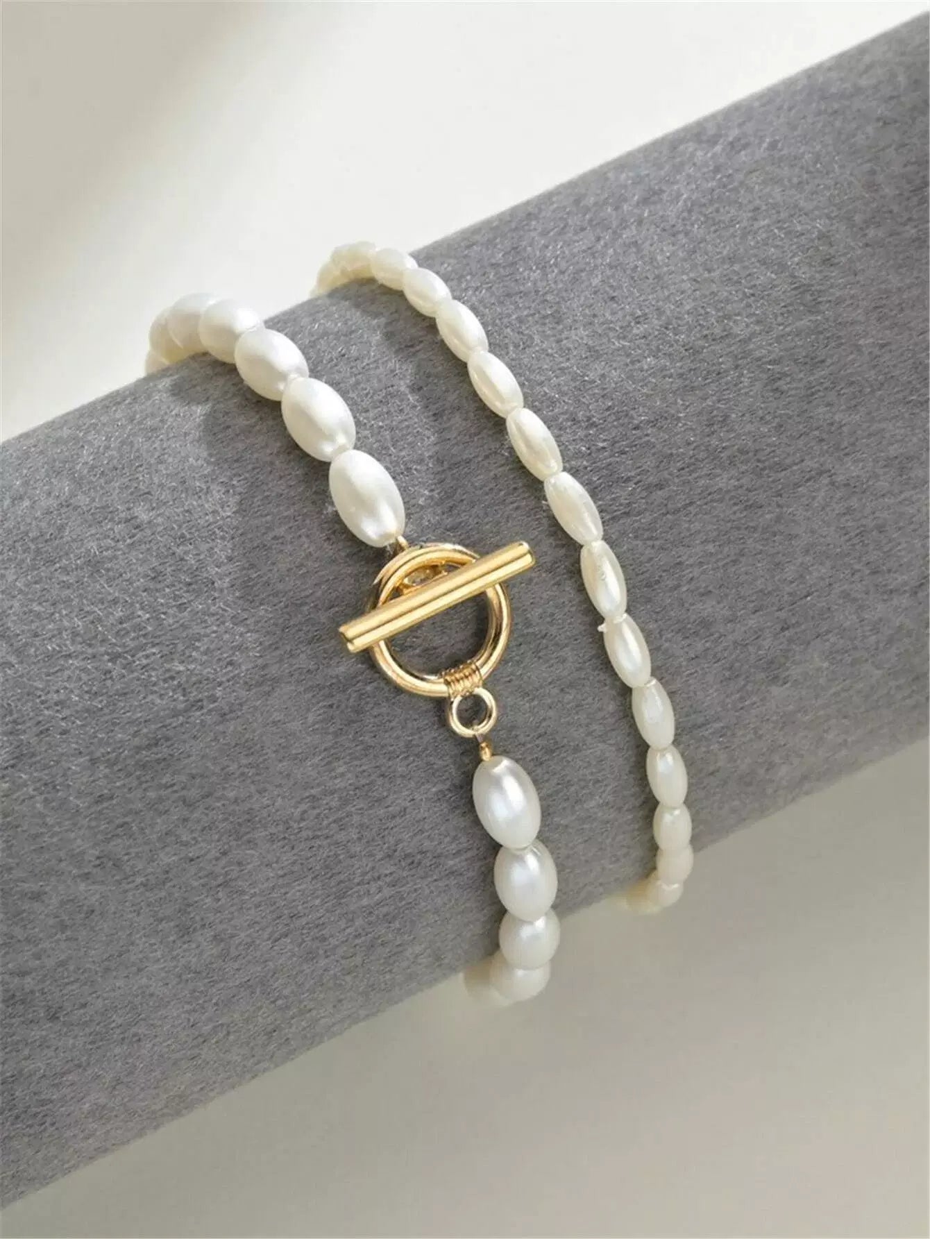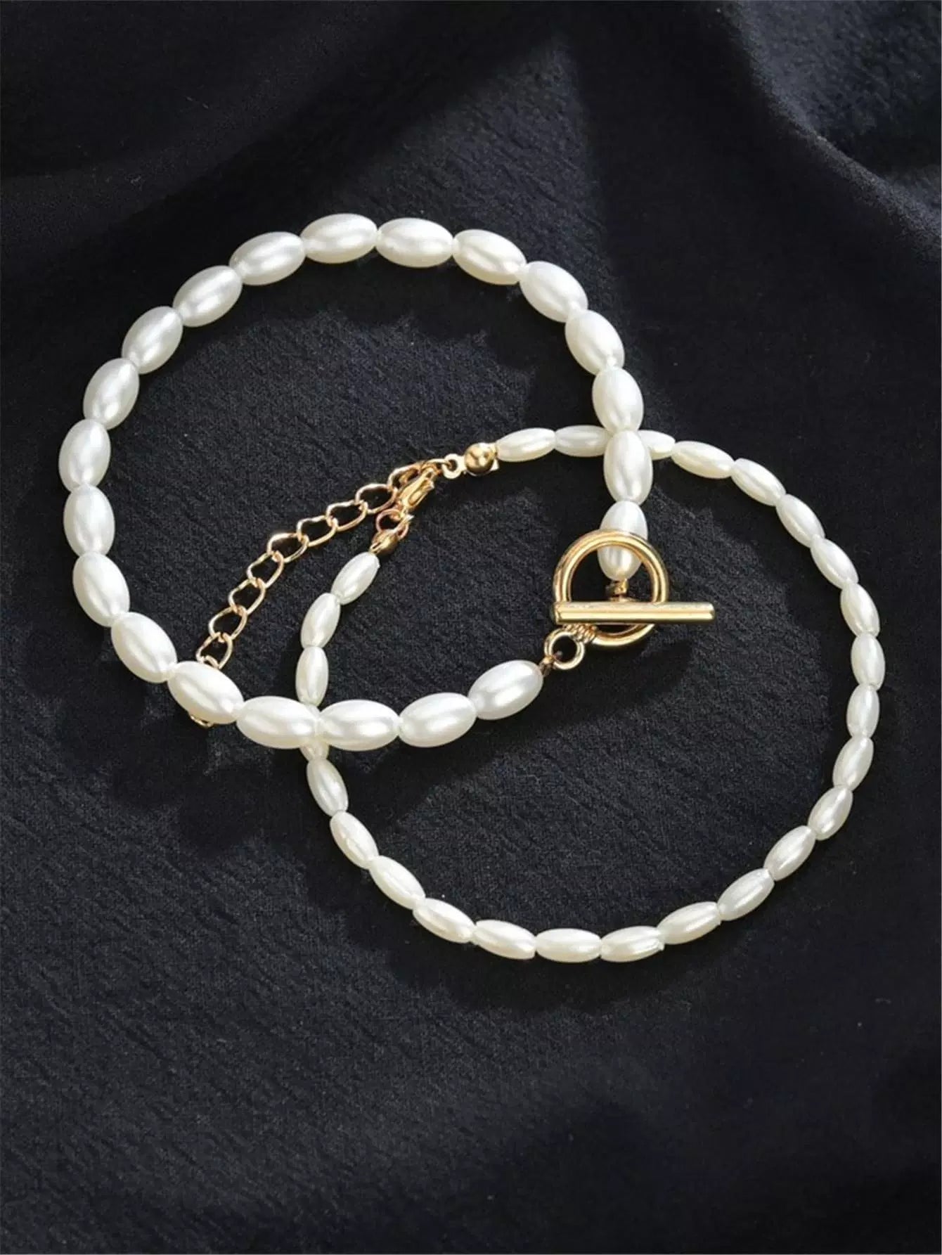 2 قطعة خلخال مطرز بالخرز اللؤلؤ الصناعي