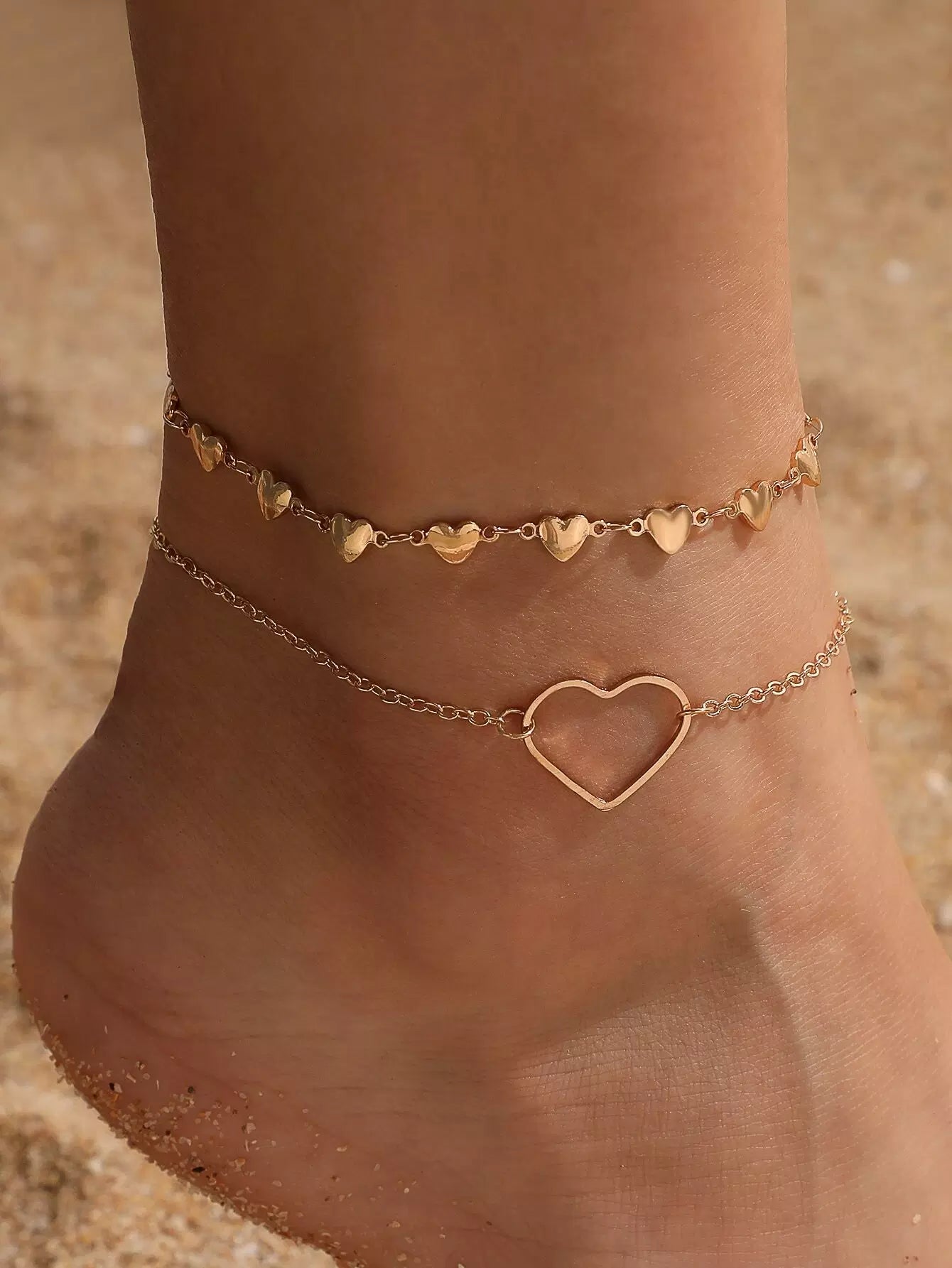للنساء - قطعتان من خلخال مزخرف على شكل قلب